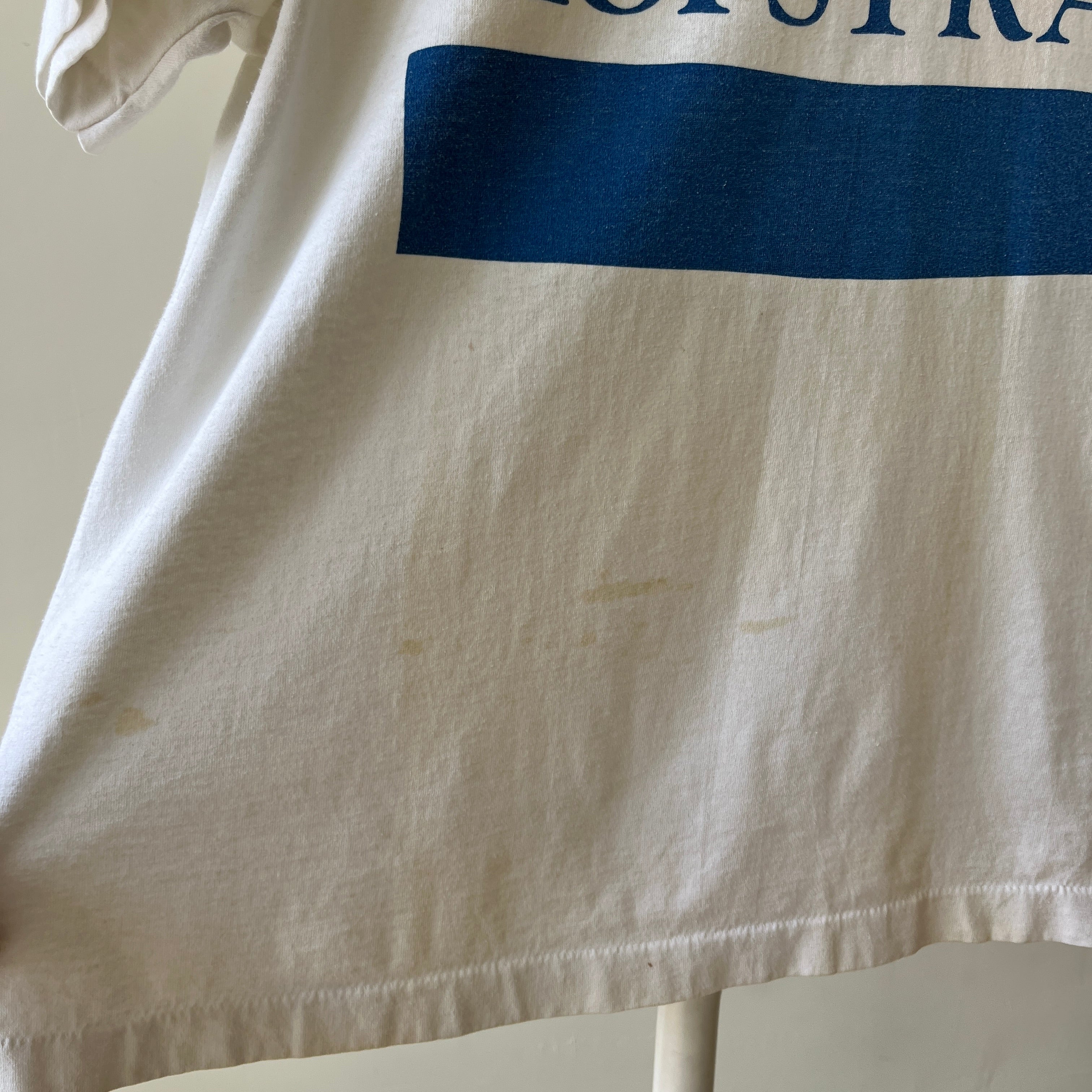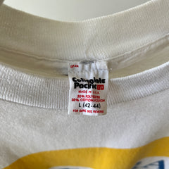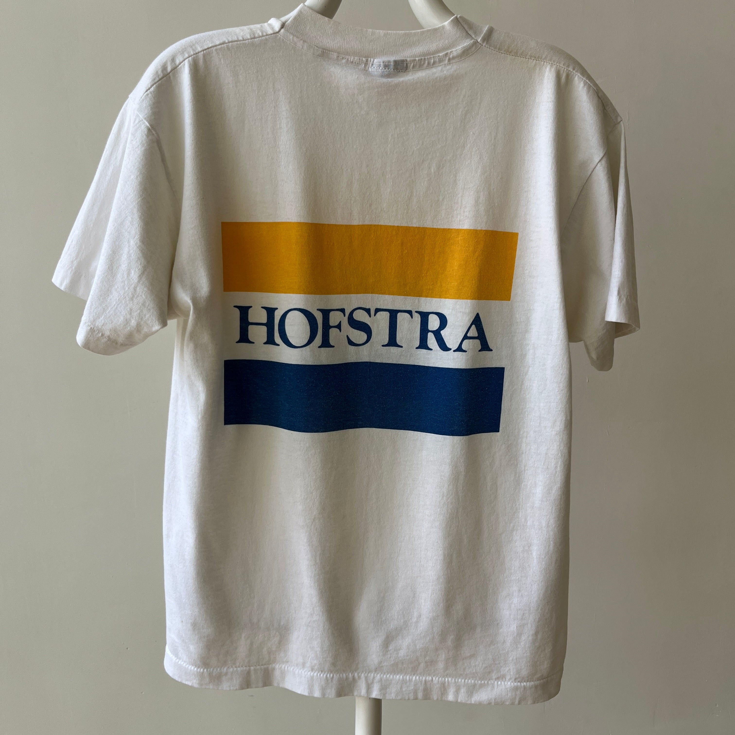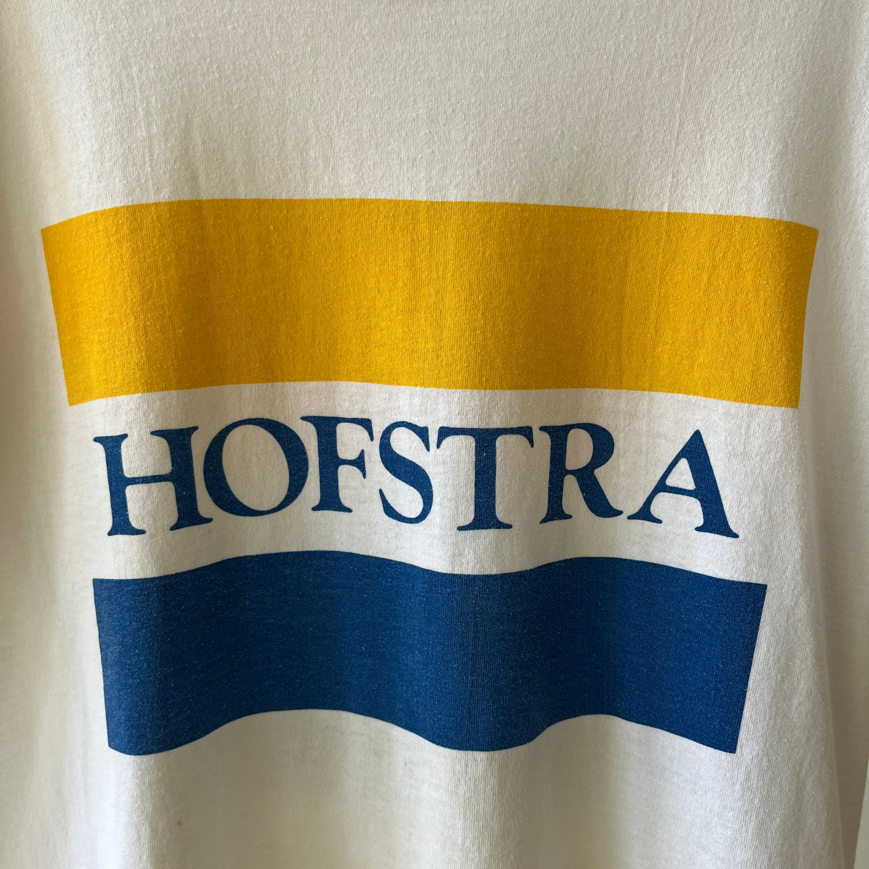Notes: stains, soft cotton, loose fit, boxy, single stitch, made in usa, university in hampstead, new york with a 70.6% acceptance rate - on a collegiate pacific tag!