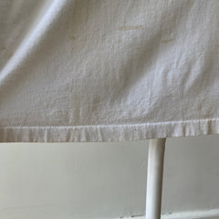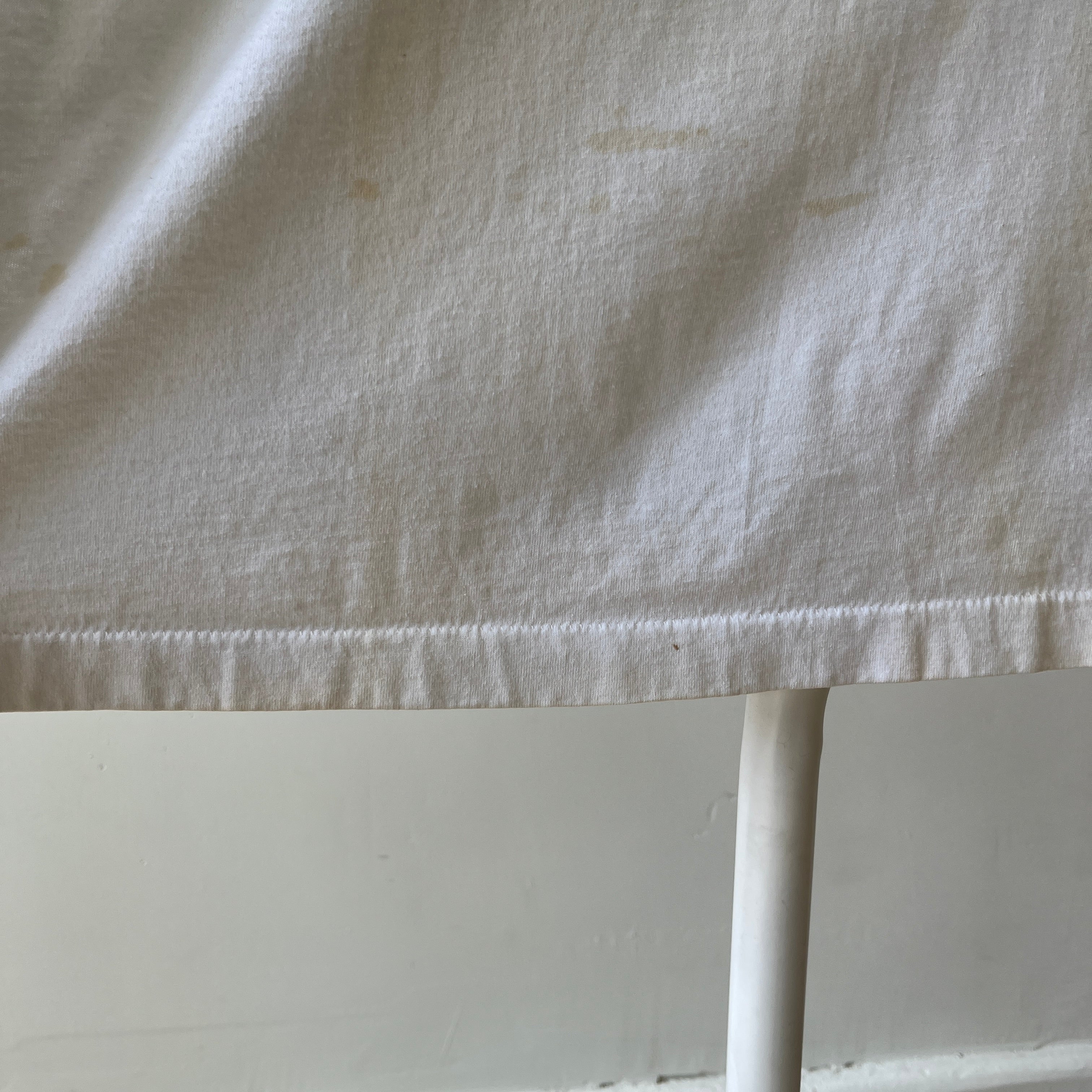 Stains are cool. But if I don’t have you convinced, that yellow jalopy hanging out on your new-old (now off) white tee could have been a mustard mishap from catching a fly ball at the World Series in ’83 with a hotdog in hand. Or from changing a flat tire on a college road trip to meet your future ex in-laws? Stains have stories even when they’re in the pits! Sweating in your favorite Hanes crewneck on your first middle school date can have a life long impact on a t-shirt.