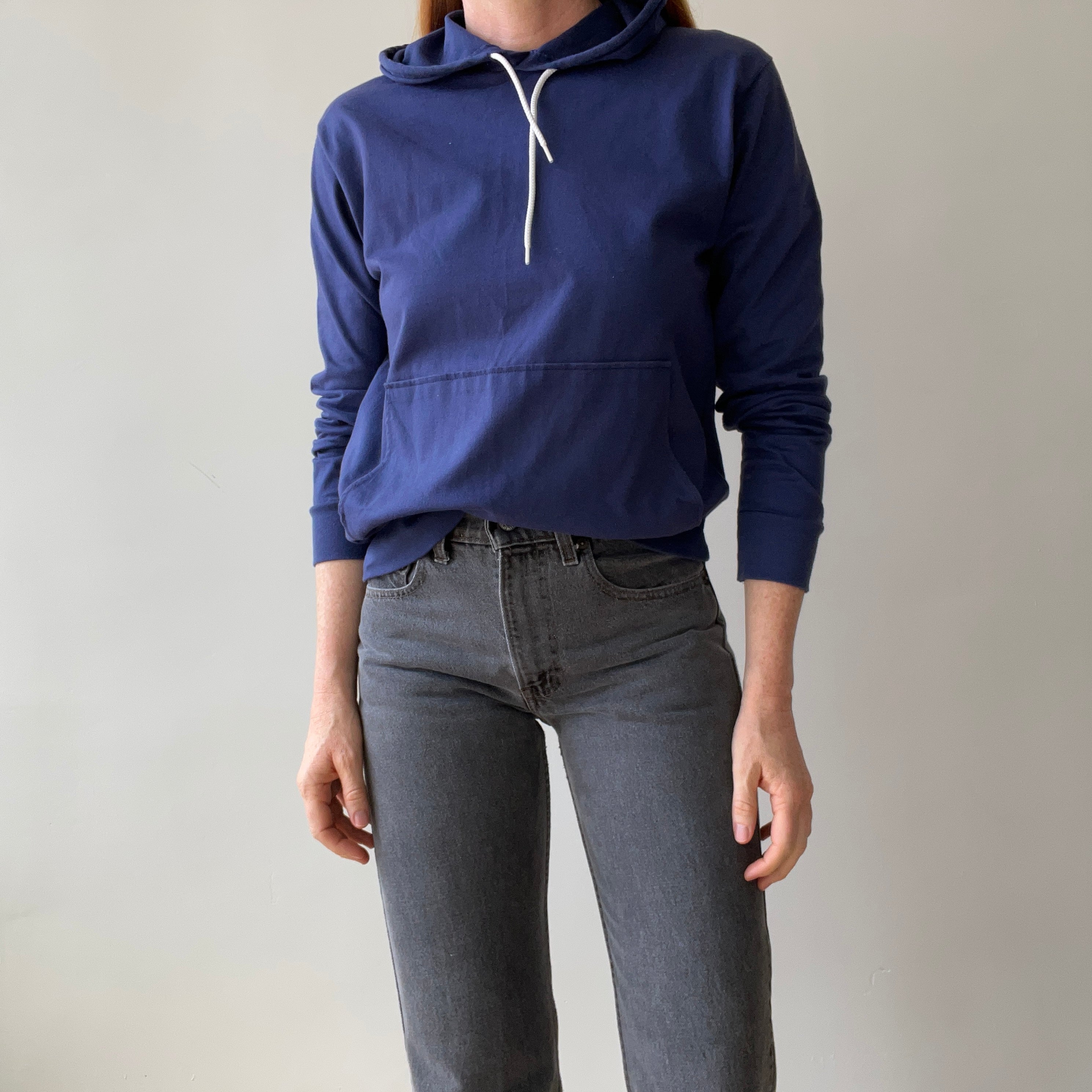 1970s/80s Navy Blue Hoodie - Lighter Weight but Structured