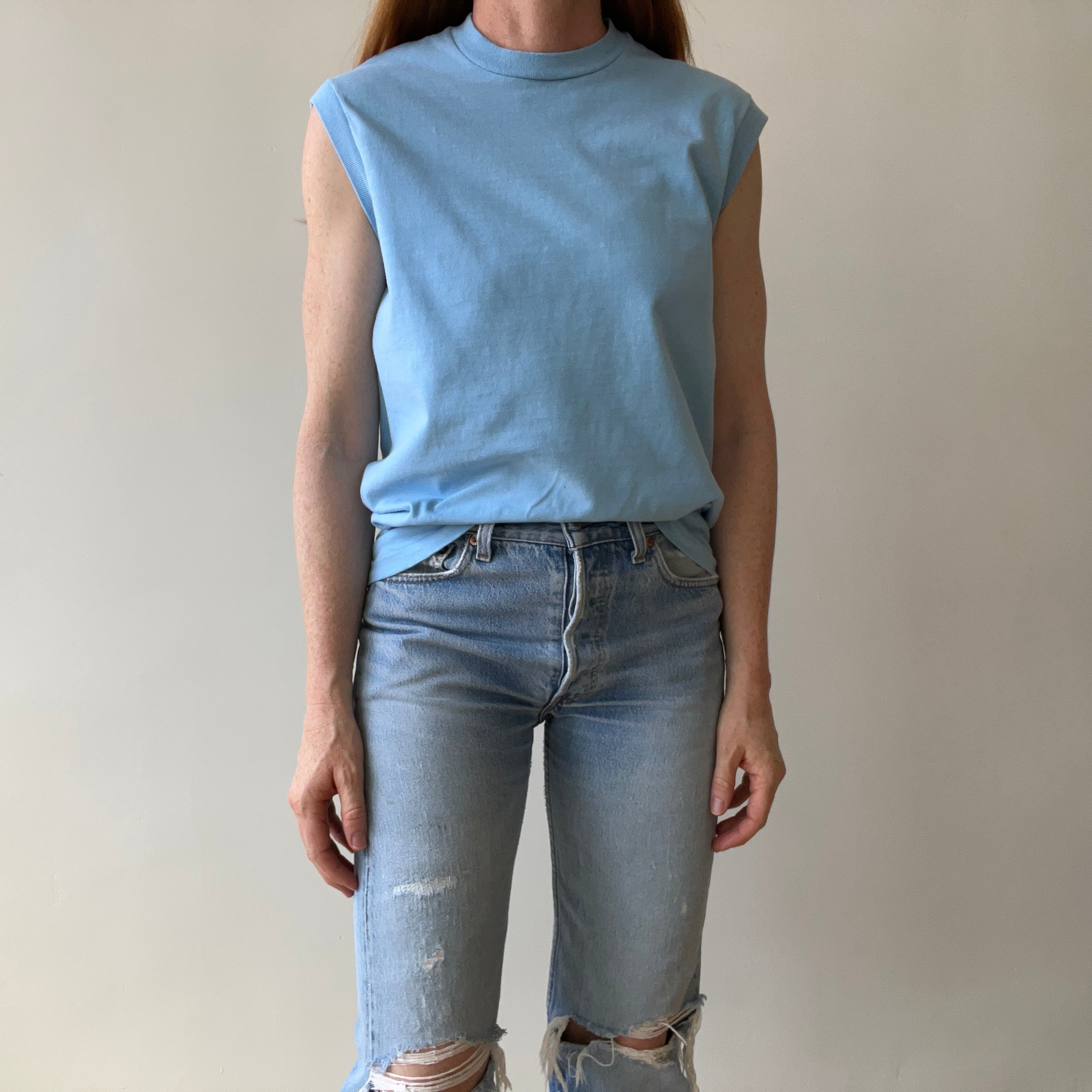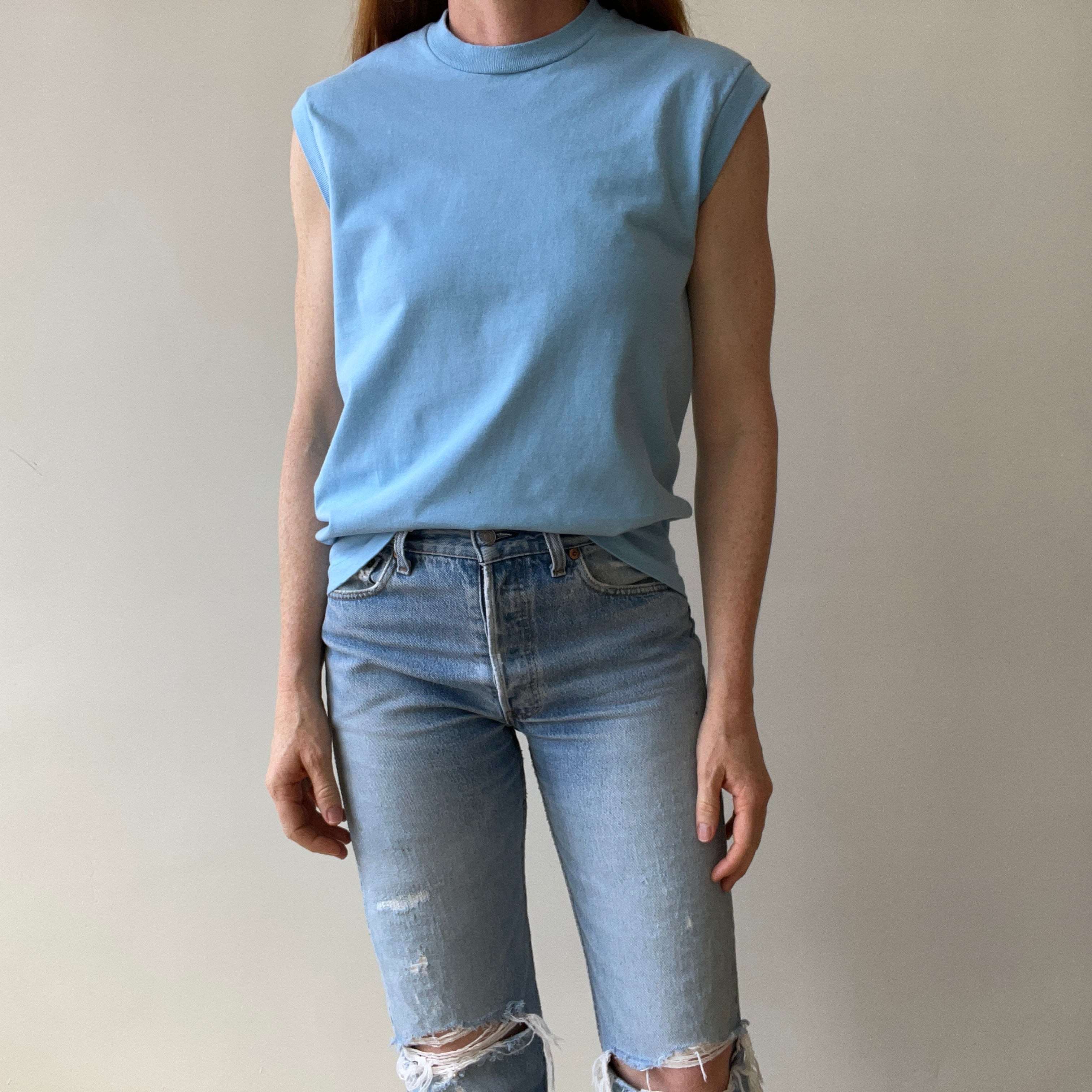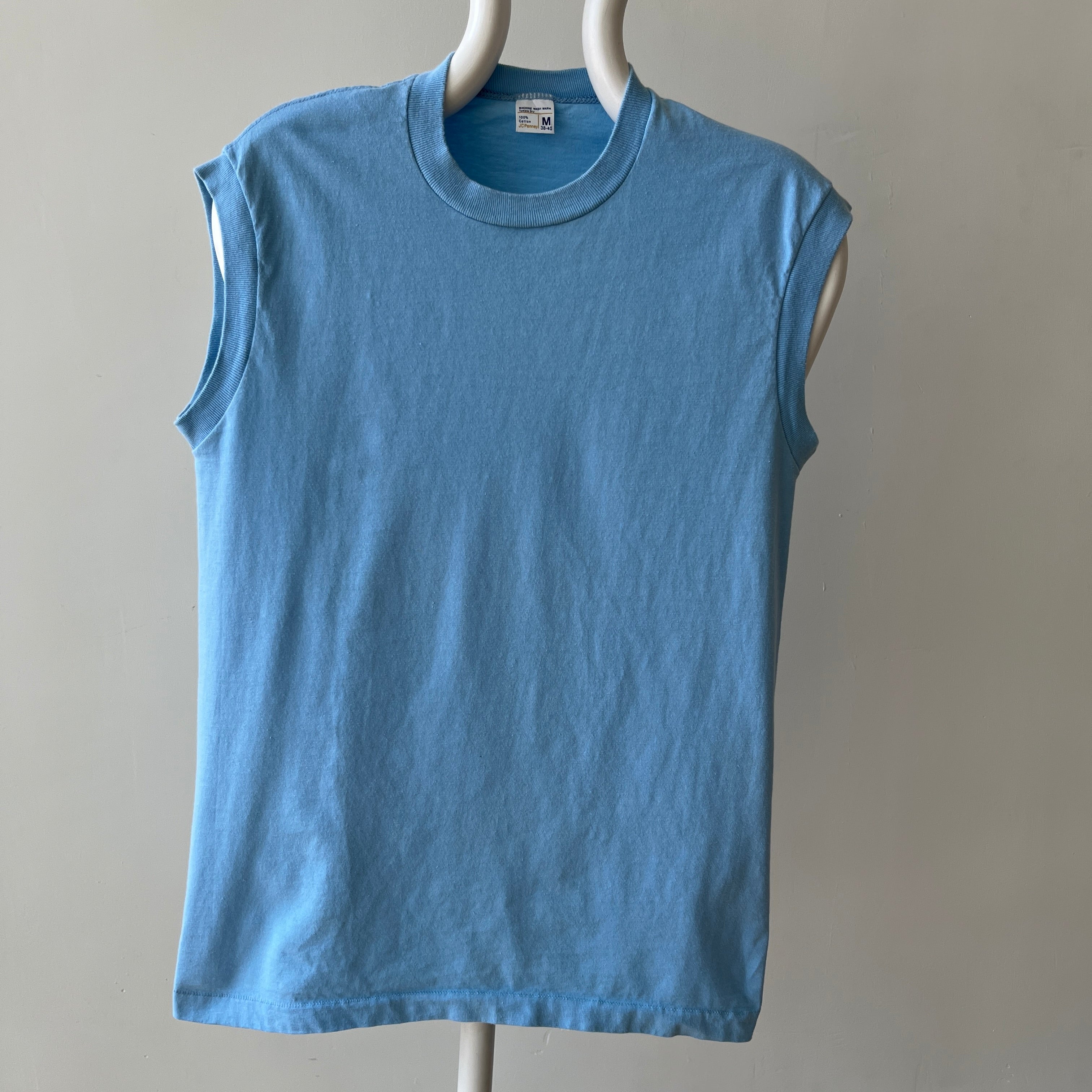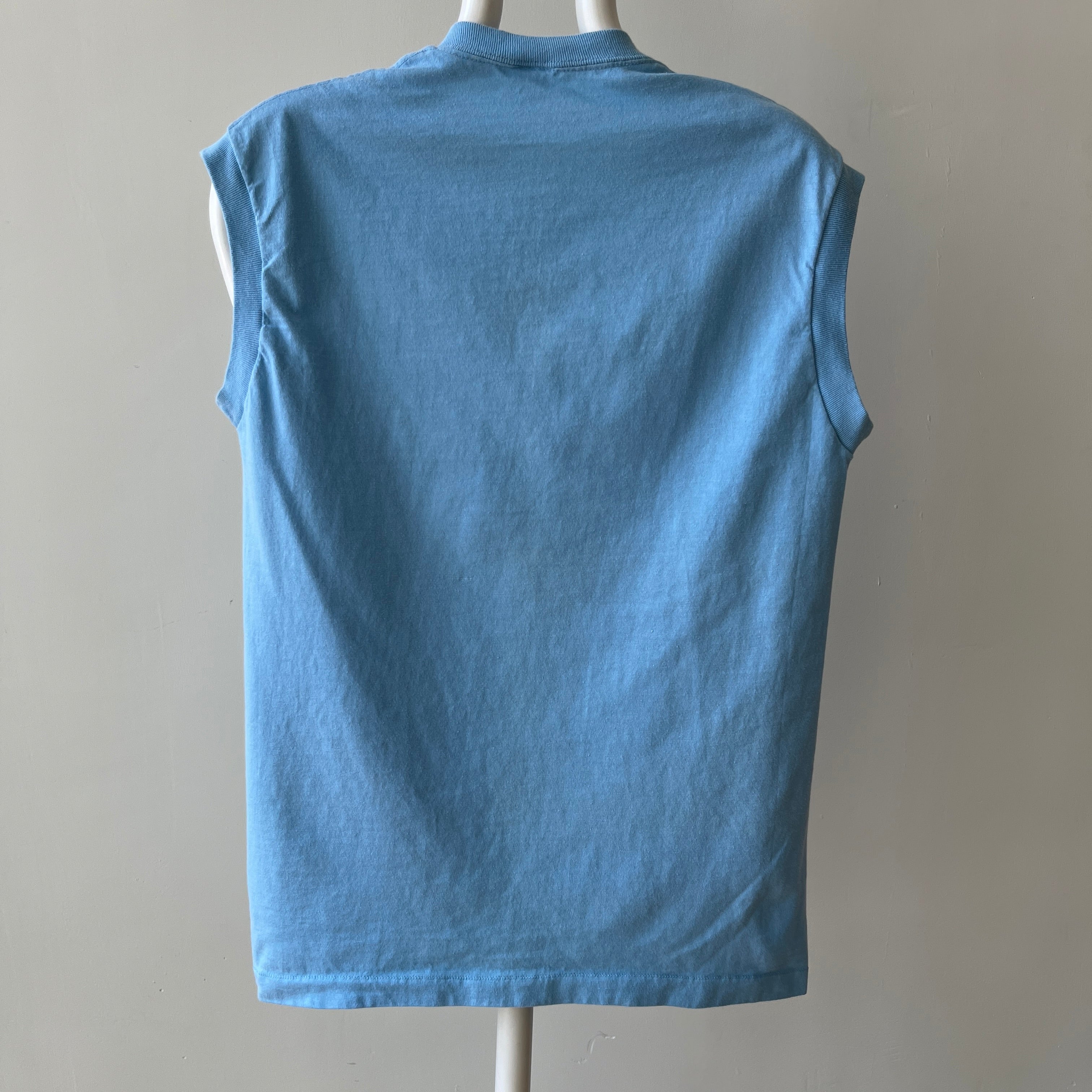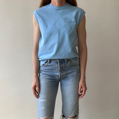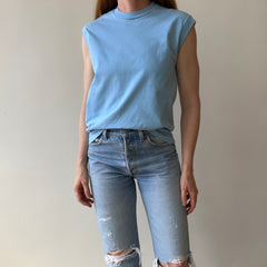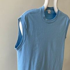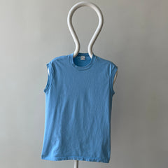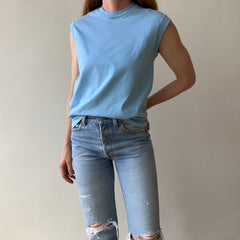1970s Blank Baby Blue Muscle T-Shirt - Medium Weight