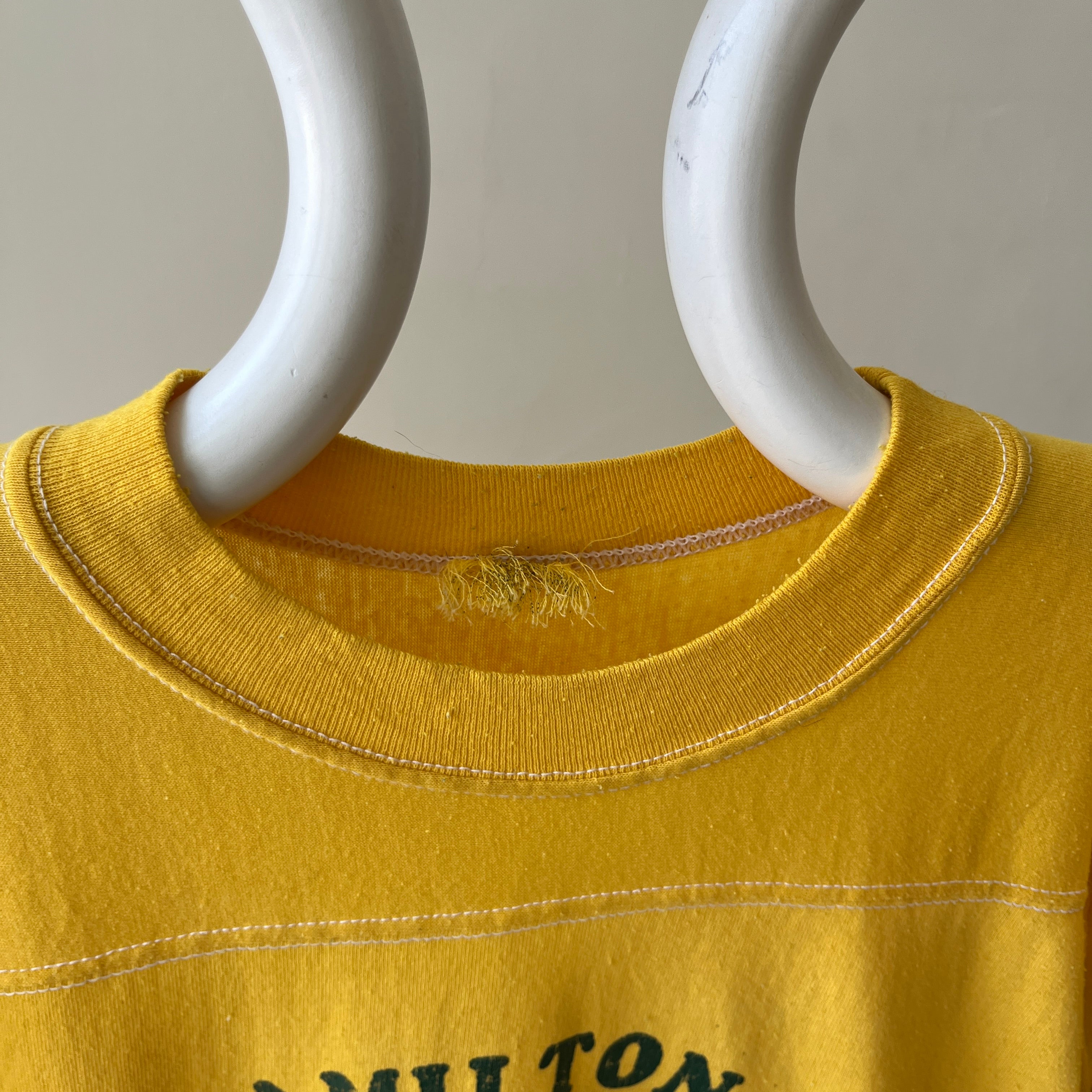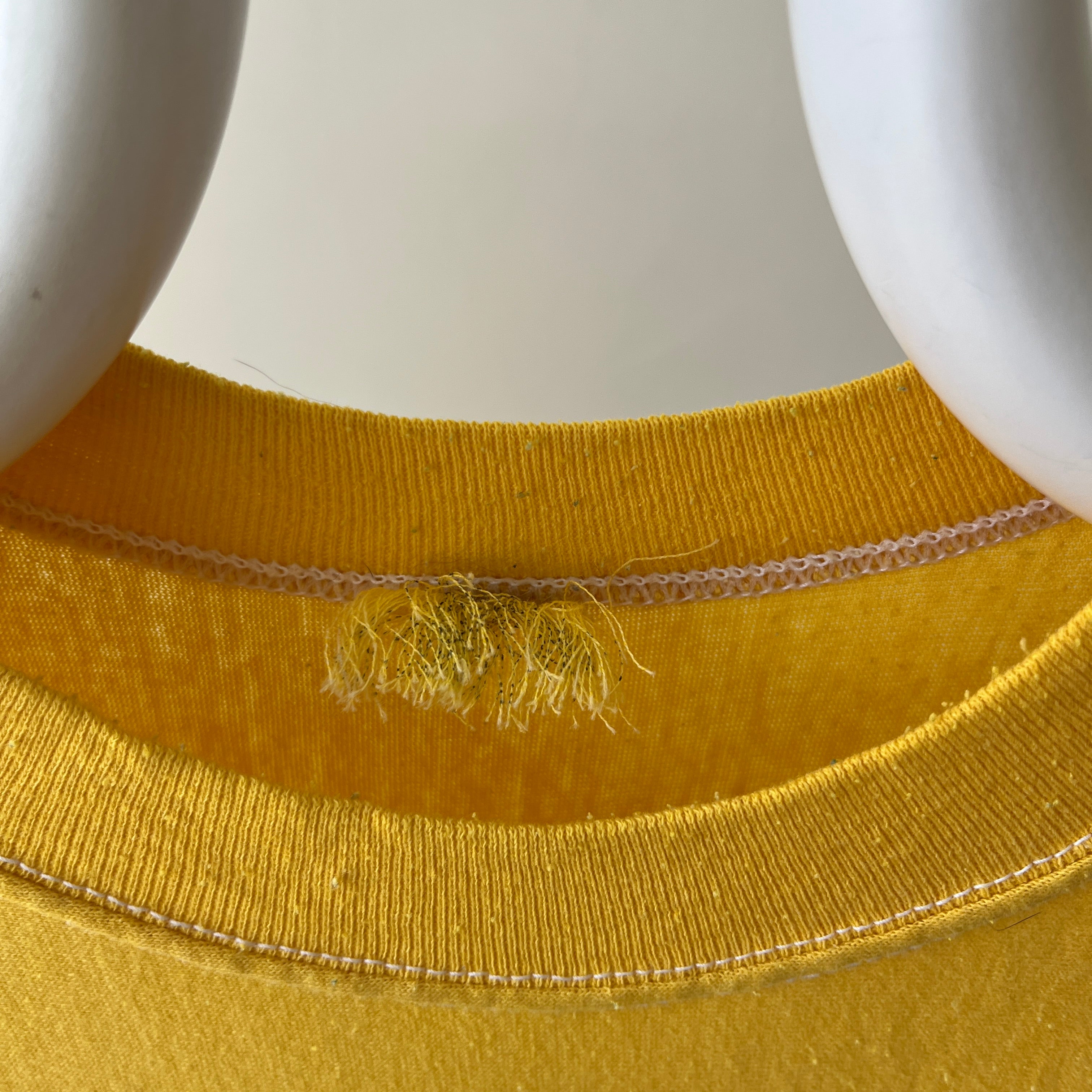 Stains are cool. But if I don’t have you convinced, that yellow jalopy hanging out on your new-old (now off) white tee could have been a mustard mishap from catching a fly ball at the World Series in ’83 with a hotdog in hand. Or from changing a flat tire on a college road trip to meet your future ex in-laws? Stains have stories even when they’re in the pits! Sweating in your favorite Hanes crewneck on your first middle school date can have a life long impact on a t-shirt.