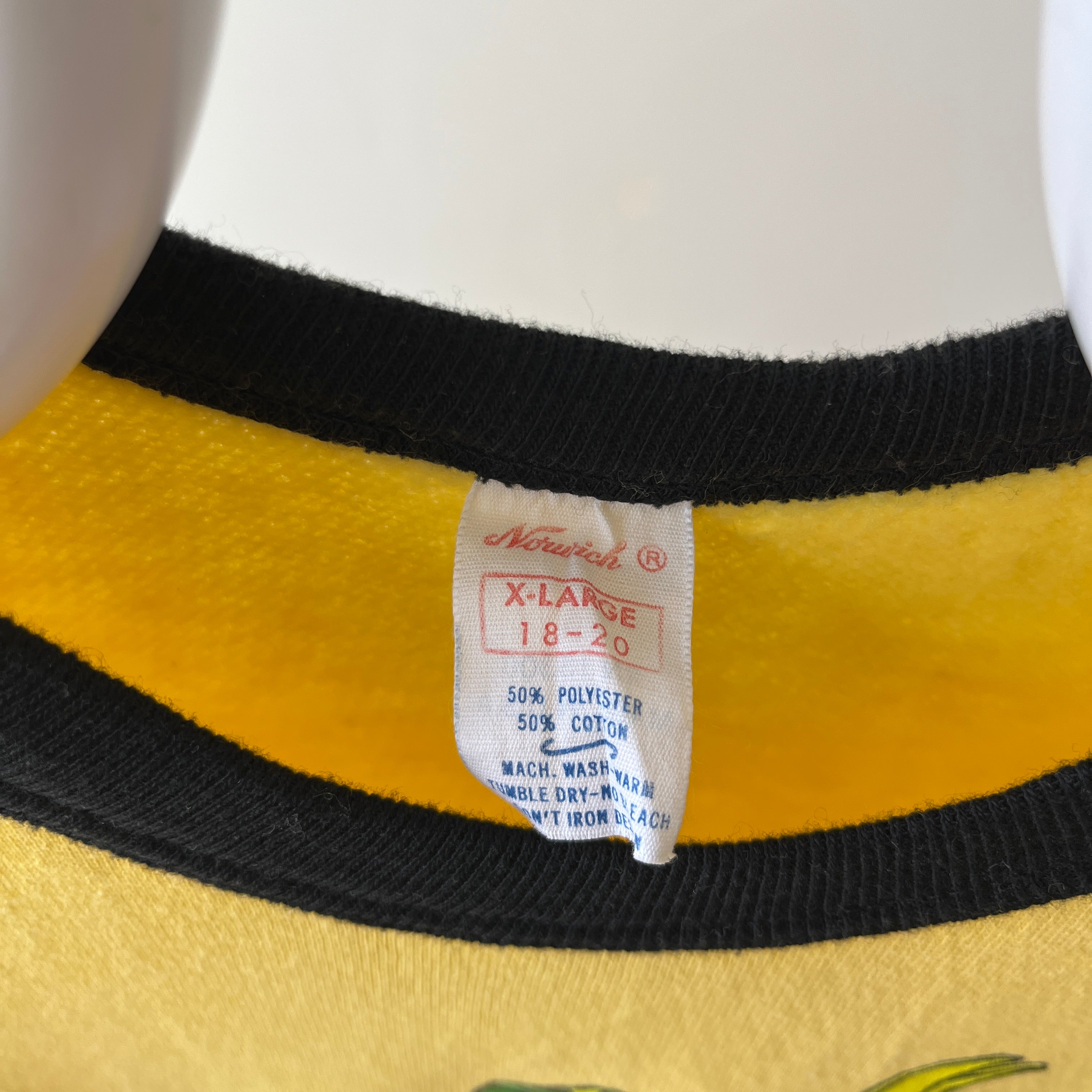 A lot of t-shirts back in the day were made from 50% cotton and 50% polyester. After decades of wear and tear they start to soften and get that “vintage t-shirt look”. 100% cotton shirts are generally a thicker feel and can appear more structured.