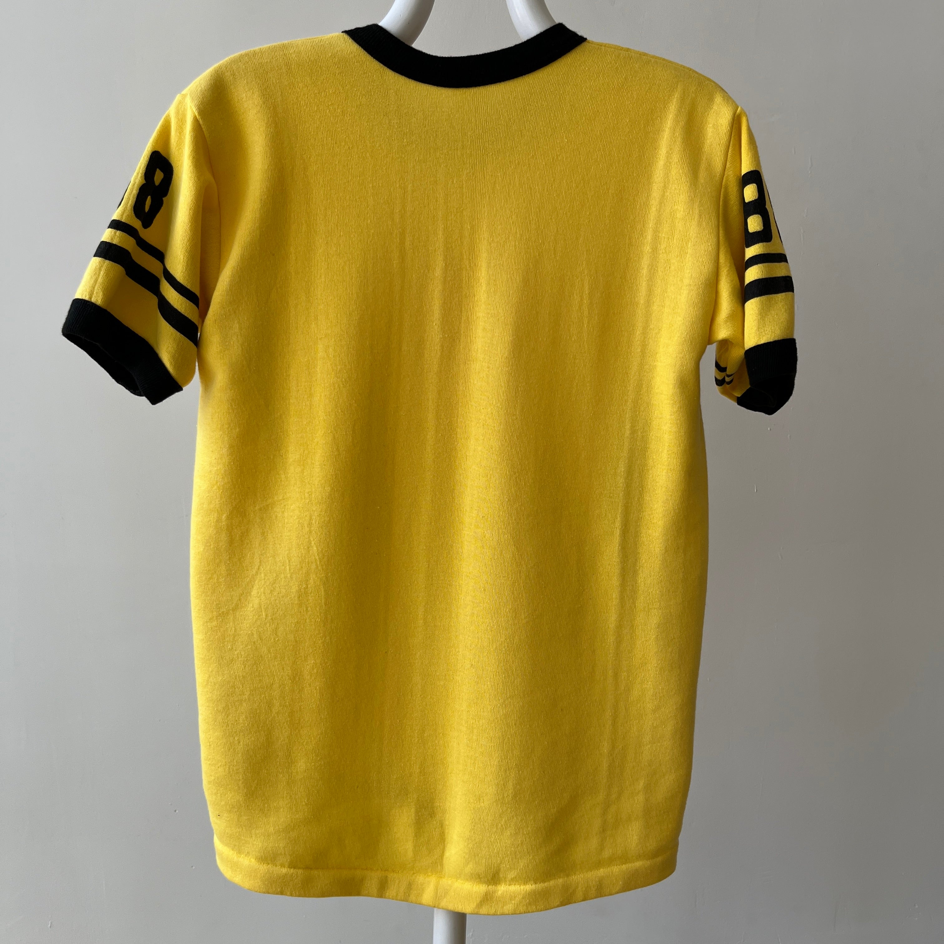 Stains are cool. But if I don’t have you convinced, that yellow jalopy hanging out on your new-old (now off) white tee could have been a mustard mishap from catching a fly ball at the World Series in ’83 with a hotdog in hand. Or from changing a flat tire on a college road trip to meet your future ex in-laws? Stains have stories even when they’re in the pits! Sweating in your favorite Hanes crewneck on your first middle school date can have a life long impact on a t-shirt.
