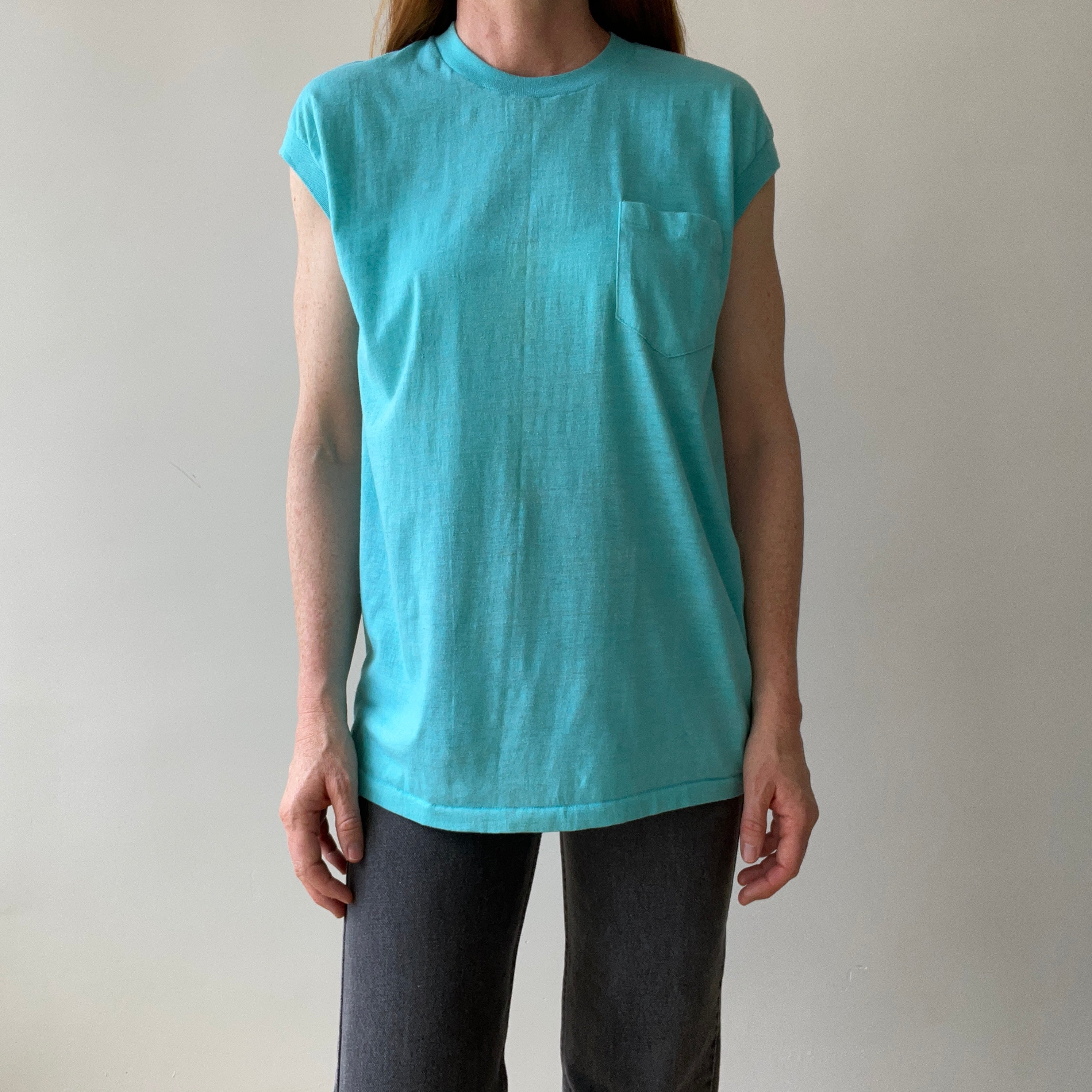 Stains are cool. But if I don’t have you convinced, that yellow jalopy hanging out on your new-old (now off) white tee could have been a mustard mishap from catching a fly ball at the World Series in ’83 with a hotdog in hand. Or from changing a flat tire on a college road trip to meet your future ex in-laws? Stains have stories even when they’re in the pits! Sweating in your favorite Hanes crewneck on your first middle school date can have a life long impact on a t-shirt.