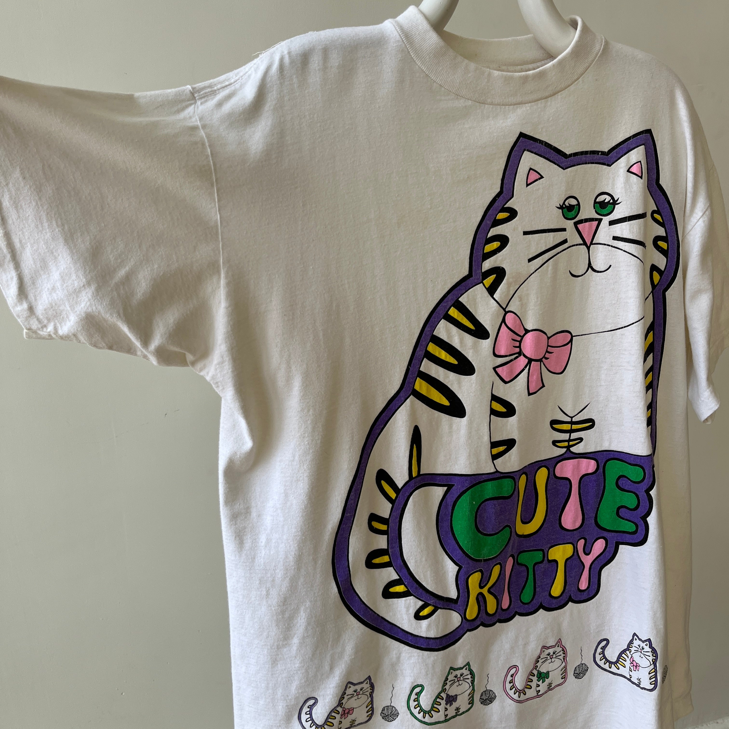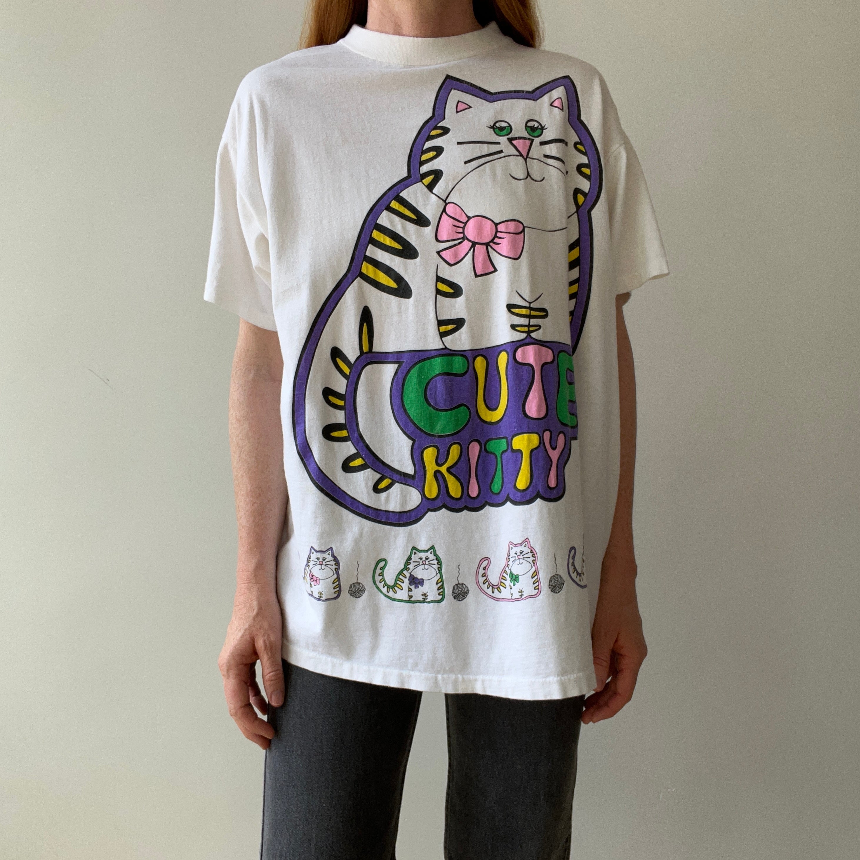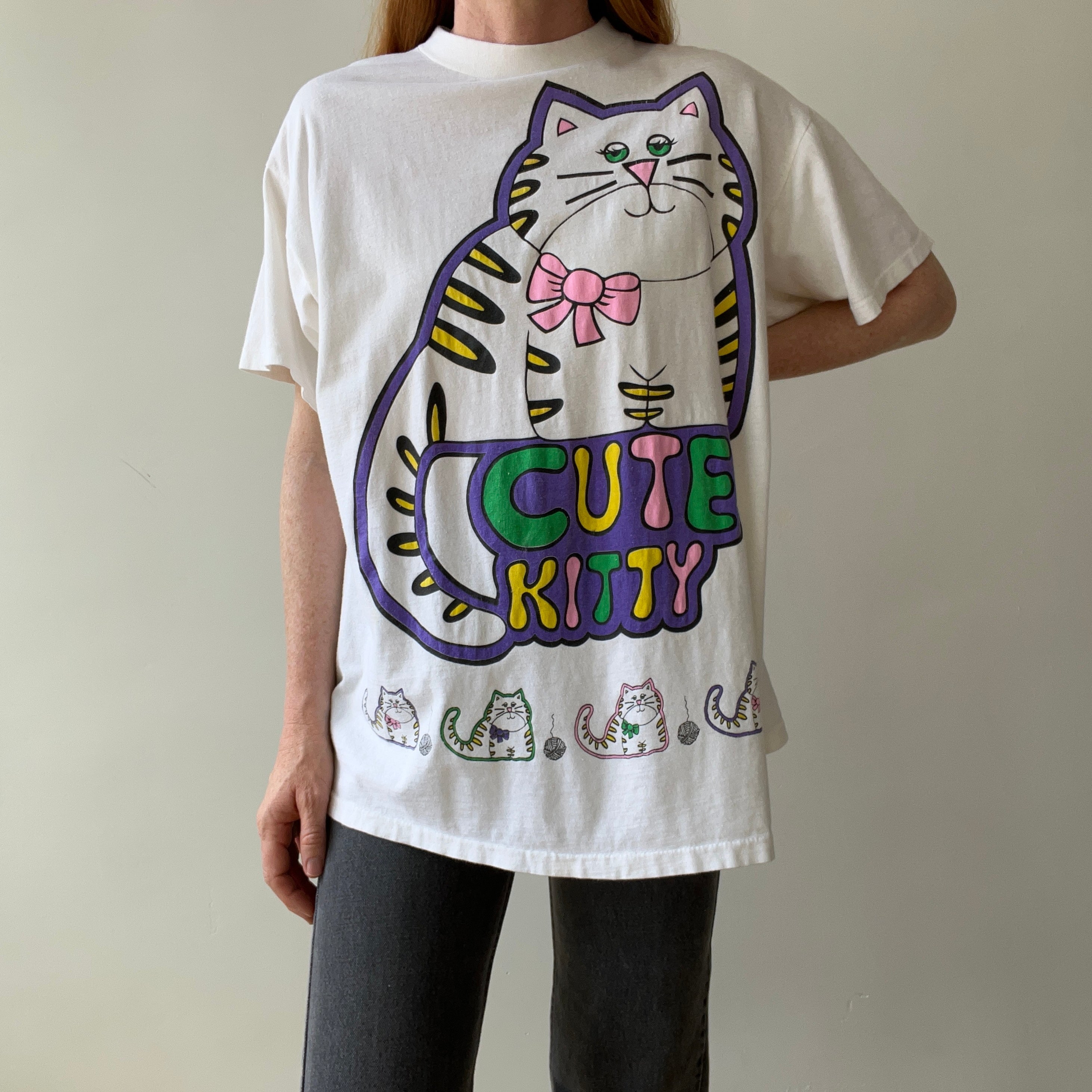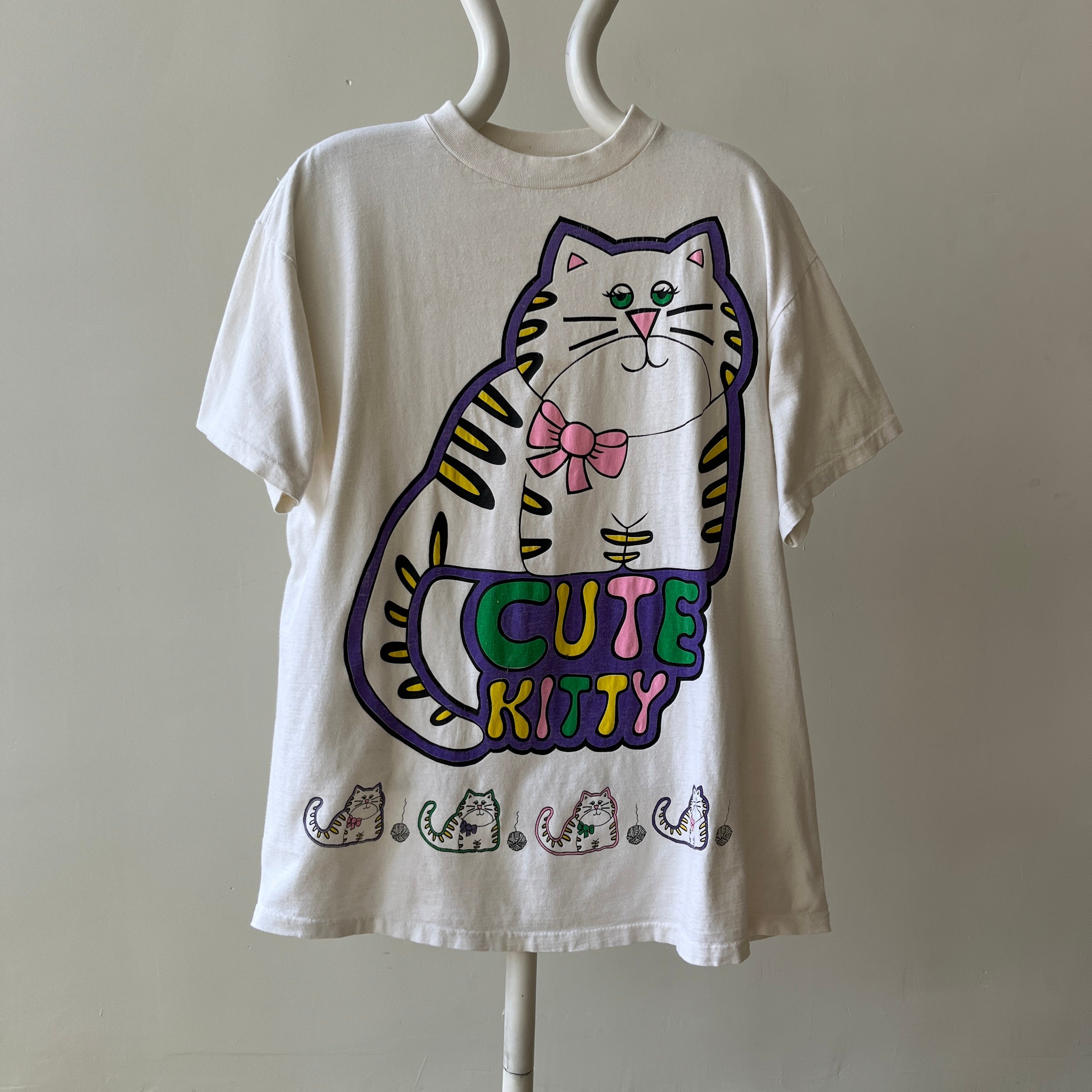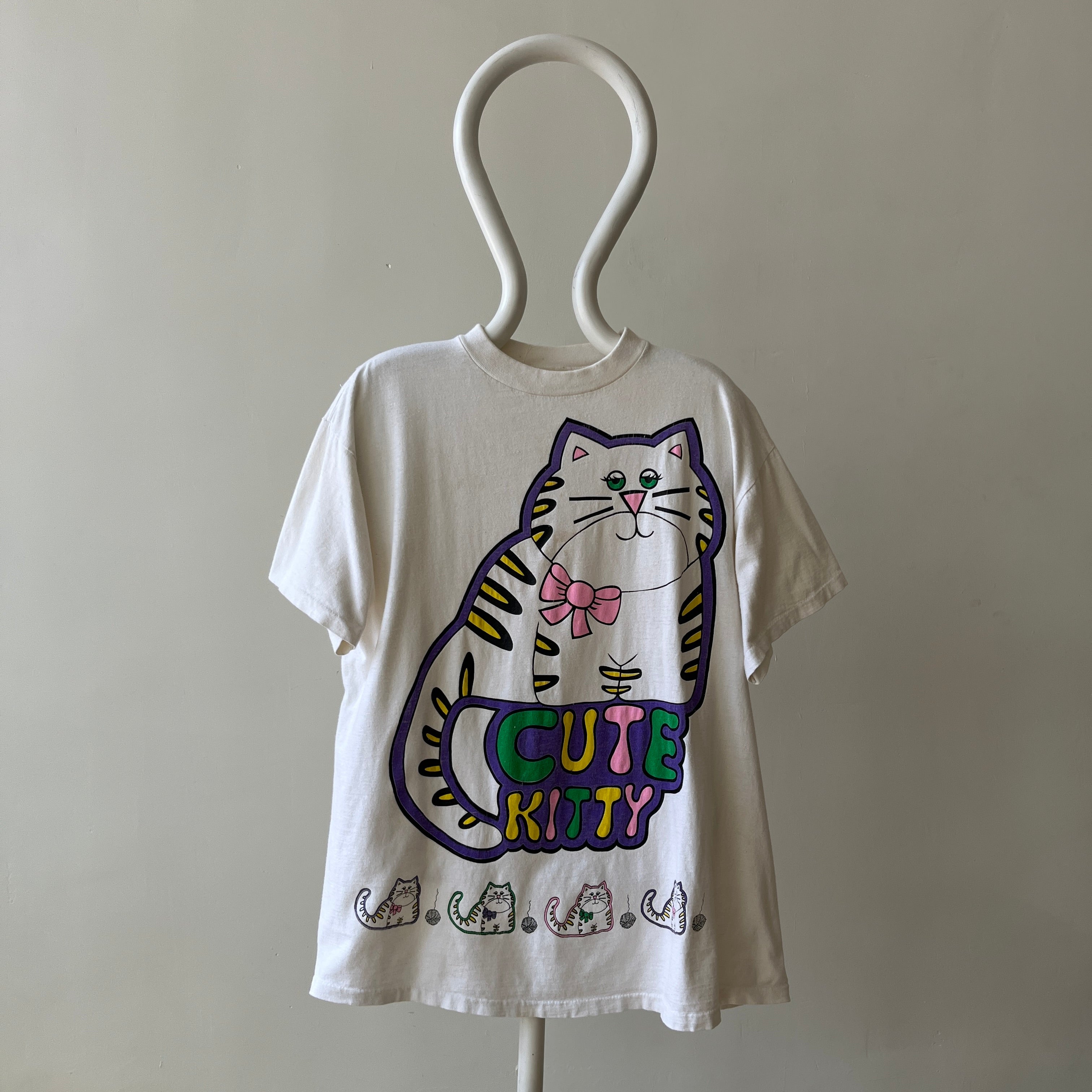 Notes: faint stains, heavy weight cotton, single stitch, boxy - here kitty, kitty...