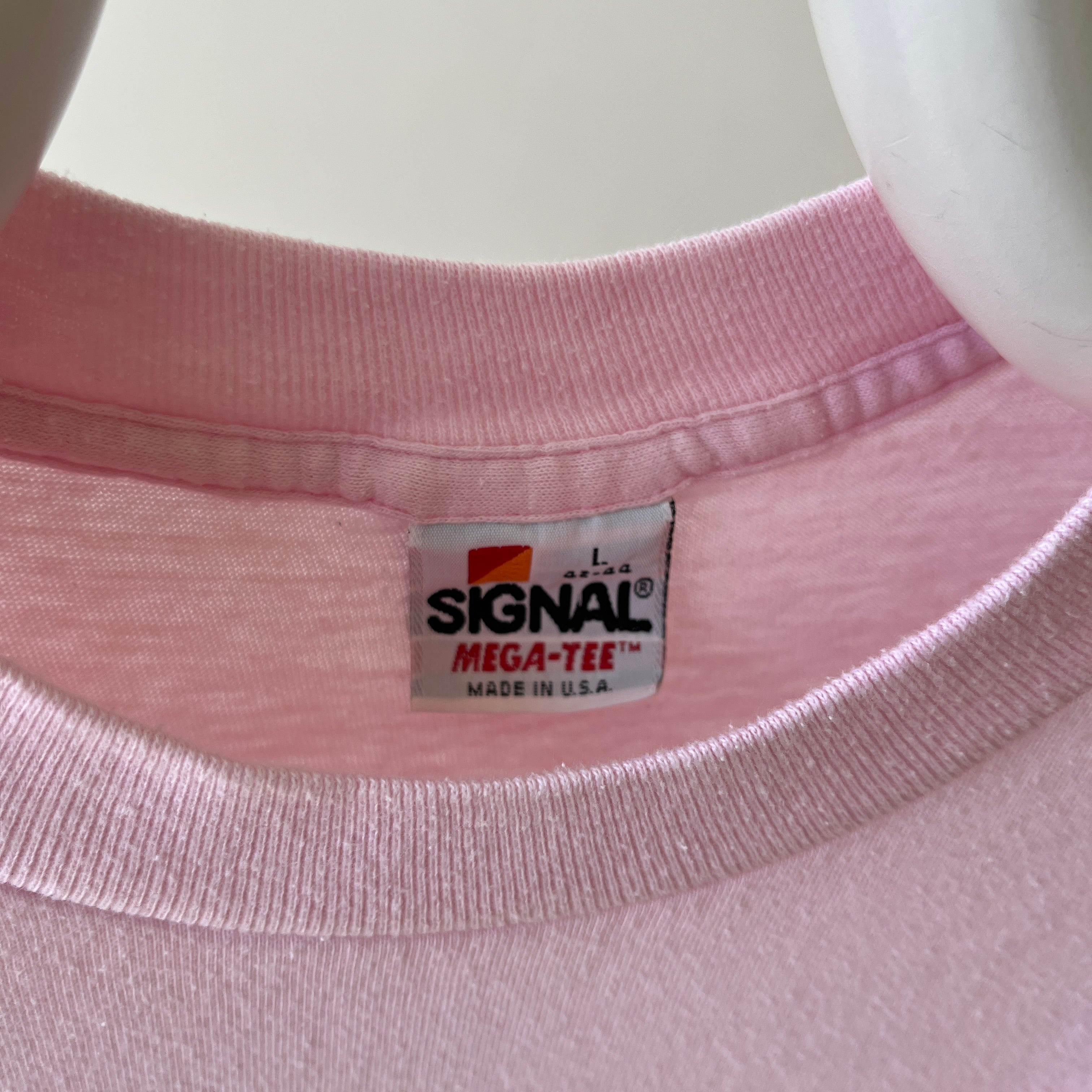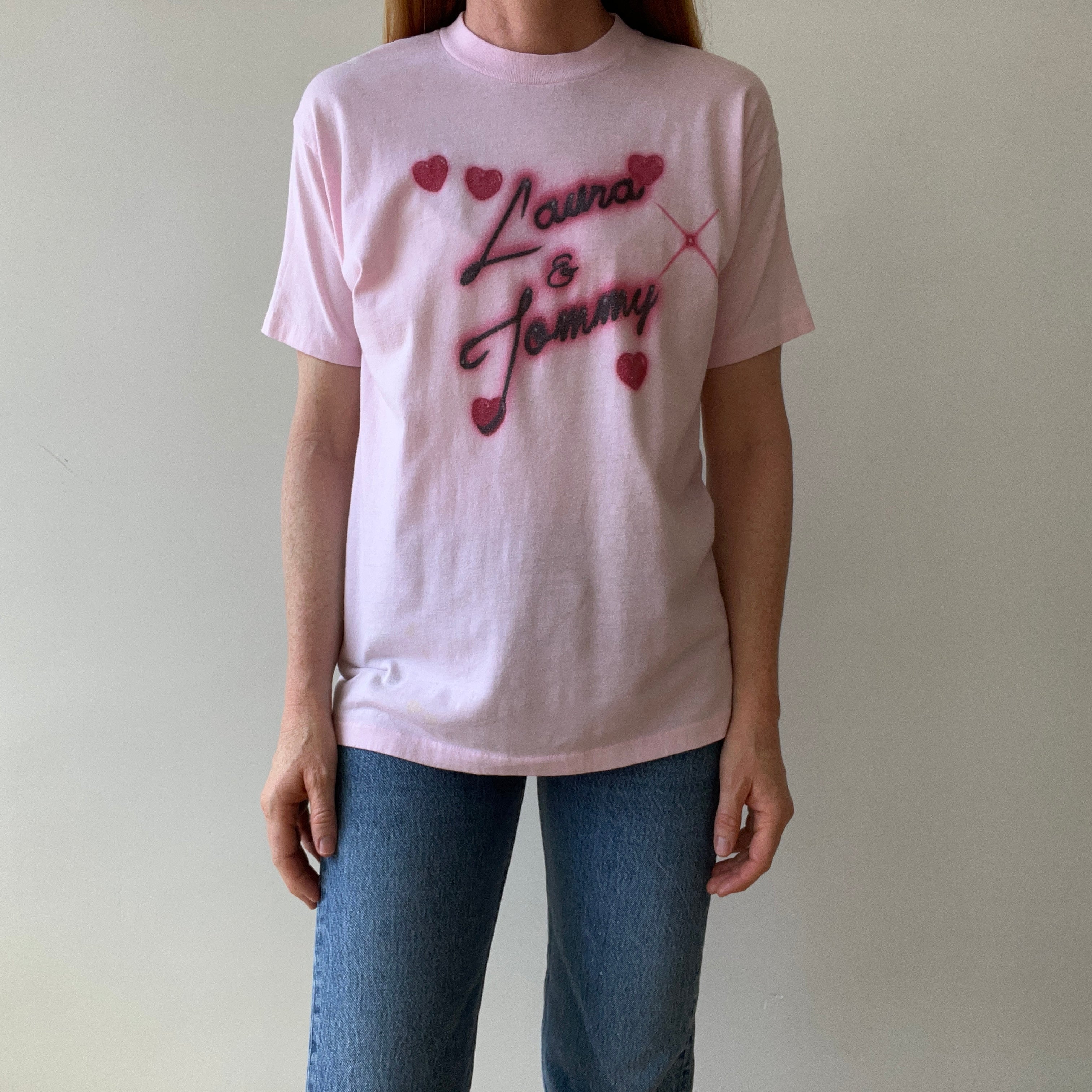 Notes: light wear, faint stain on back, single stitch, soft cotton, made in usa - are laura and tommy still an item? classic 80s cut. signal tag.