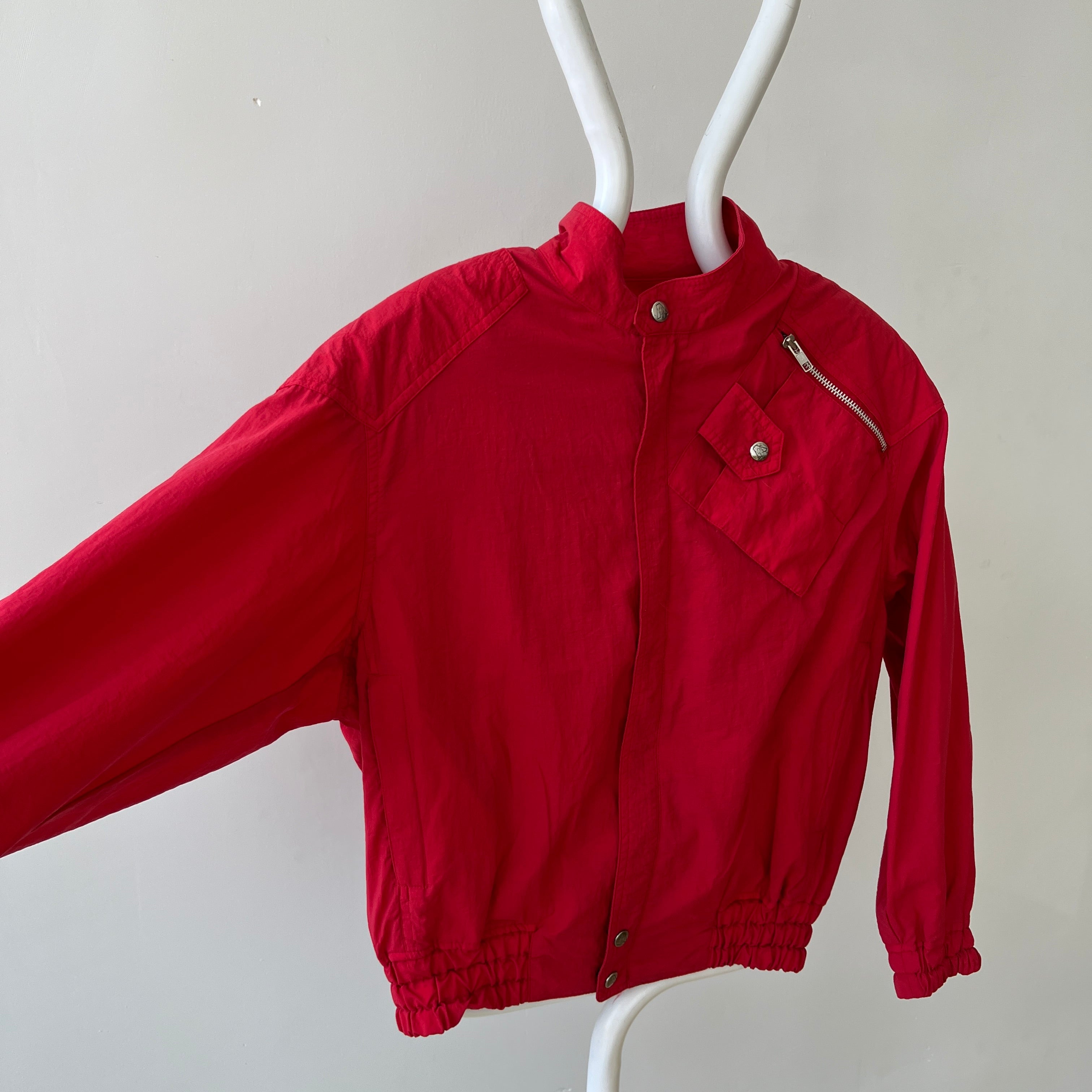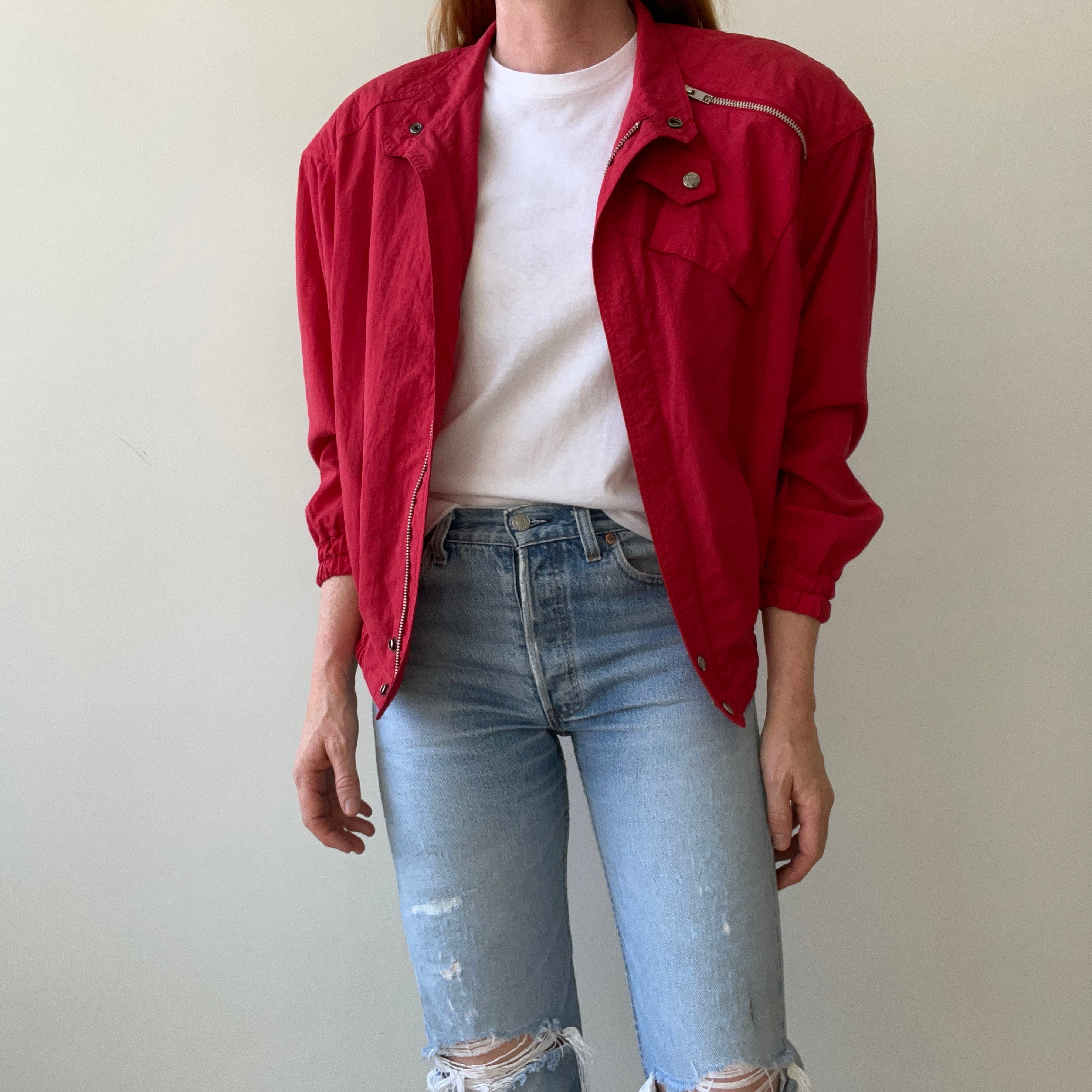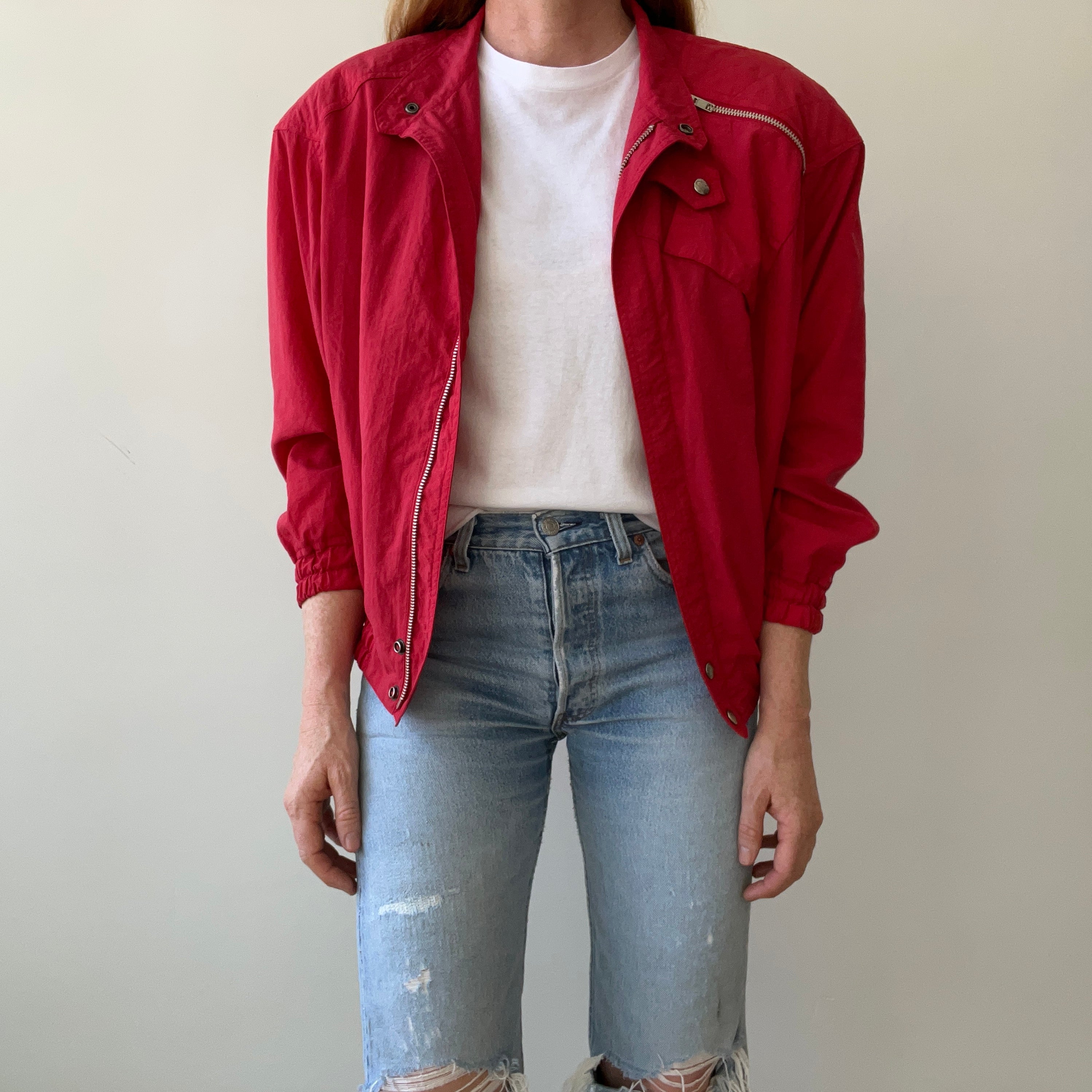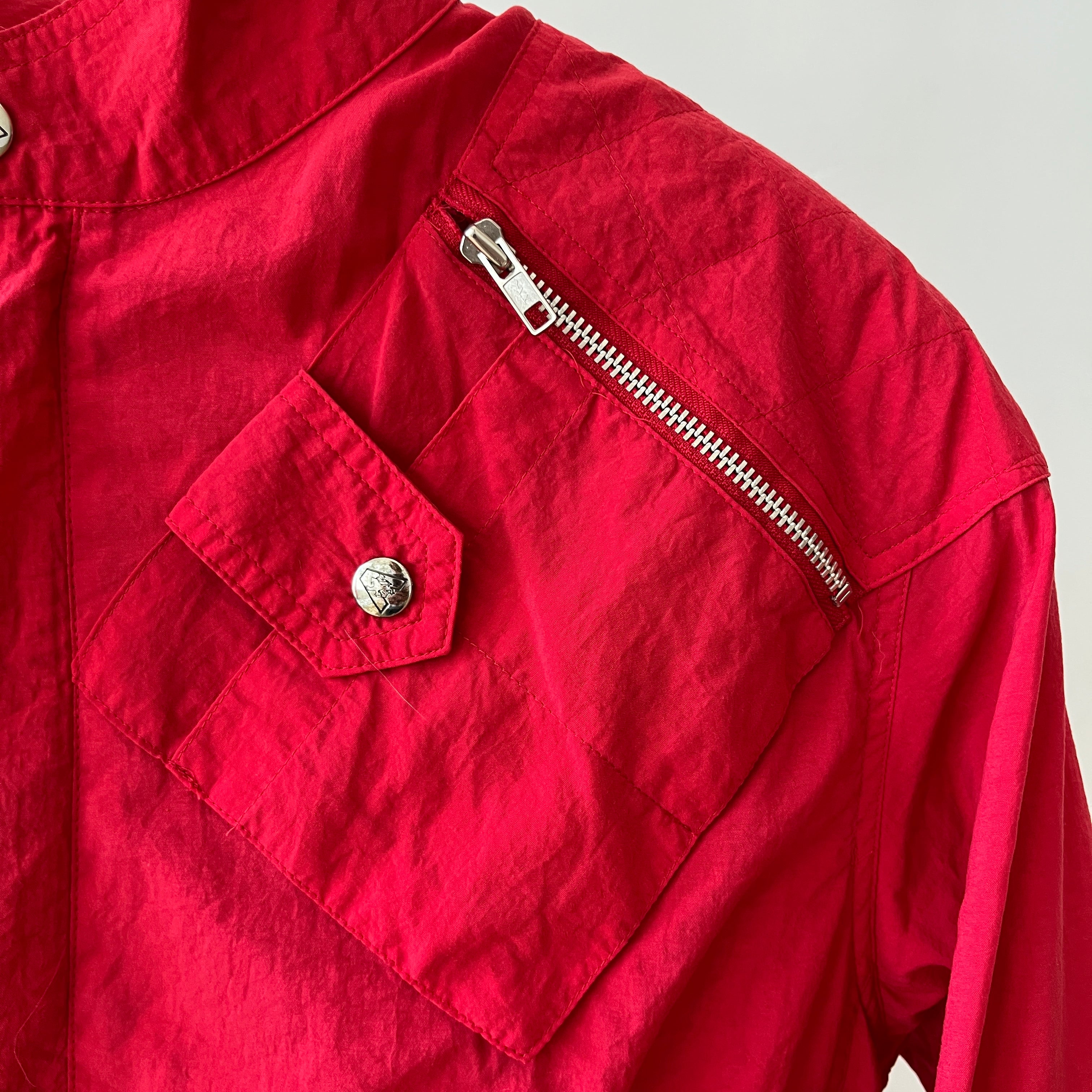 Notes: great condition, zip and snap closure pocket on front, embroidered on back, padded layer in shoulders, loose boxy fit, windbreaker feel - RAD.