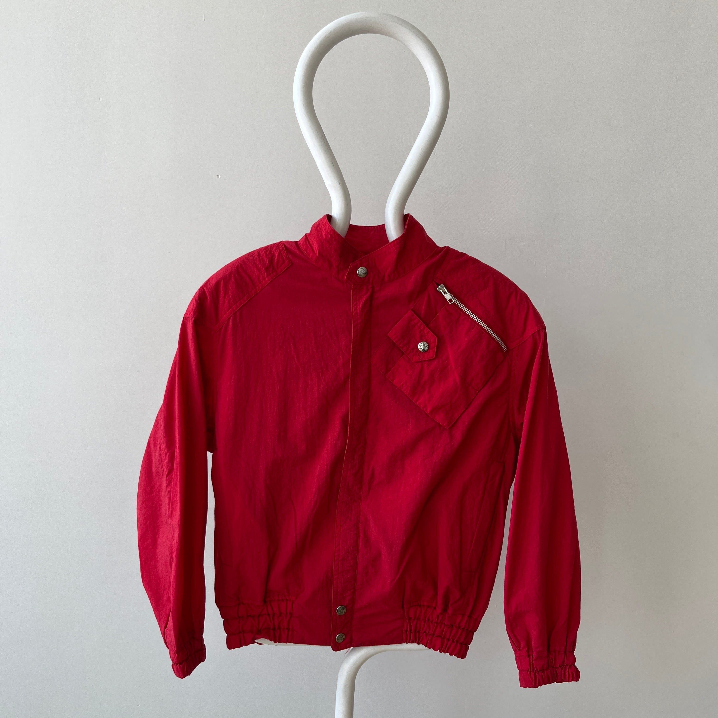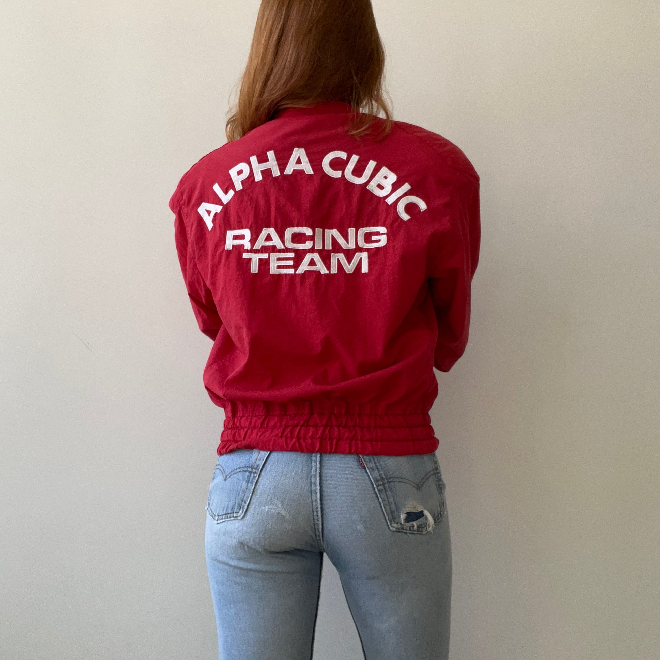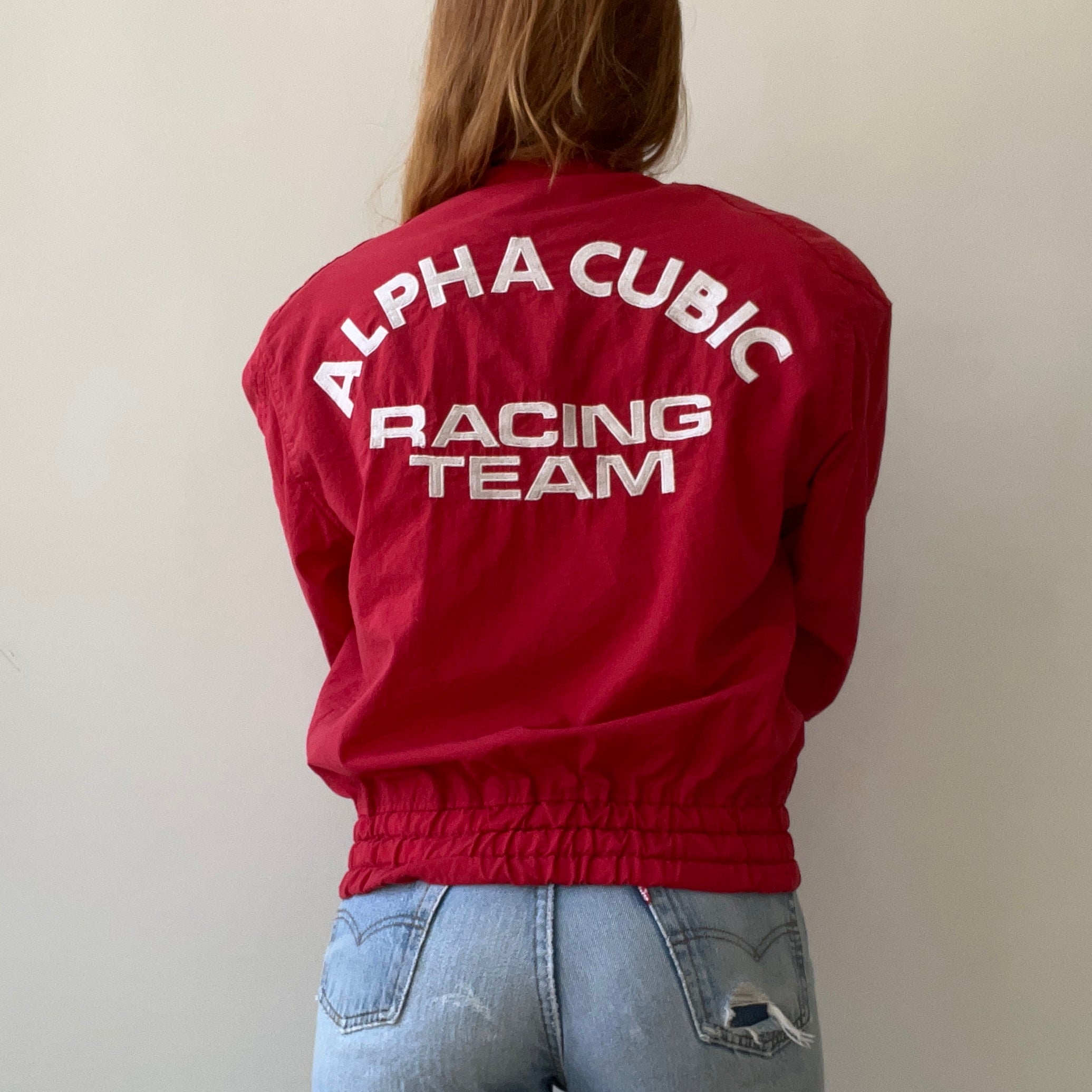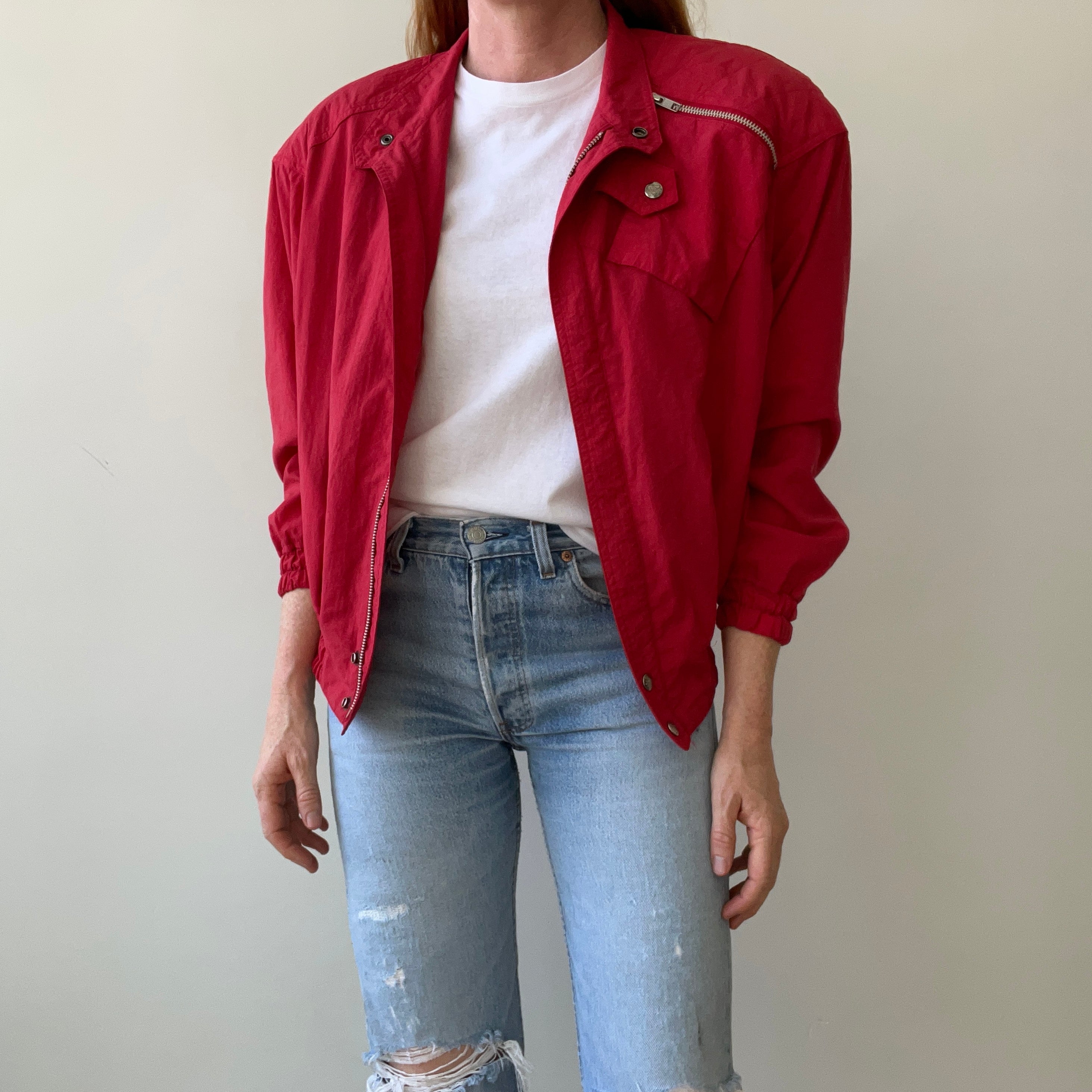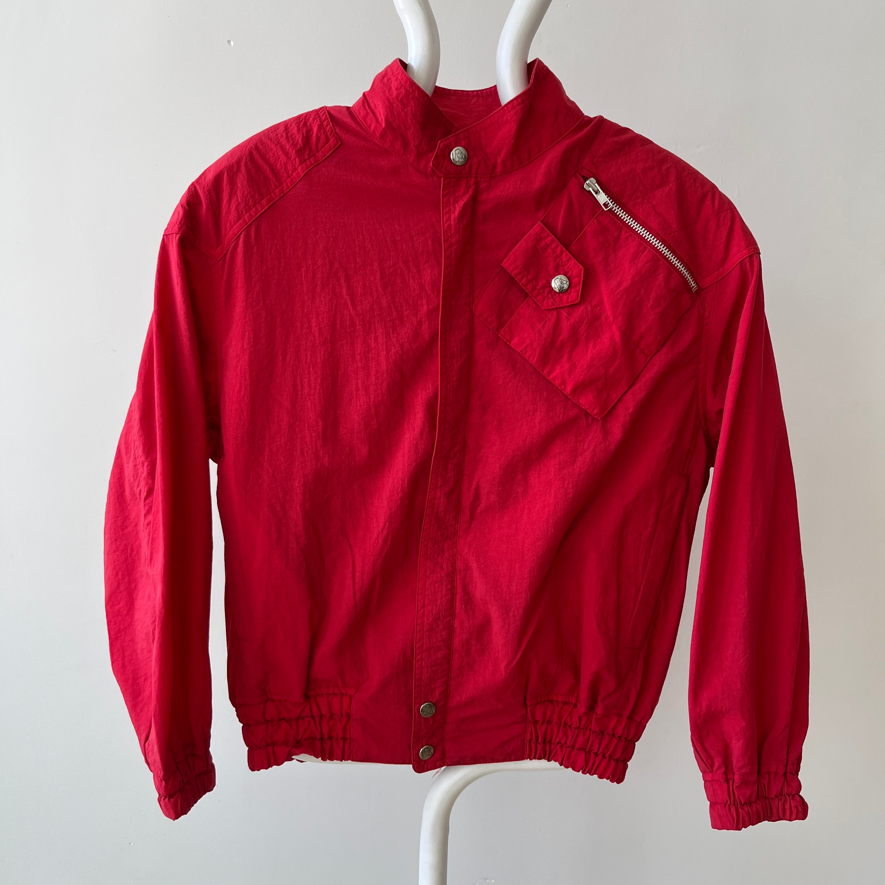 Notes: great condition, zip and snap closure pocket on front, embroidered on back, padded layer in shoulders, loose boxy fit, windbreaker feel - RAD.