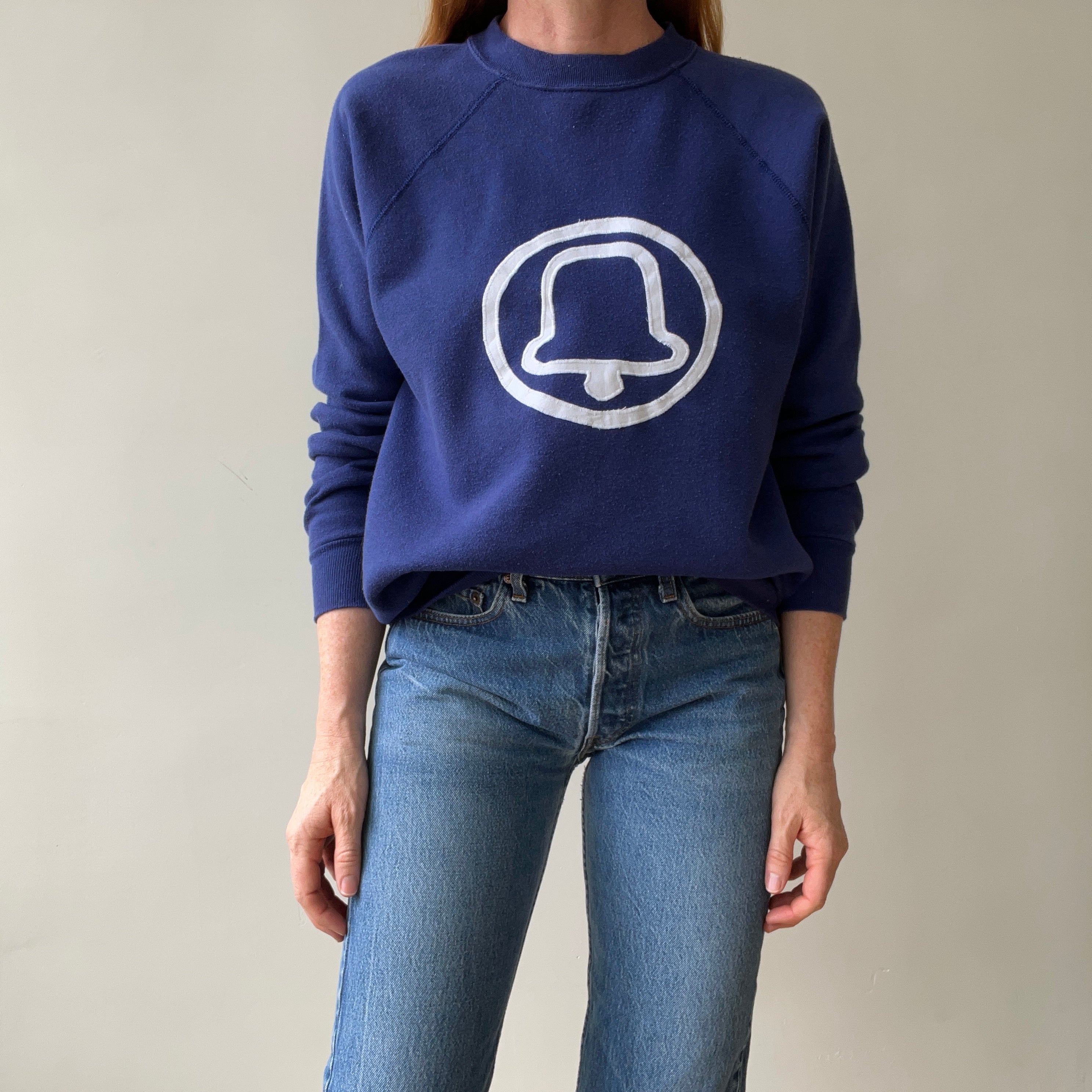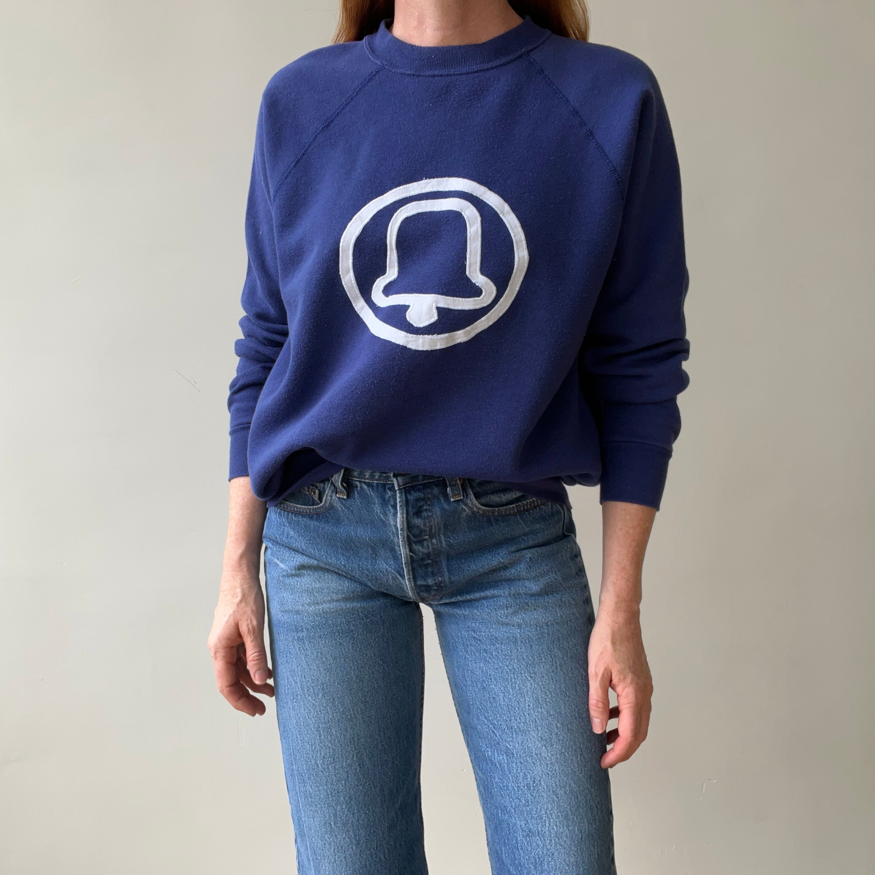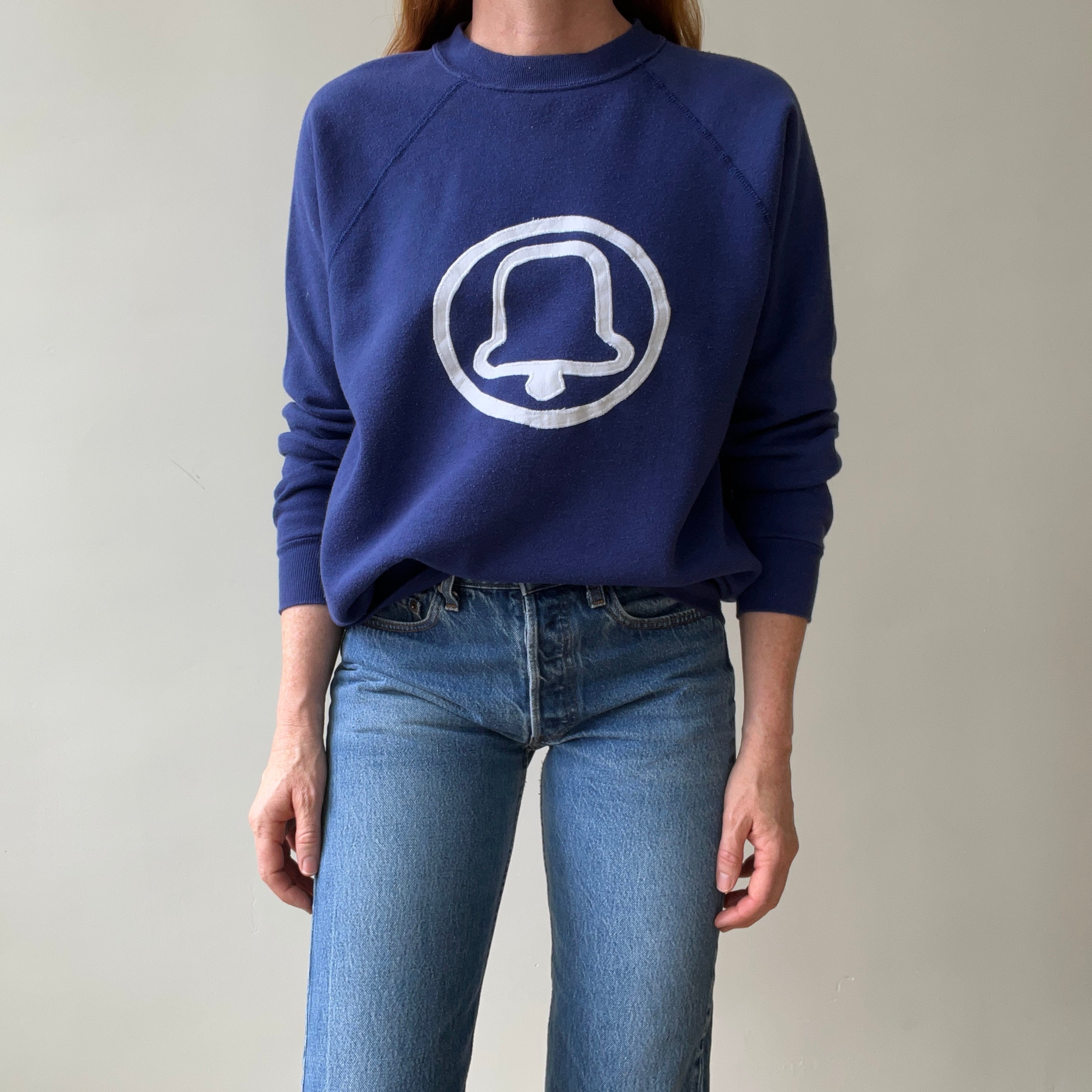 Notes: faint pilling, loose cut, raglan sleeve, made in usa. pac bell had an antitrust breakup in 1984 and is now at&t.