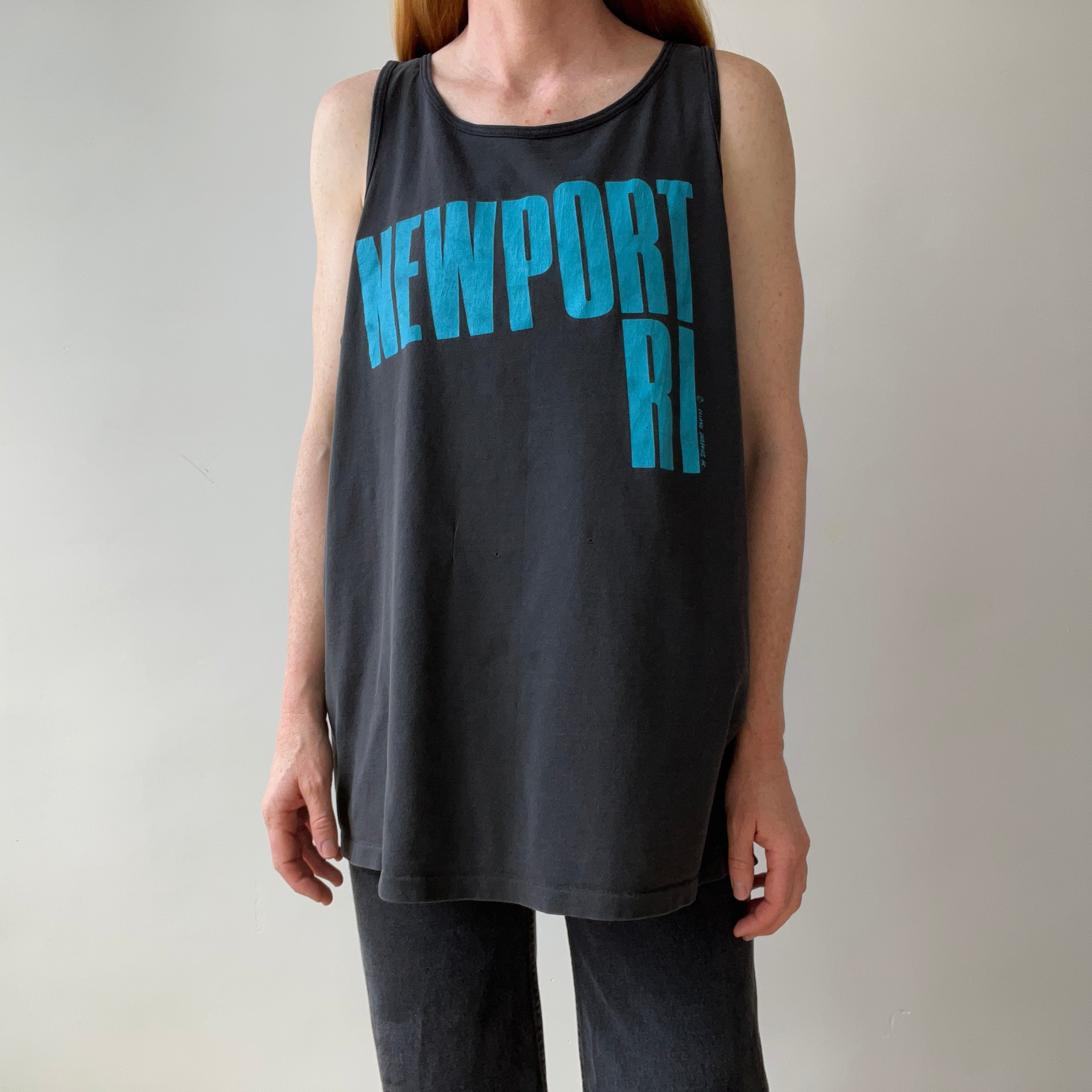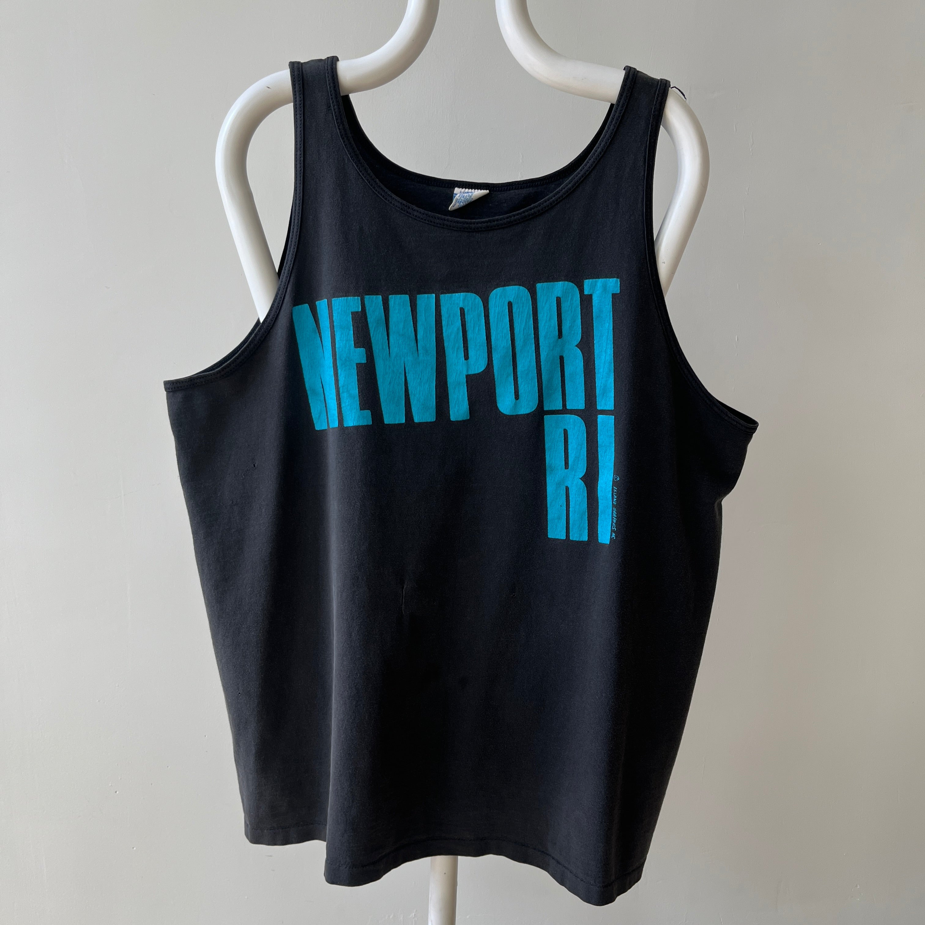 Notes: stains, holes, small repair, single stitch, heavy cotton, made in usa - for a newport local :)