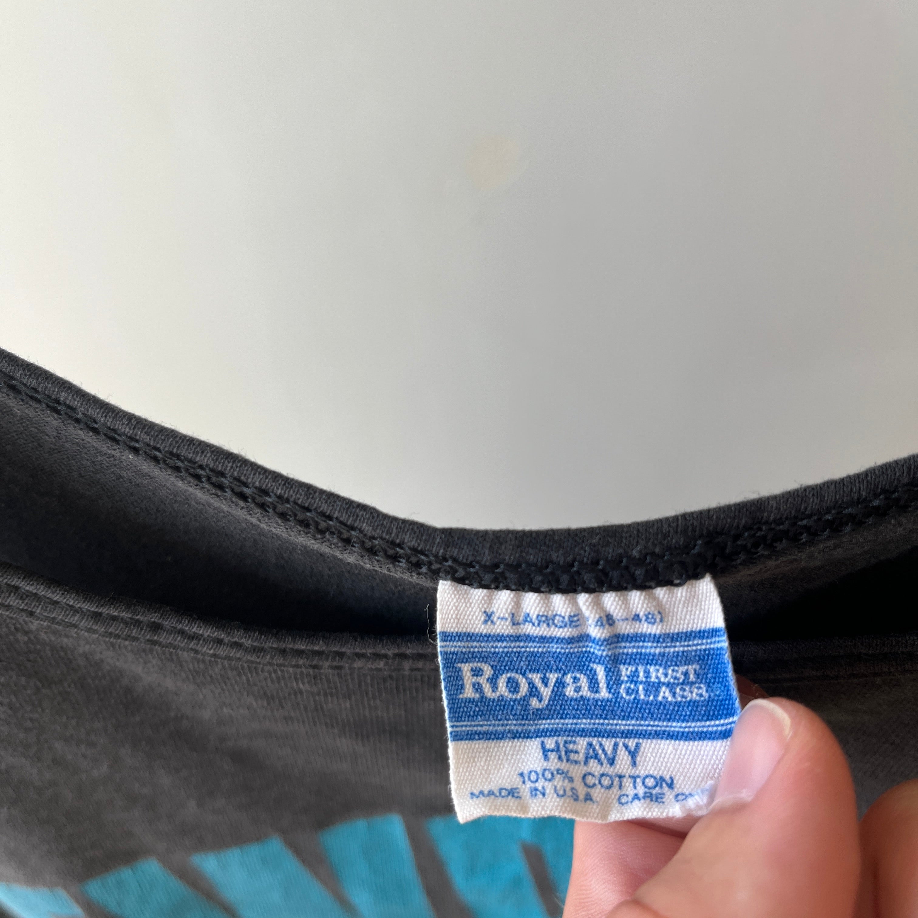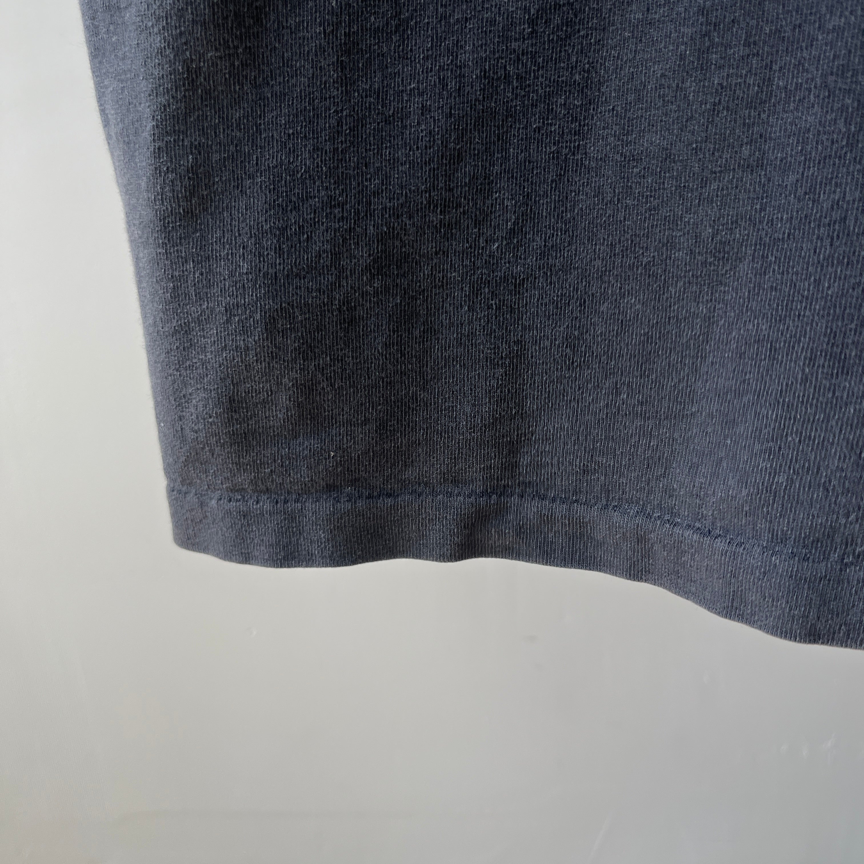 A lot of t-shirts back in the day were made from 50% cotton and 50% polyester. After decades of wear and tear they start to soften and get that “vintage t-shirt look”. 100% cotton shirts are generally a thicker feel and can appear more structured.