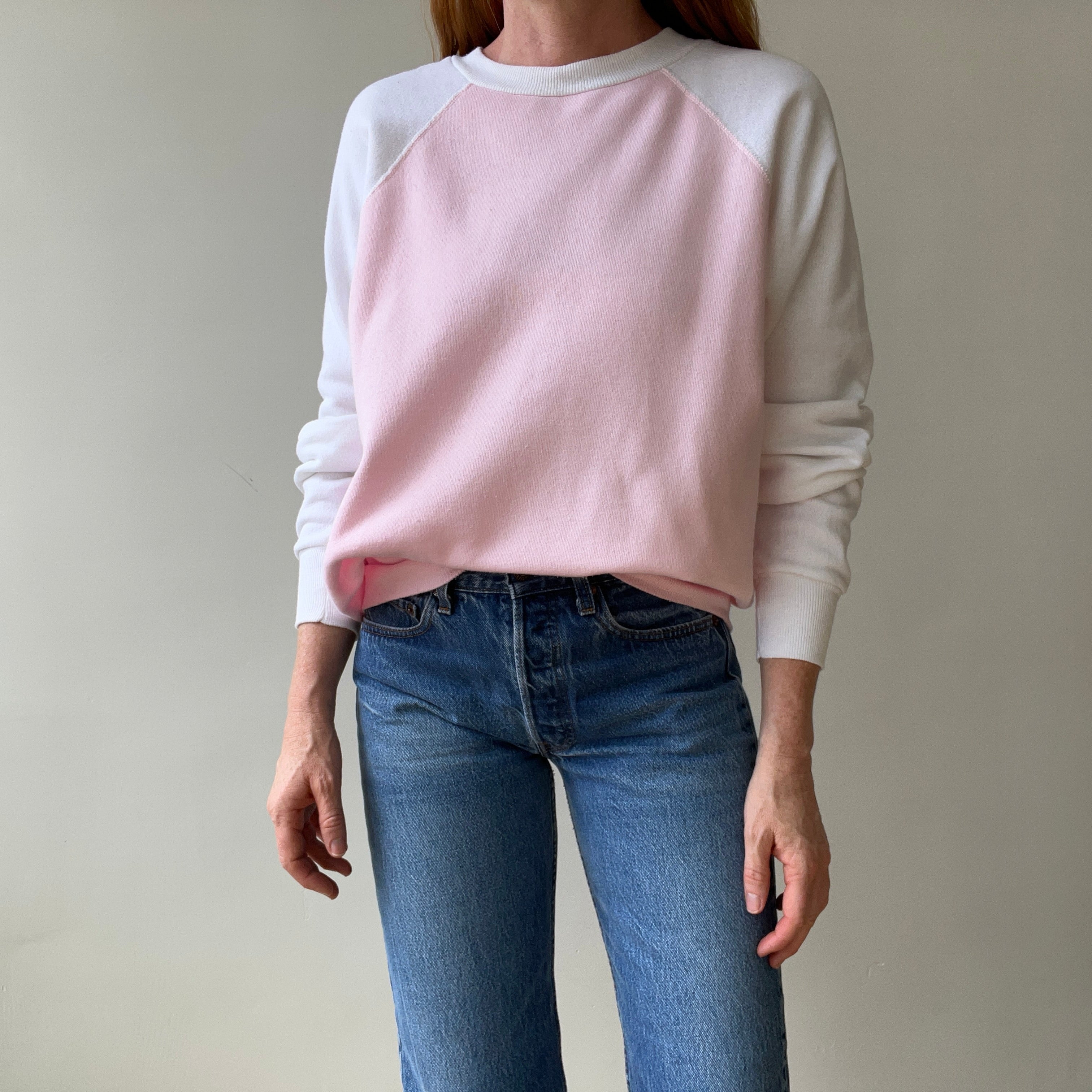 Notes: she's a good one! some structure, but not too much. slight pilling, light wear, raglan sleeve, made in usa