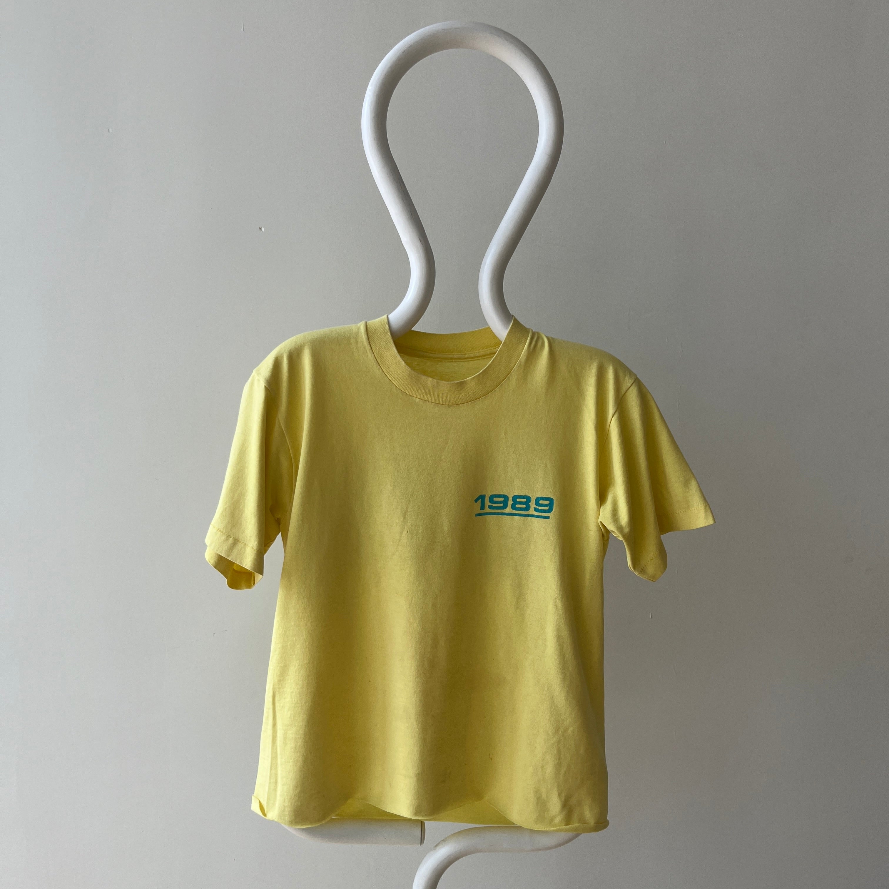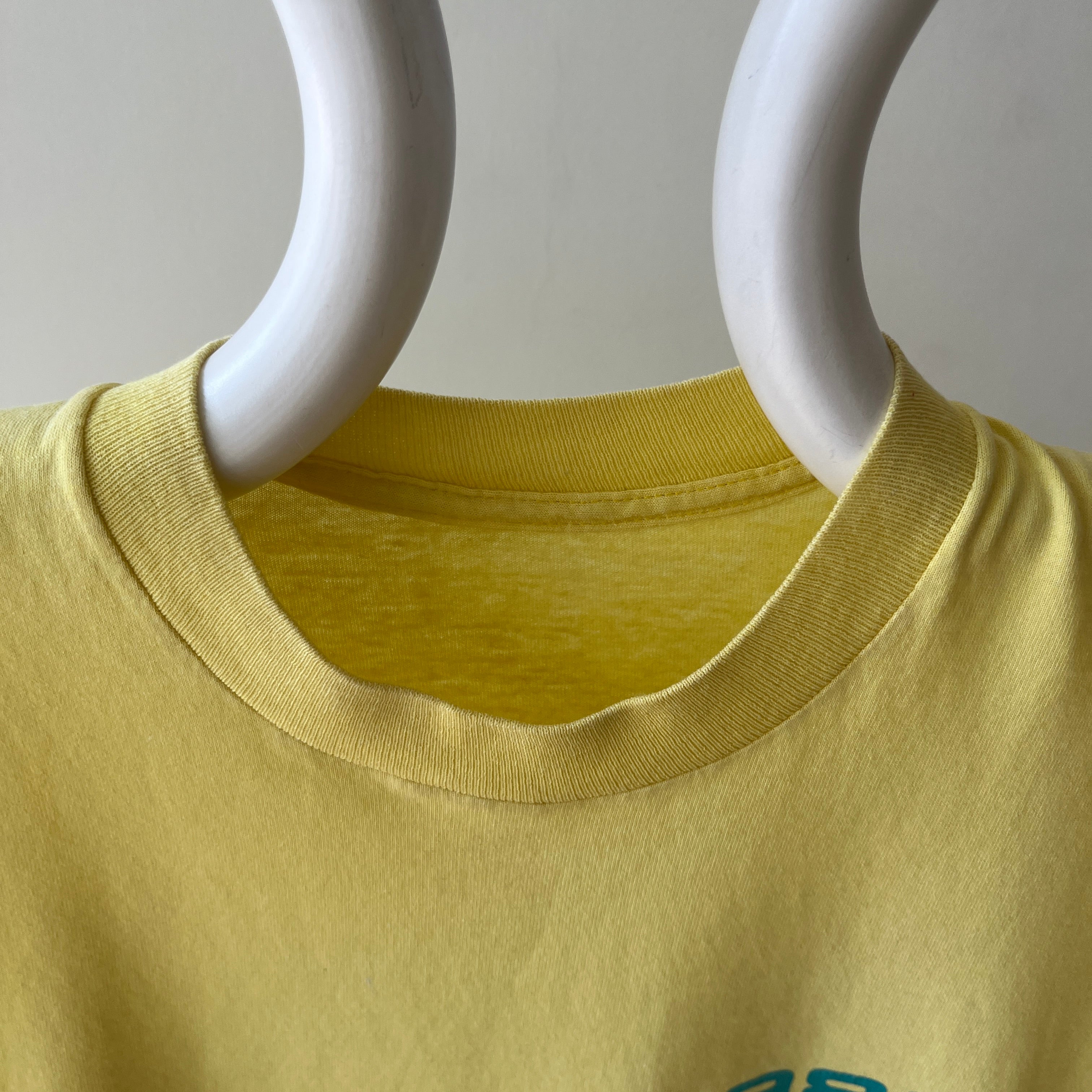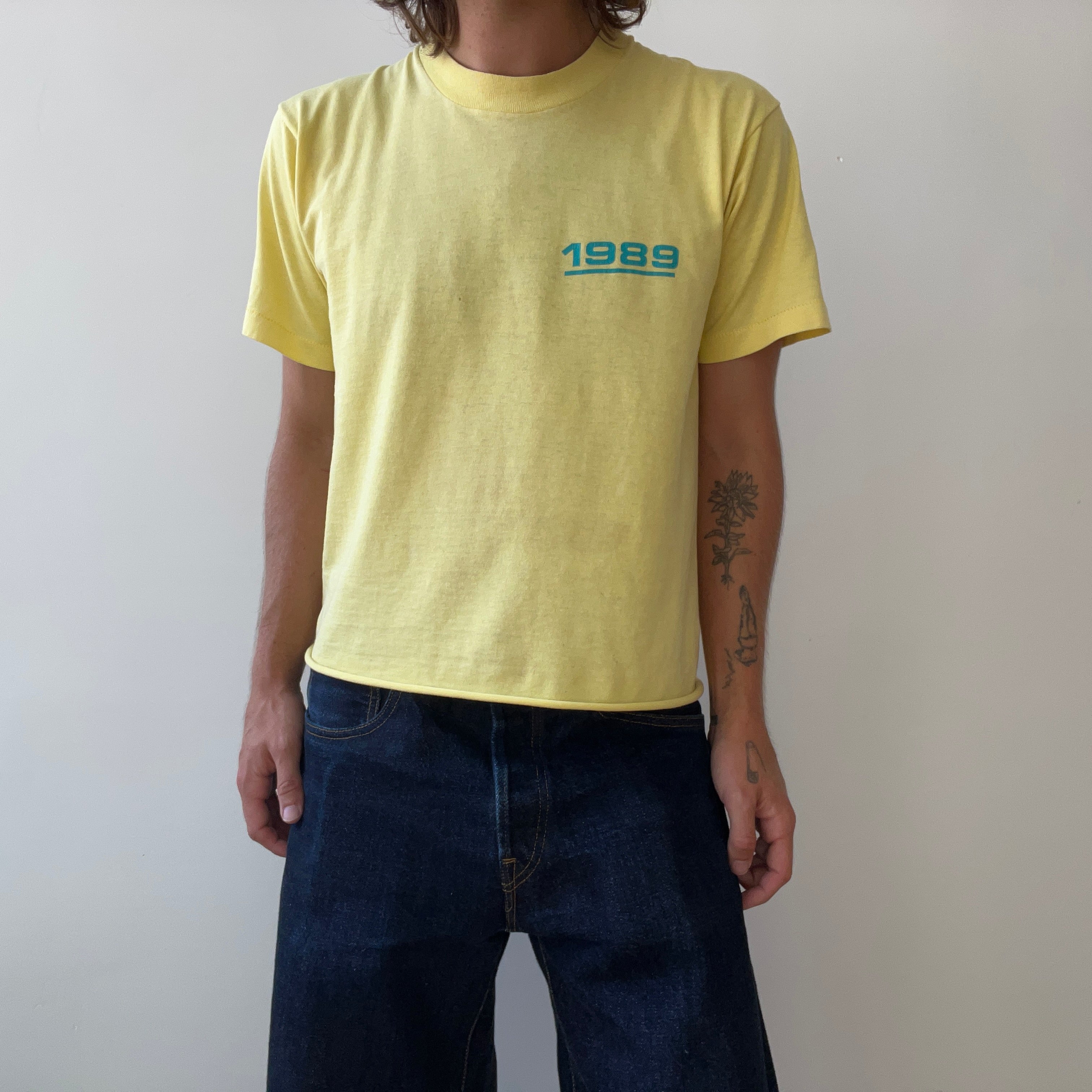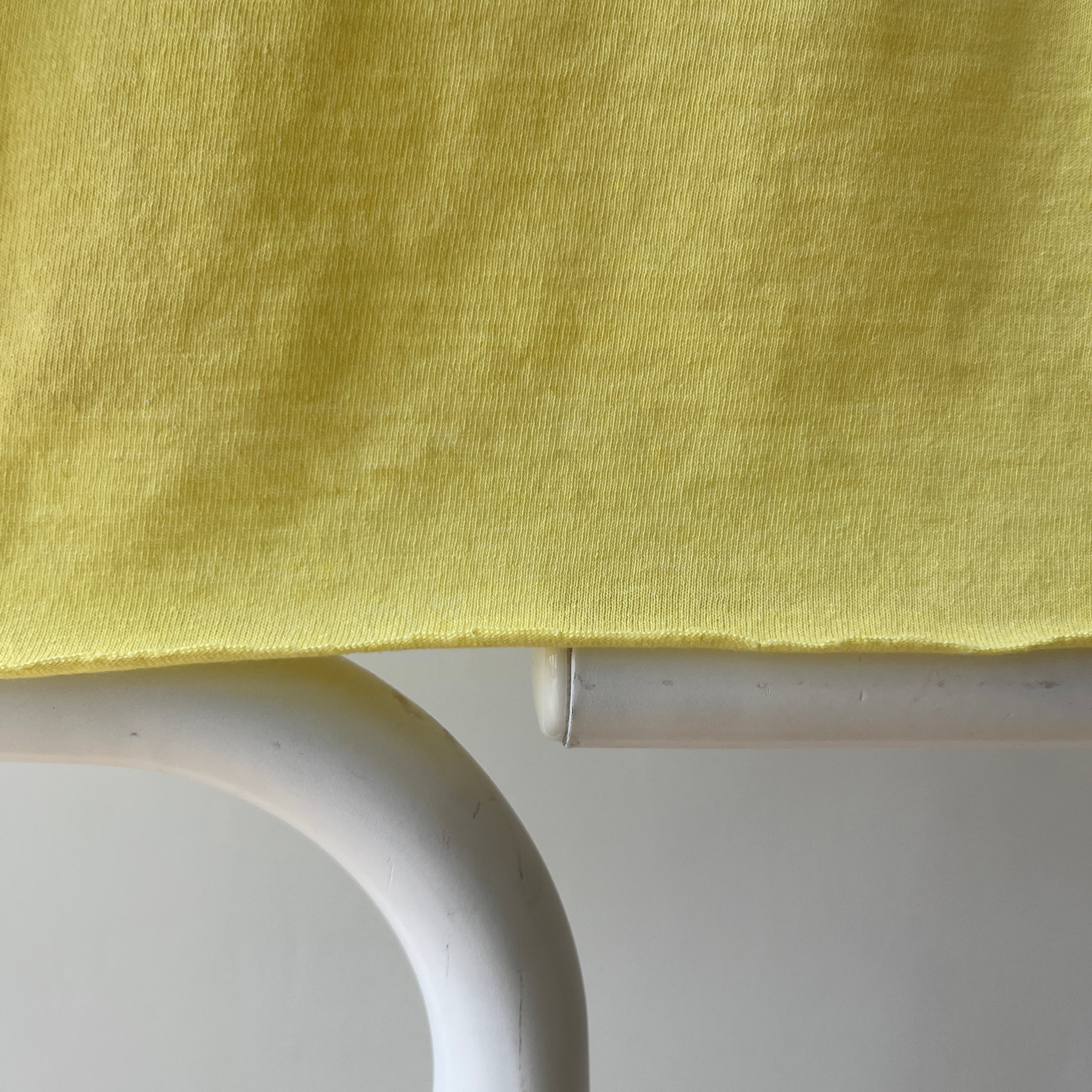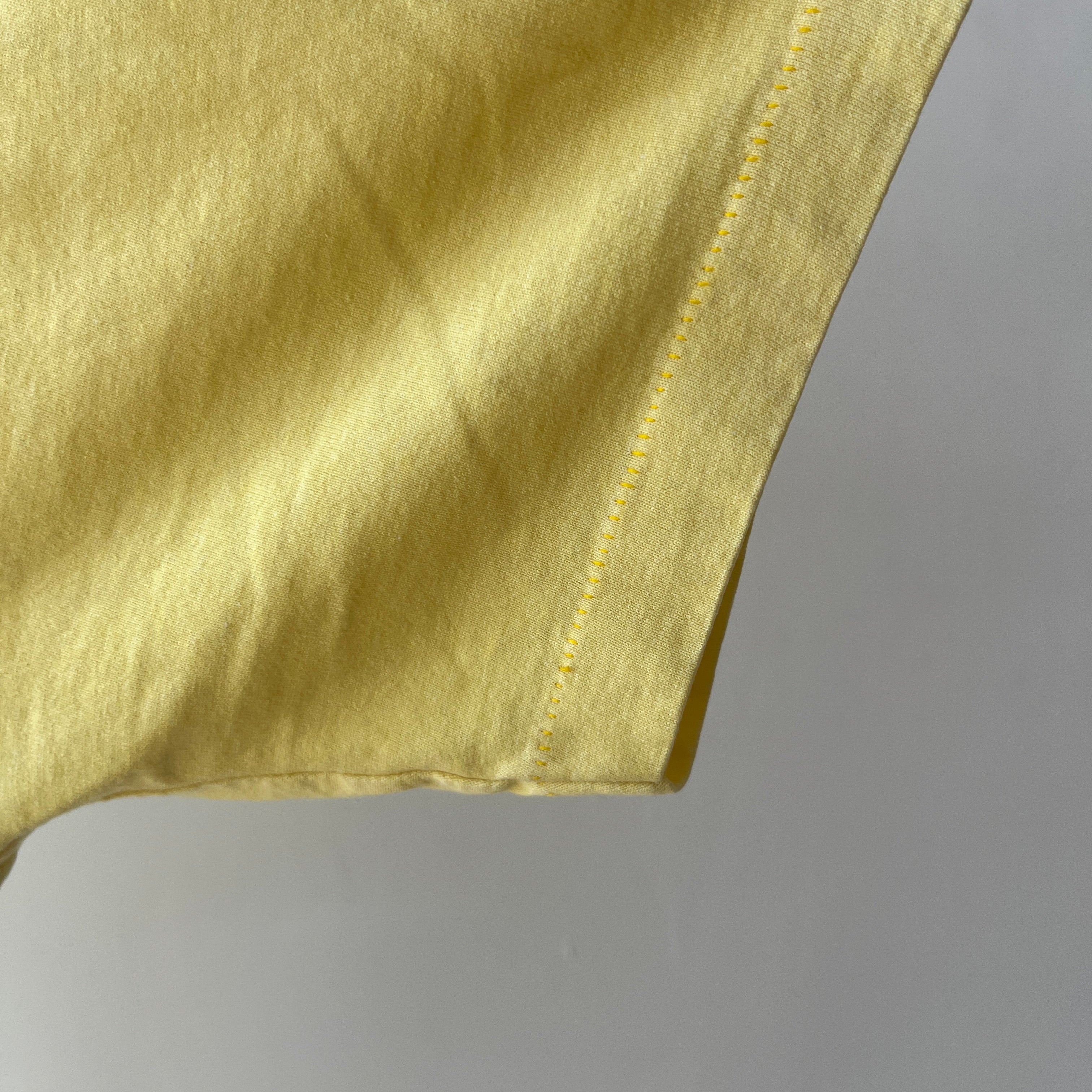 Stains are cool. But if I don’t have you convinced, that yellow jalopy hanging out on your new-old (now off) white tee could have been a mustard mishap from catching a fly ball at the World Series in ’83 with a hotdog in hand. Or from changing a flat tire on a college road trip to meet your future ex in-laws? Stains have stories even when they’re in the pits! Sweating in your favorite Hanes crewneck on your first middle school date can have a life long impact on a t-shirt.