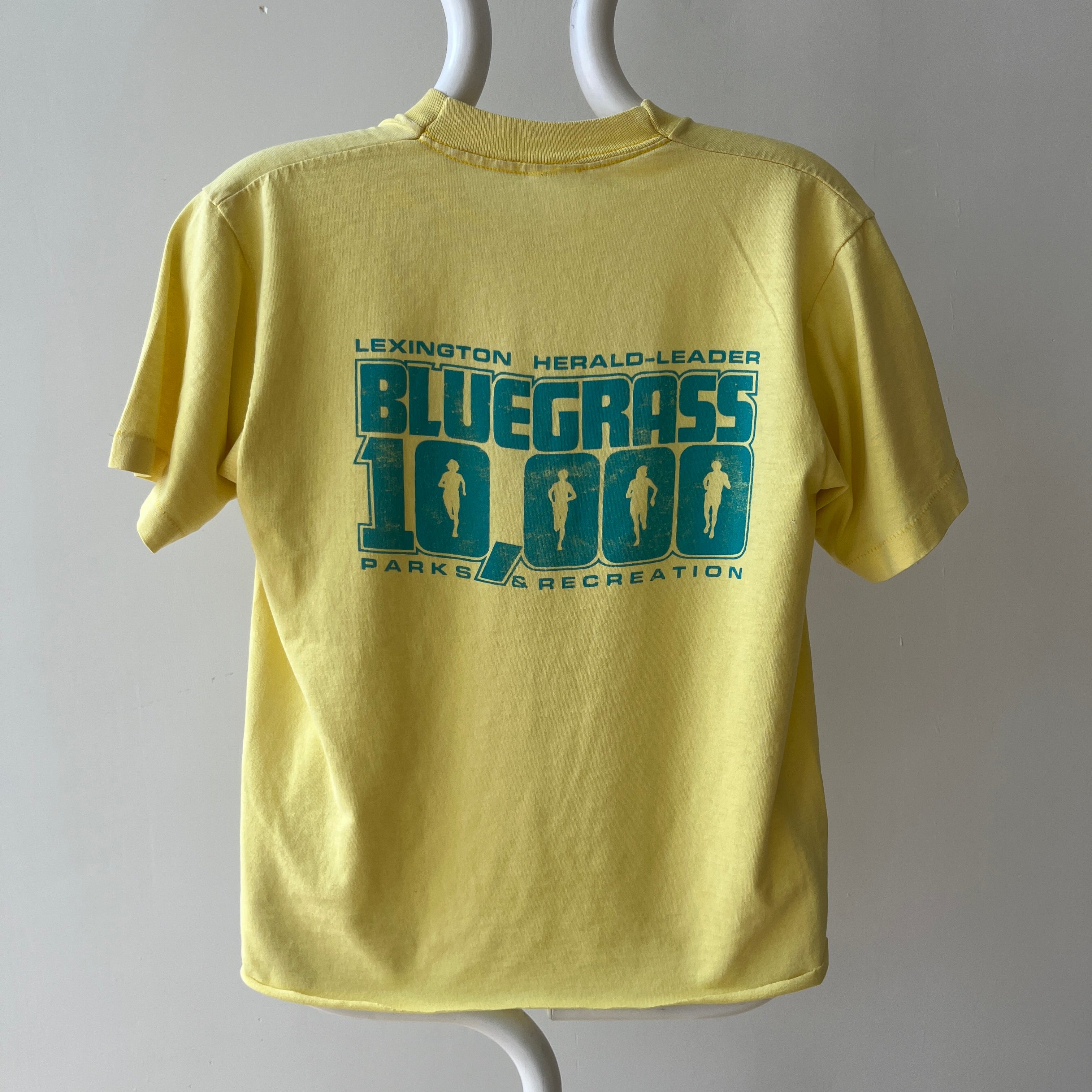 A lot of t-shirts back in the day were made from 50% cotton and 50% polyester. After decades of wear and tear they start to soften and get that “vintage t-shirt look”. 100% cotton shirts are generally a thicker feel and can appear more structured.