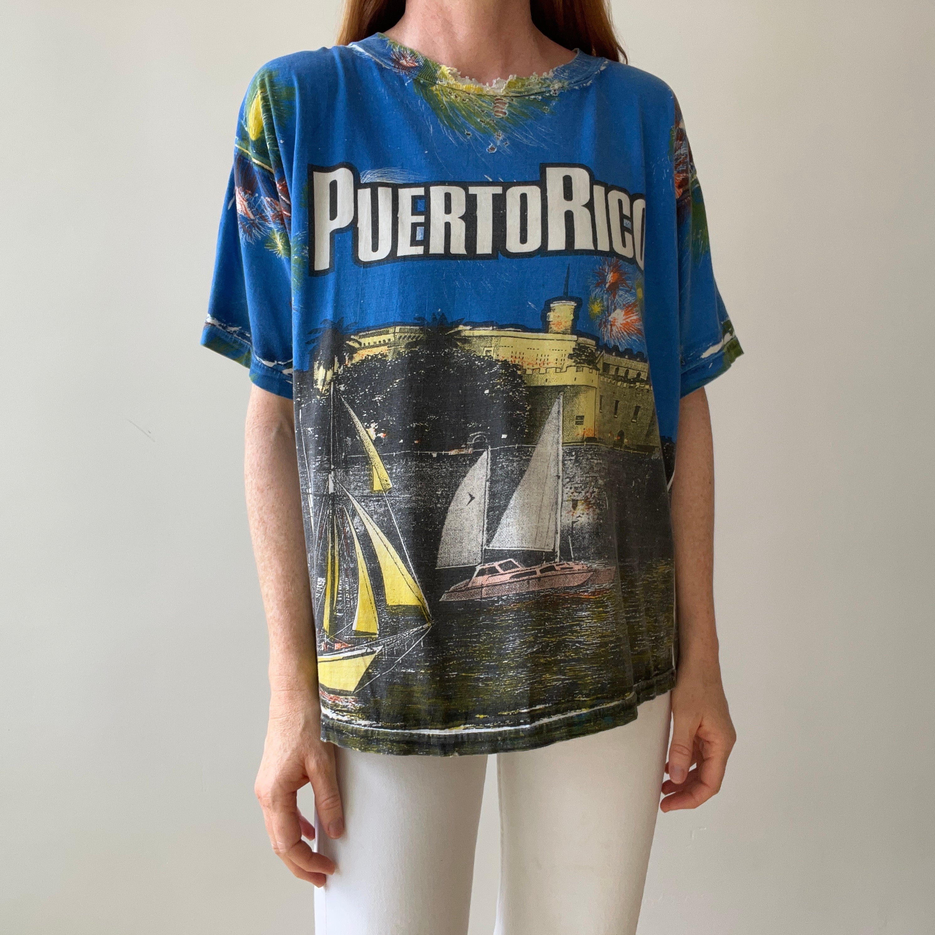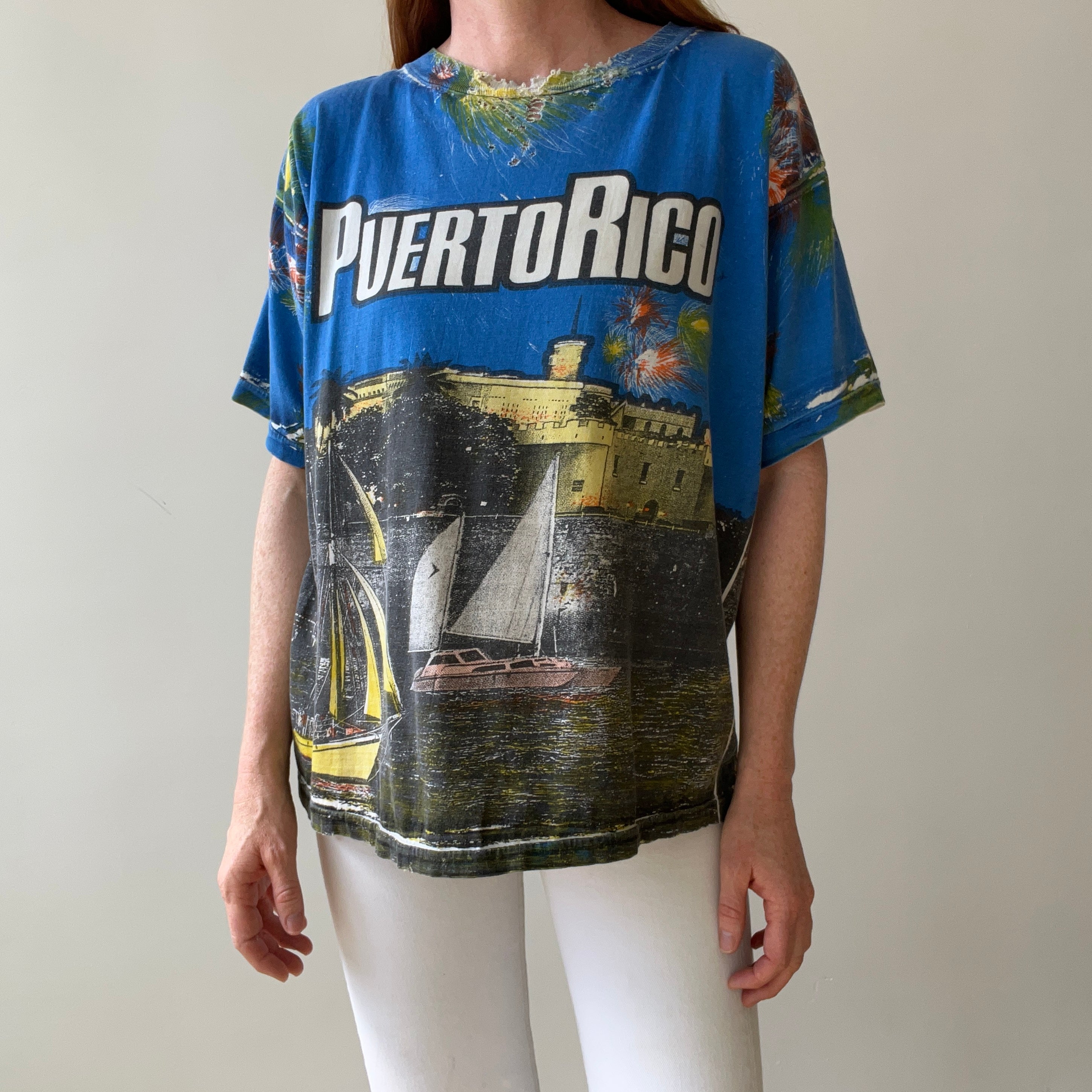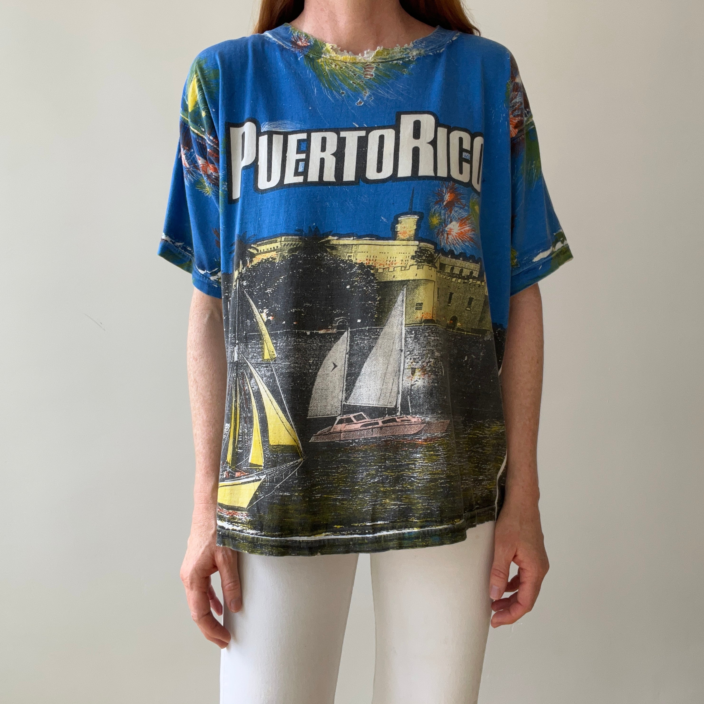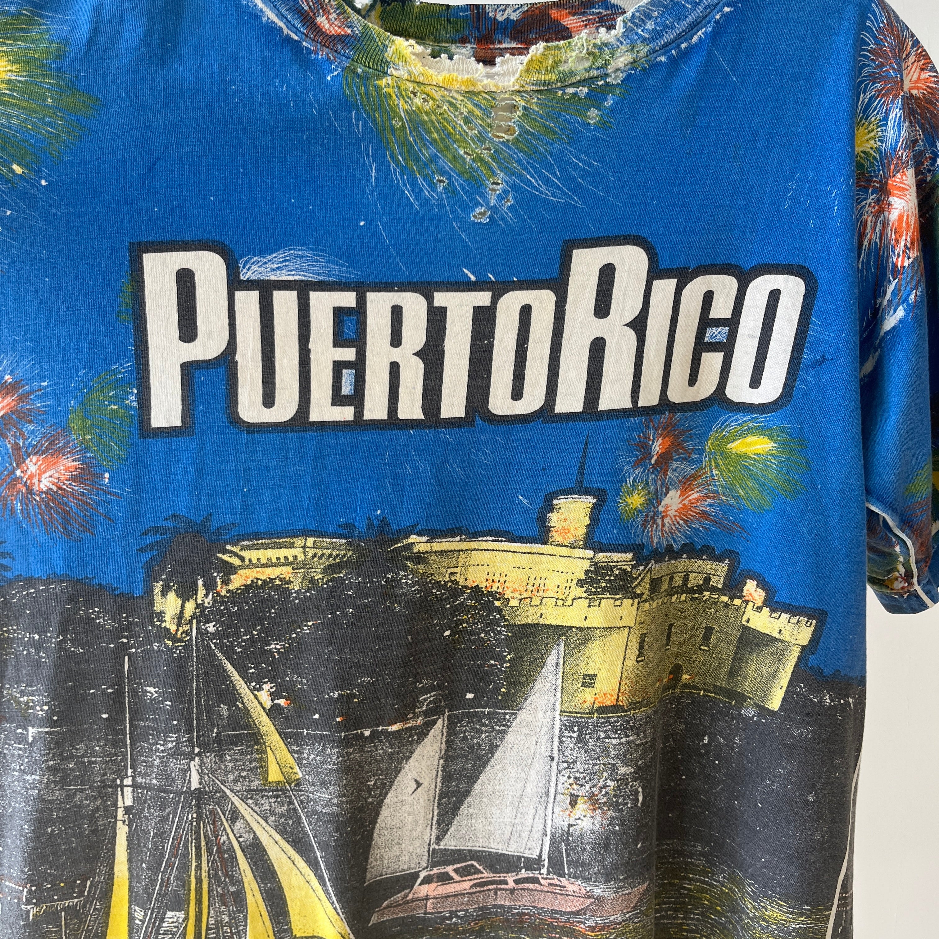 Notes: beautifully thrashed, tattered collar, holes, single stitch - rare photo like print. this is a lovely dumpster fire
