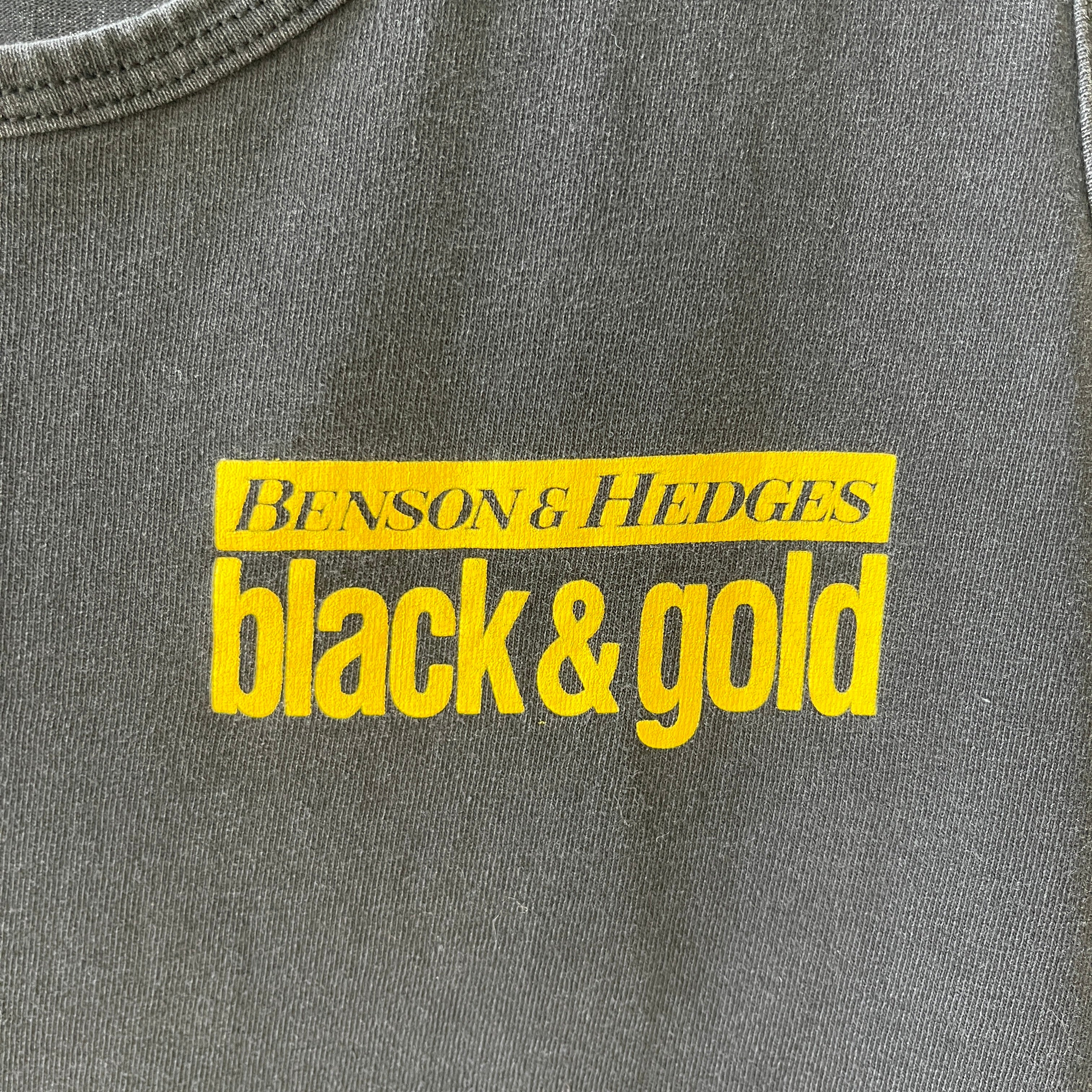 Notes: faded black, boxy fit, single stitch, combed cotton. originally a british cig brand.