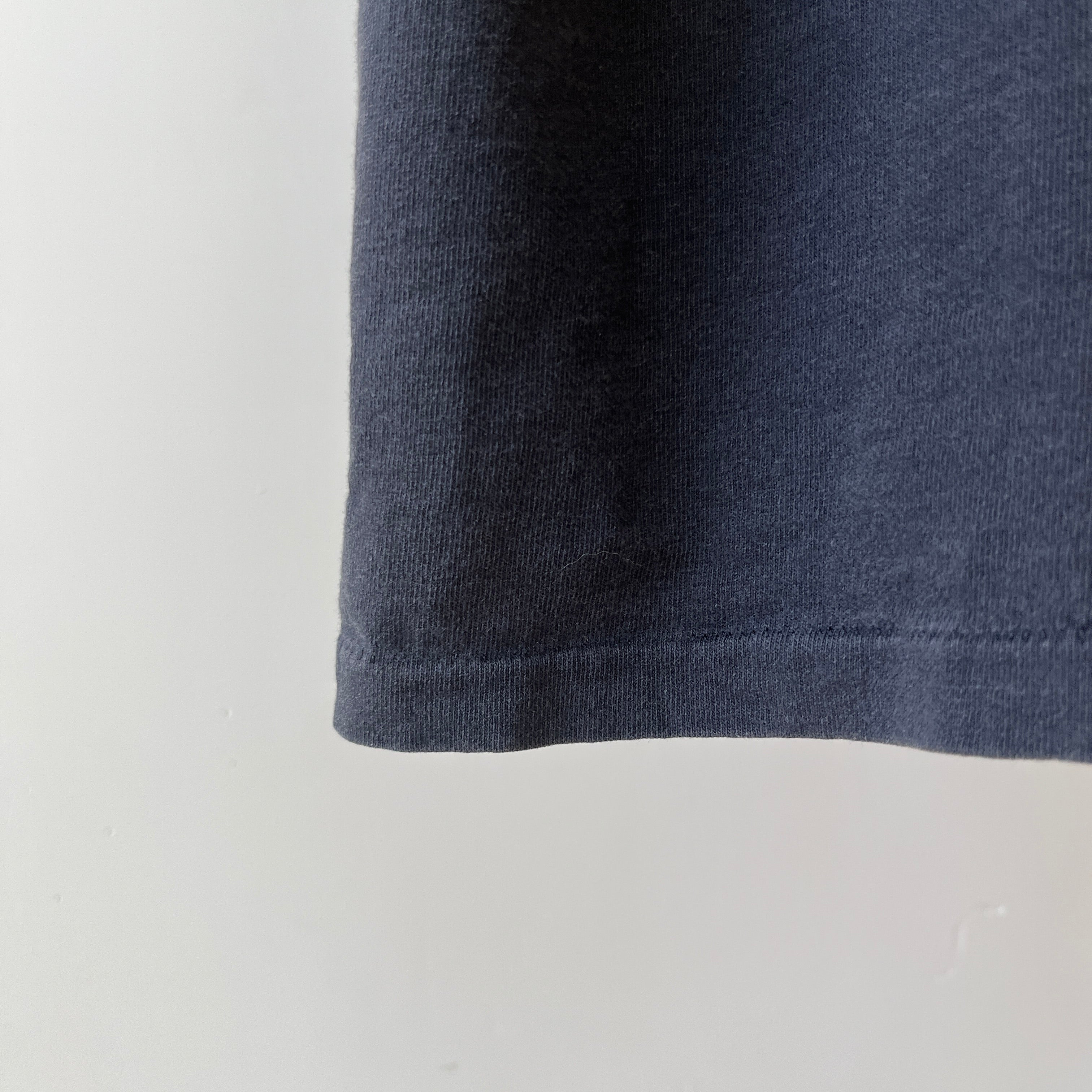 A lot of t-shirts back in the day were made from 50% cotton and 50% polyester. After decades of wear and tear they start to soften and get that “vintage t-shirt look”. 100% cotton shirts are generally a thicker feel and can appear more structured.