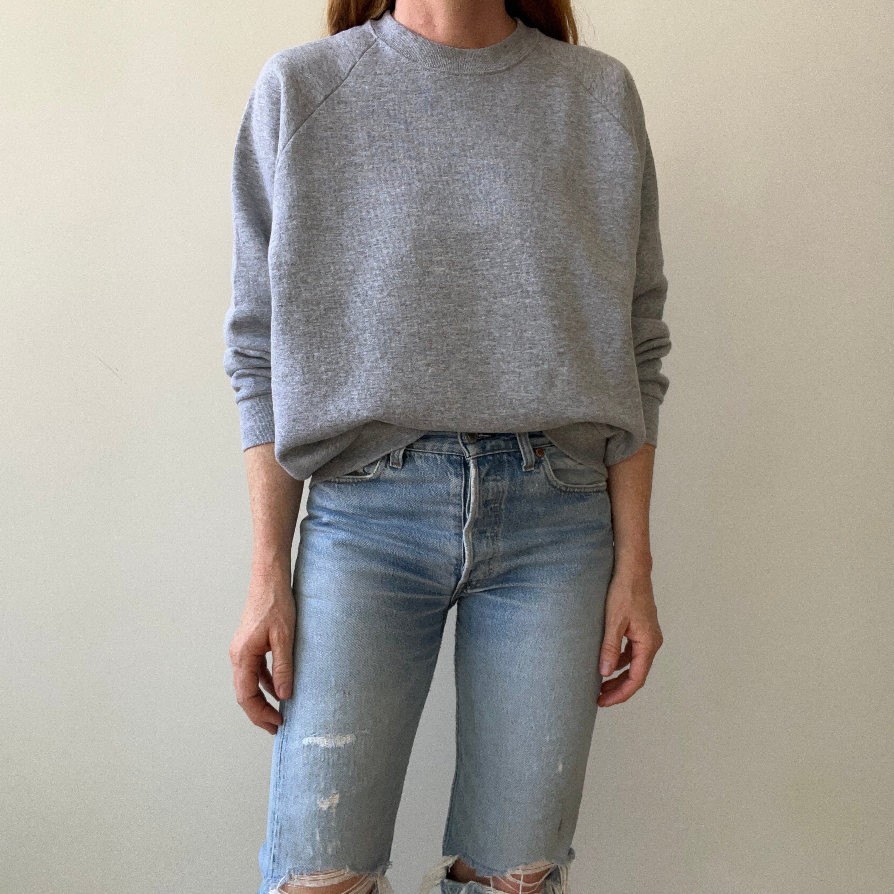Notes: light wear, amazingly boxy fit, soft 50/50 blend, raglan sleeve. don't make me keep this :)