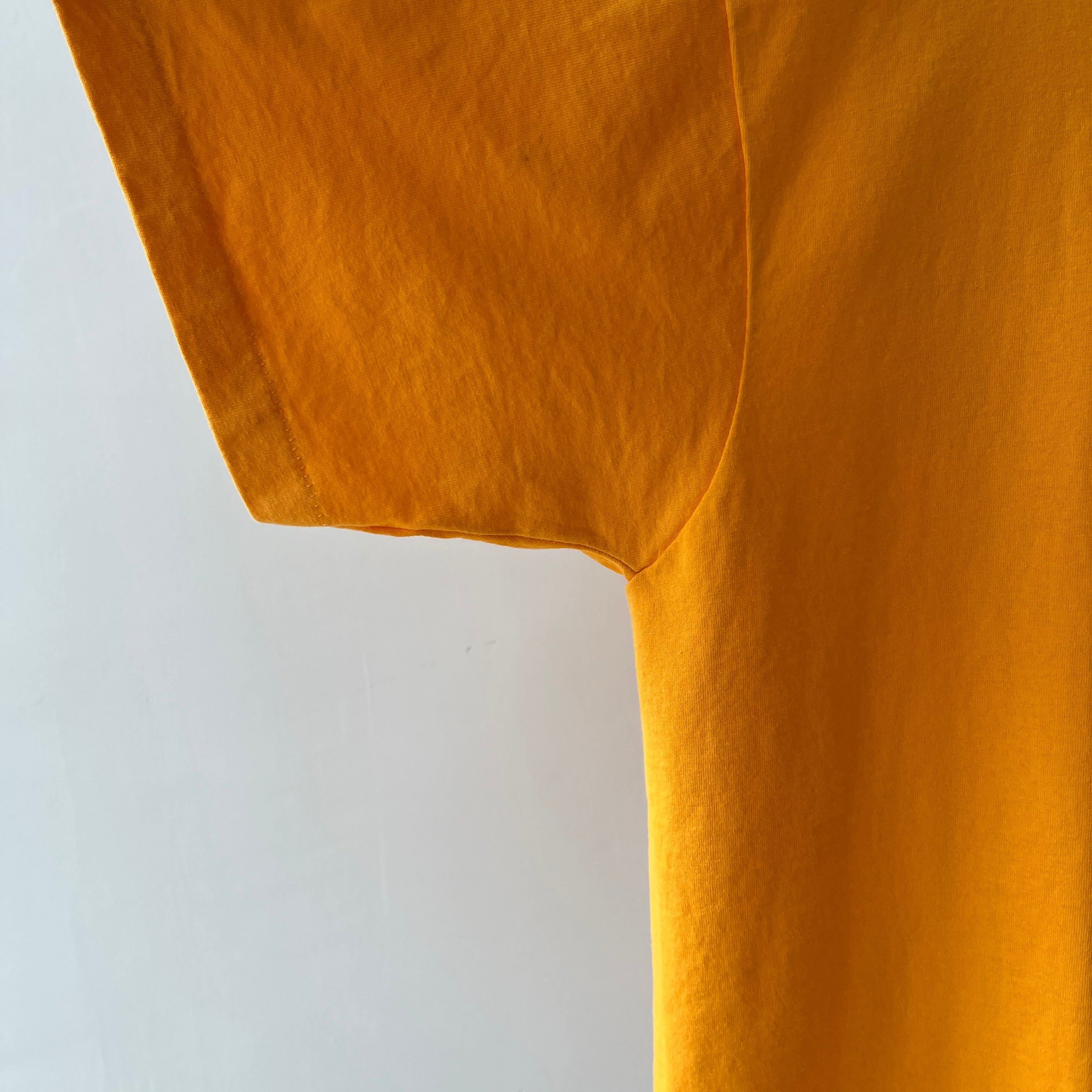Stains are cool. But if I don’t have you convinced, that yellow jalopy hanging out on your new-old (now off) white tee could have been a mustard mishap from catching a fly ball at the World Series in ’83 with a hotdog in hand. Or from changing a flat tire on a college road trip to meet your future ex in-laws? Stains have stories even when they’re in the pits! Sweating in your favorite Hanes crewneck on your first middle school date can have a life long impact on a t-shirt.