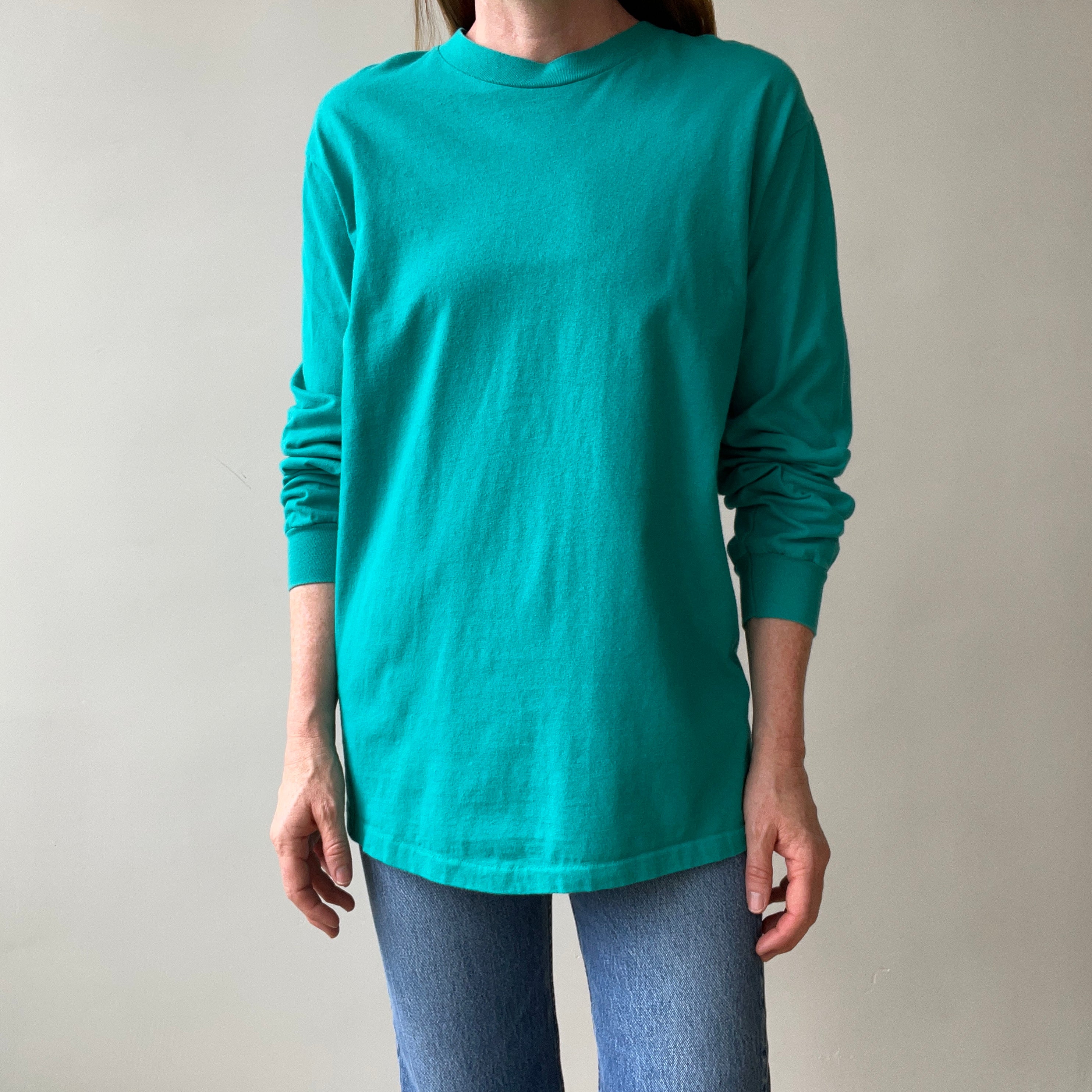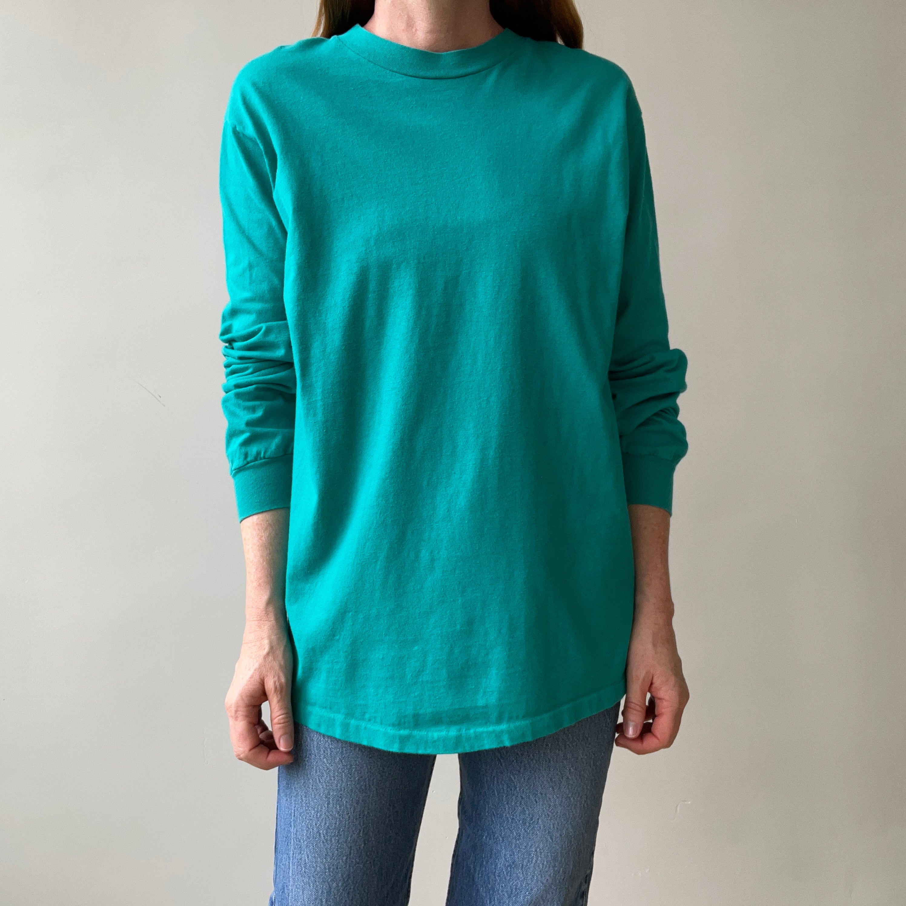 A lot of t-shirts back in the day were made from 50% cotton and 50% polyester. After decades of wear and tear they start to soften and get that “vintage t-shirt look”. 100% cotton shirts are generally a thicker feel and can appear more structured.