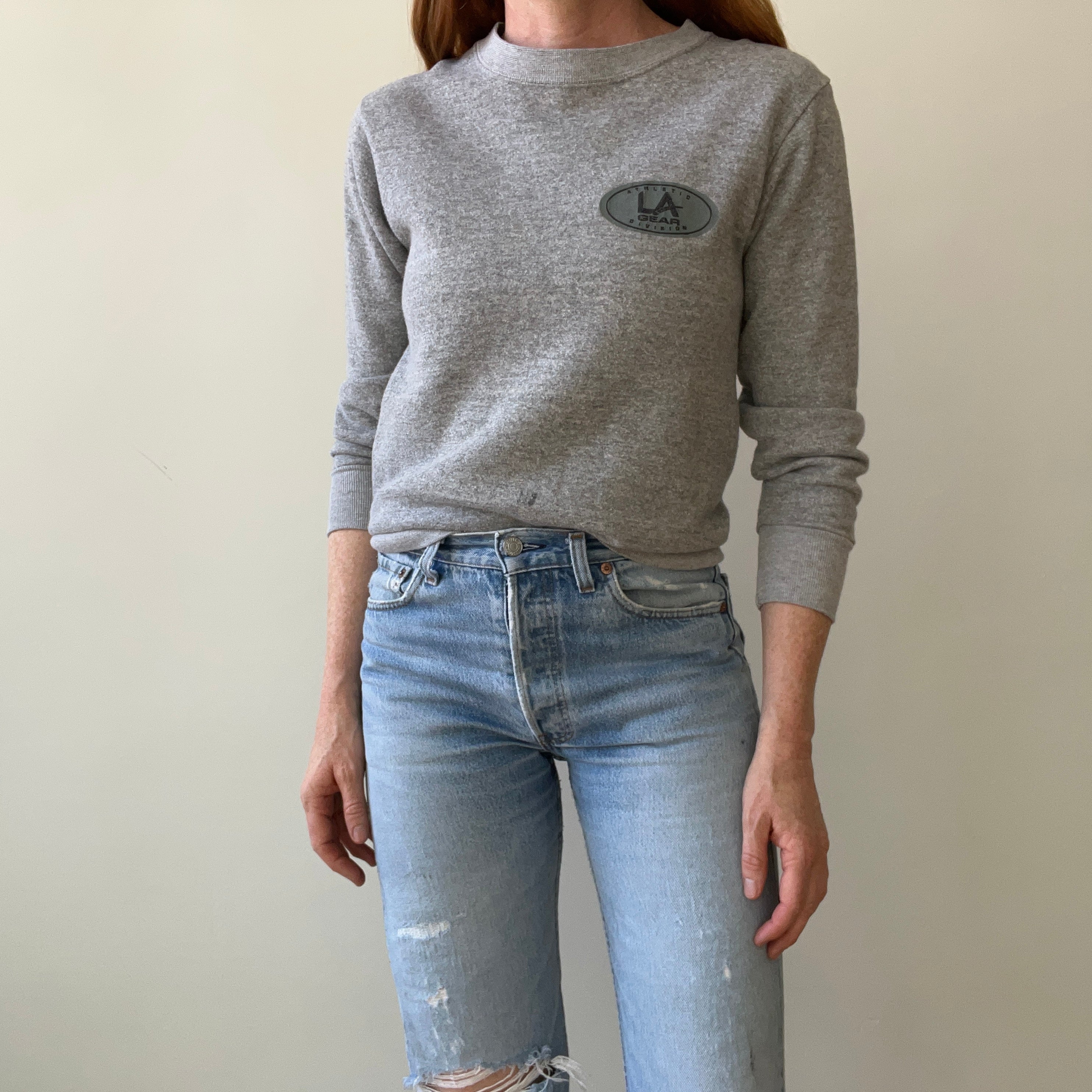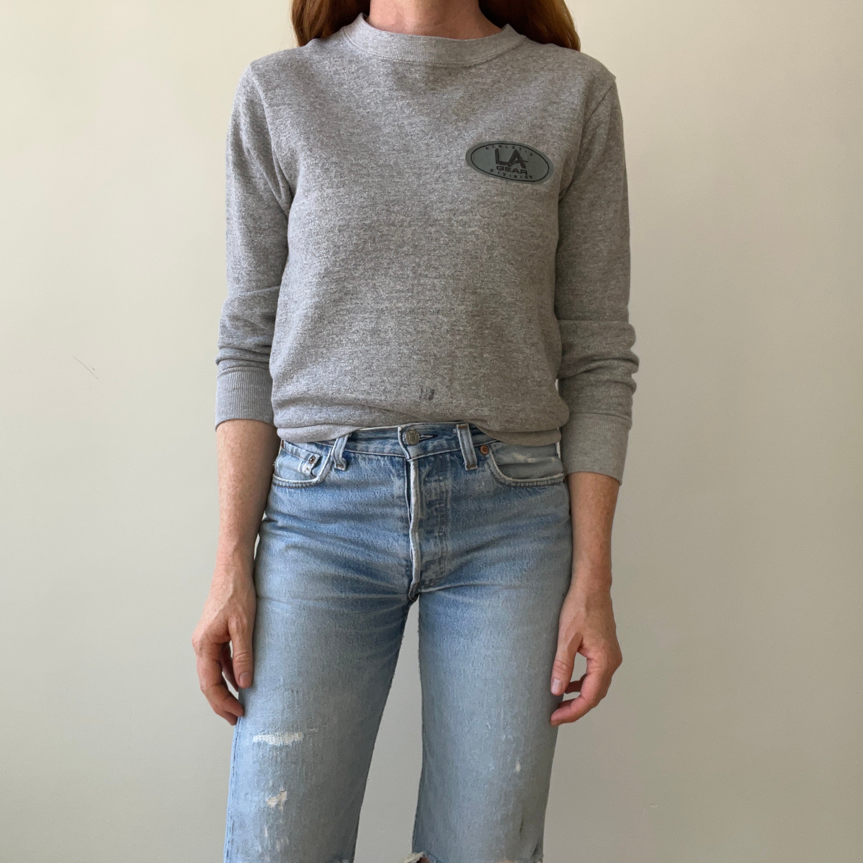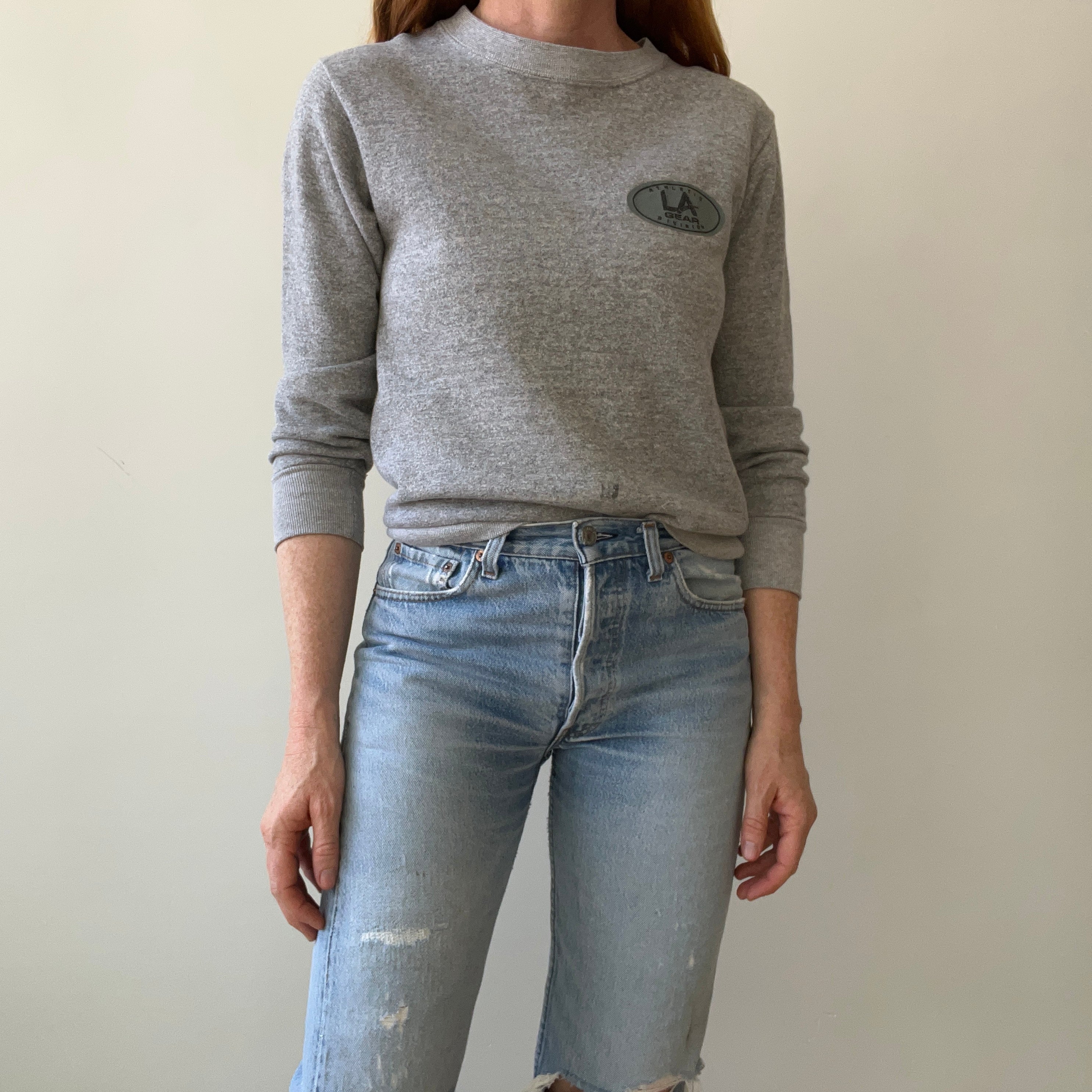 Notes: lightly worn, slim fit in the body and arms, soft, made in usa