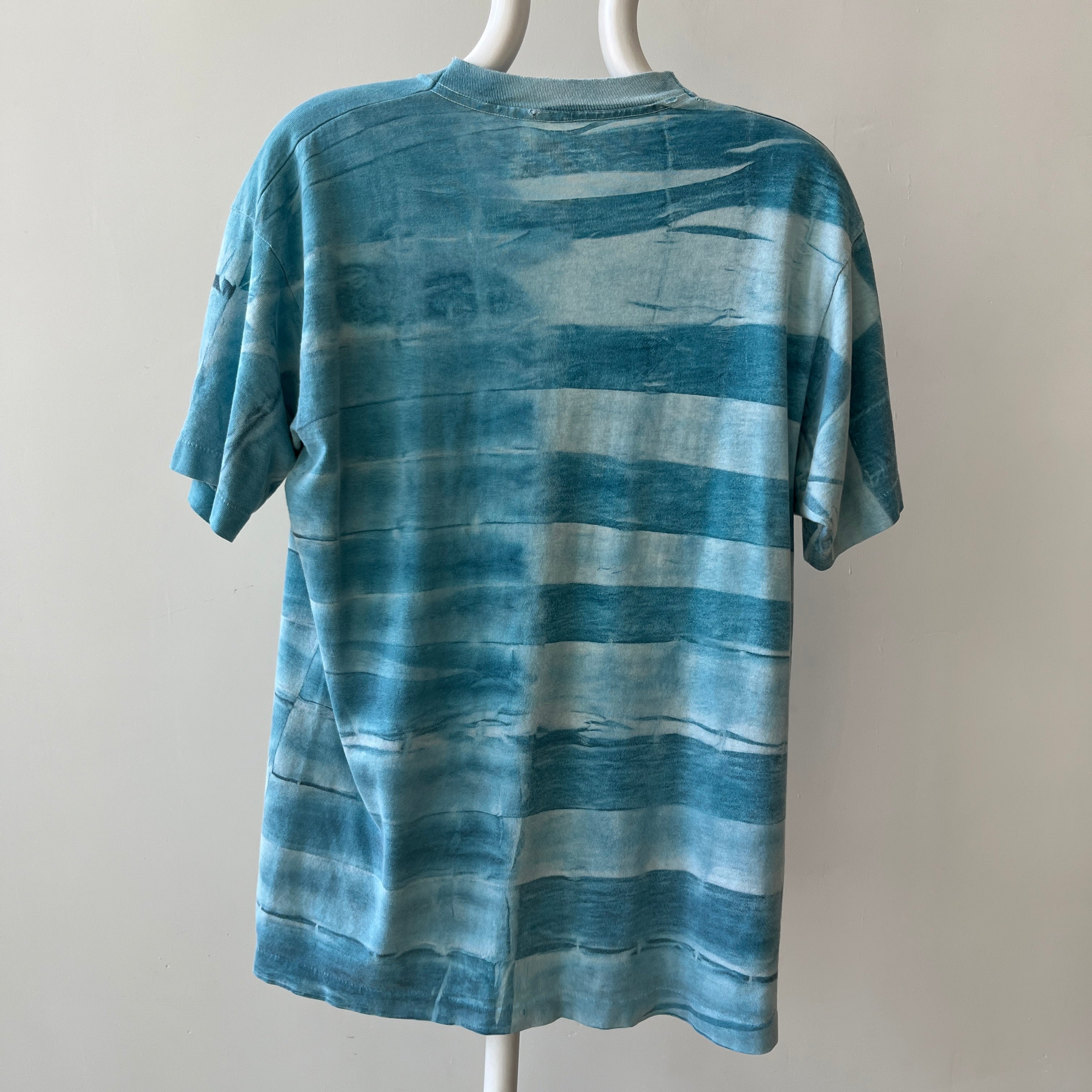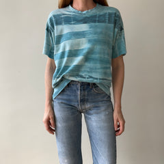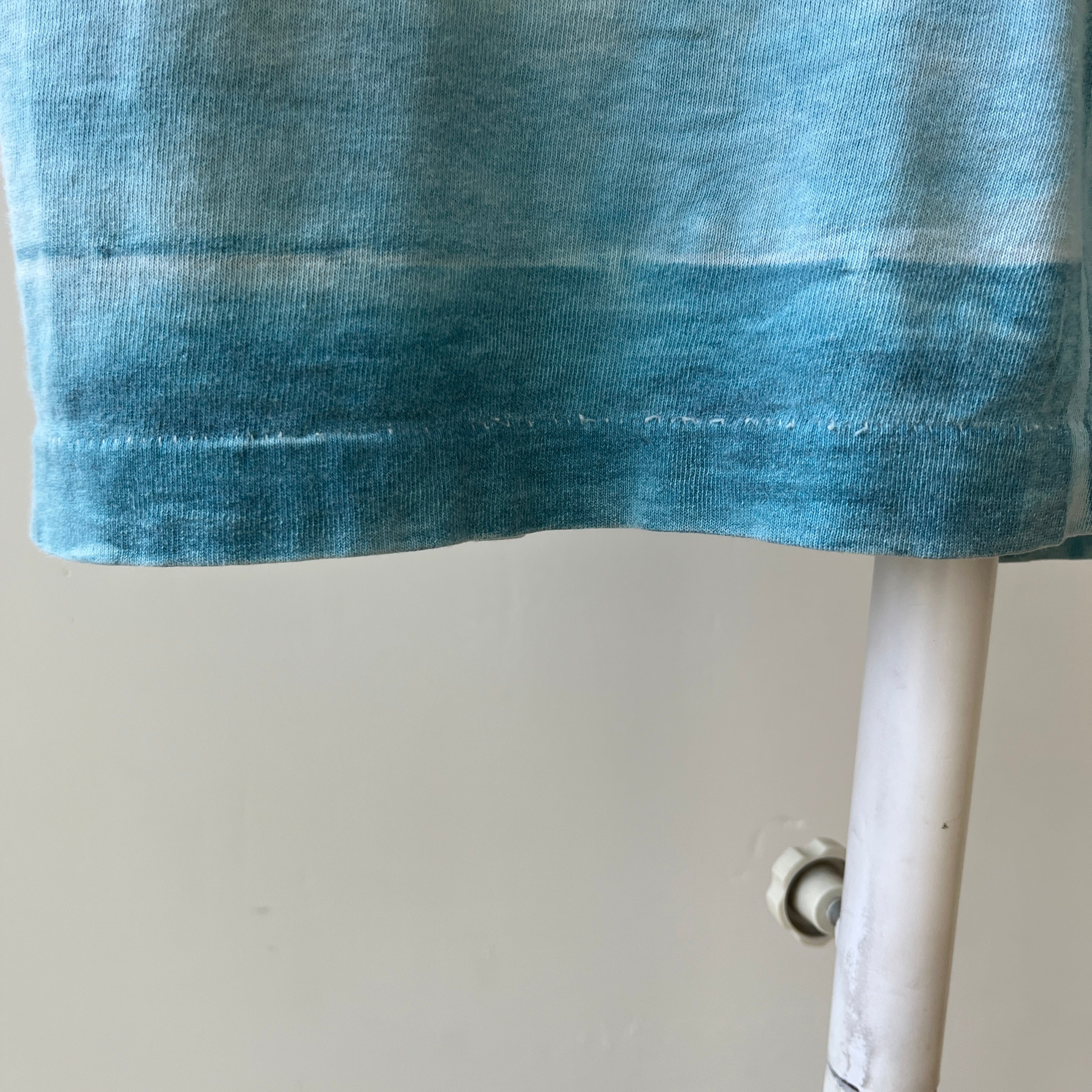 Stains are cool. But if I don’t have you convinced, that yellow jalopy hanging out on your new-old (now off) white tee could have been a mustard mishap from catching a fly ball at the World Series in ’83 with a hotdog in hand. Or from changing a flat tire on a college road trip to meet your future ex in-laws? Stains have stories even when they’re in the pits! Sweating in your favorite Hanes crewneck on your first middle school date can have a life long impact on a t-shirt.
