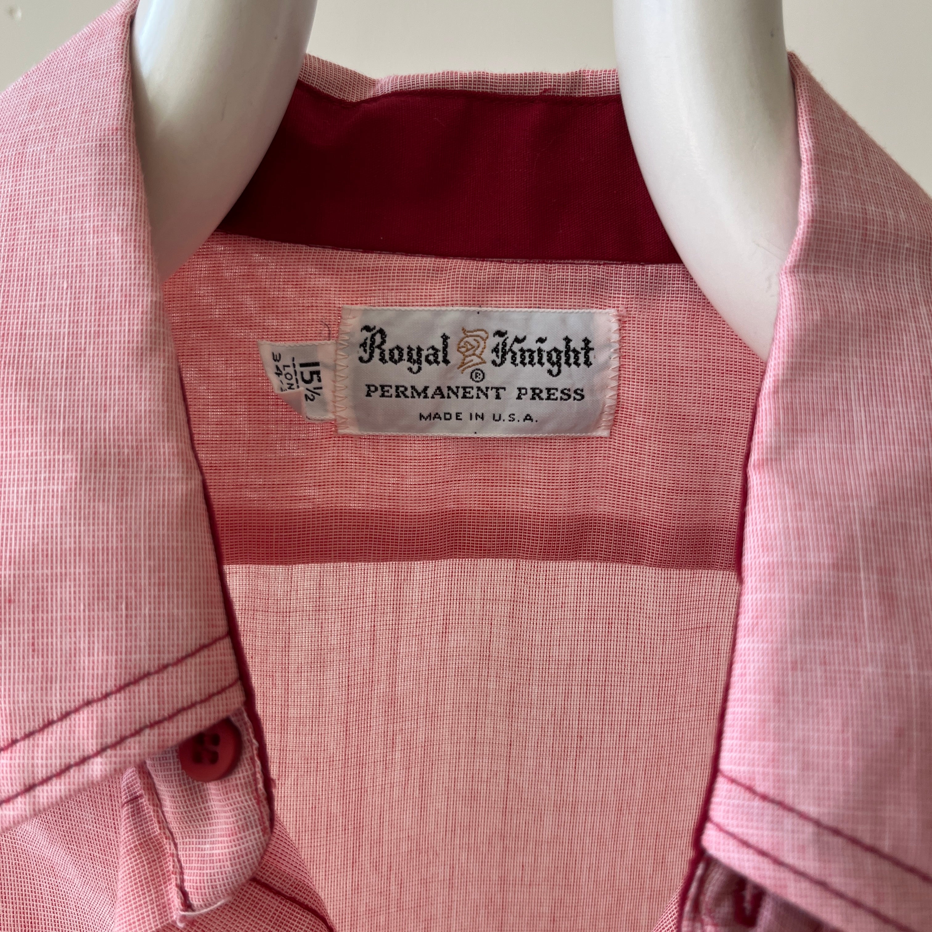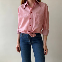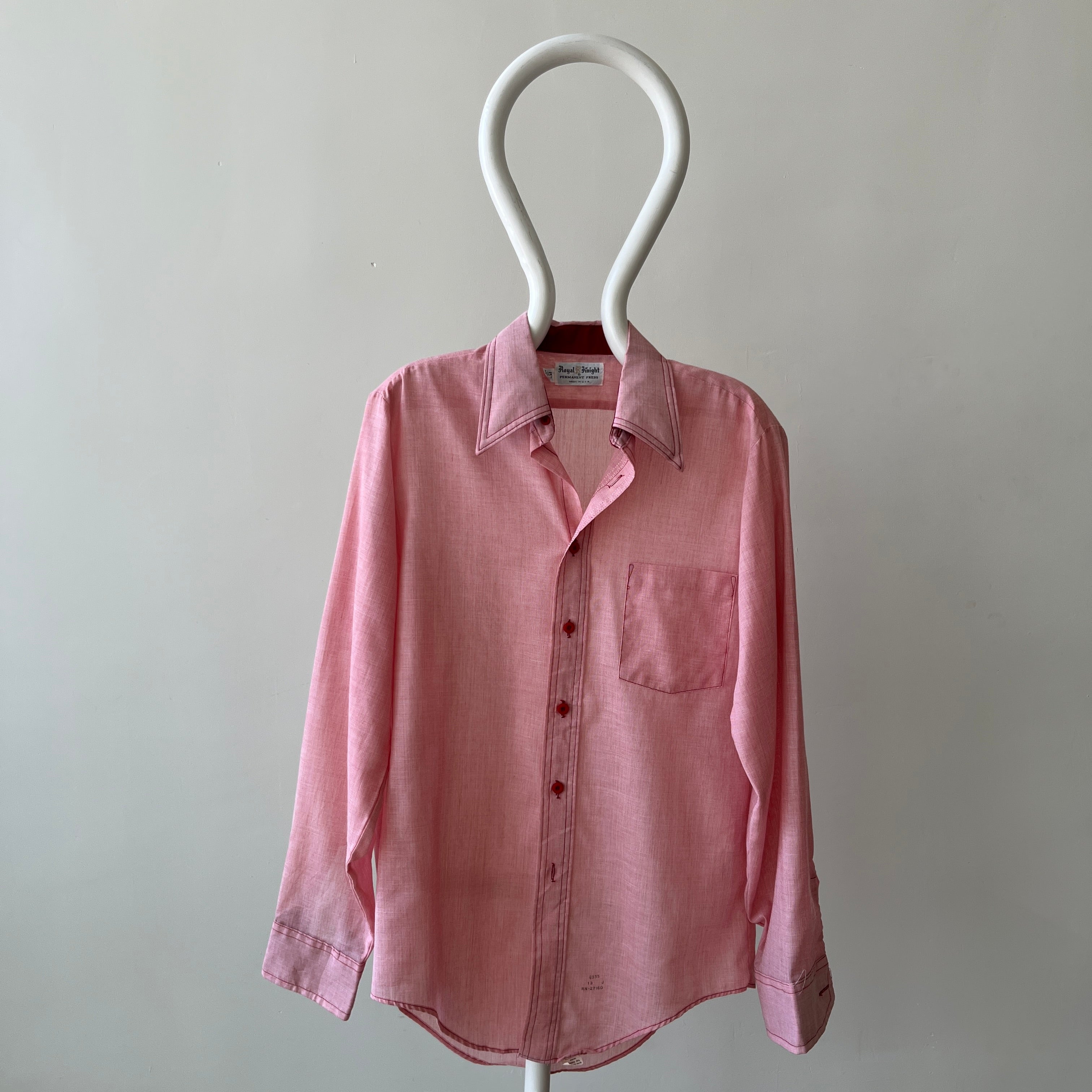 Notes: light wear, faded red color, cherry red buttons, made in usa - great 70s collar points. slightly sheer. this is a good one tied up or loose and easy breezy.