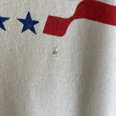 Stains are cool. But if I don’t have you convinced, that yellow jalopy hanging out on your new-old (now off) white tee could have been a mustard mishap from catching a fly ball at the World Series in ’83 with a hotdog in hand. Or from changing a flat tire on a college road trip to meet your future ex in-laws? Stains have stories even when they’re in the pits! Sweating in your favorite Hanes crewneck on your first middle school date can have a life long impact on a t-shirt.