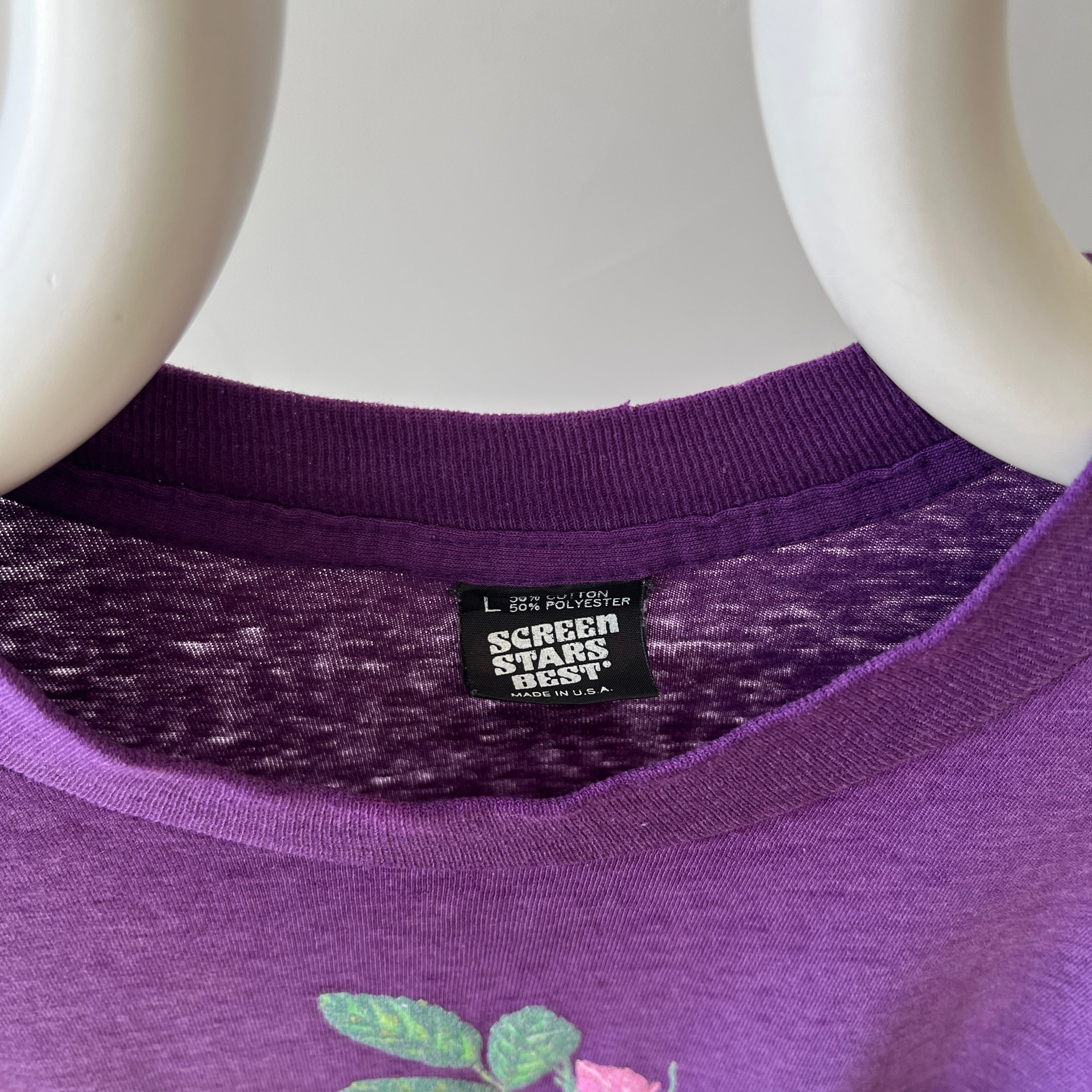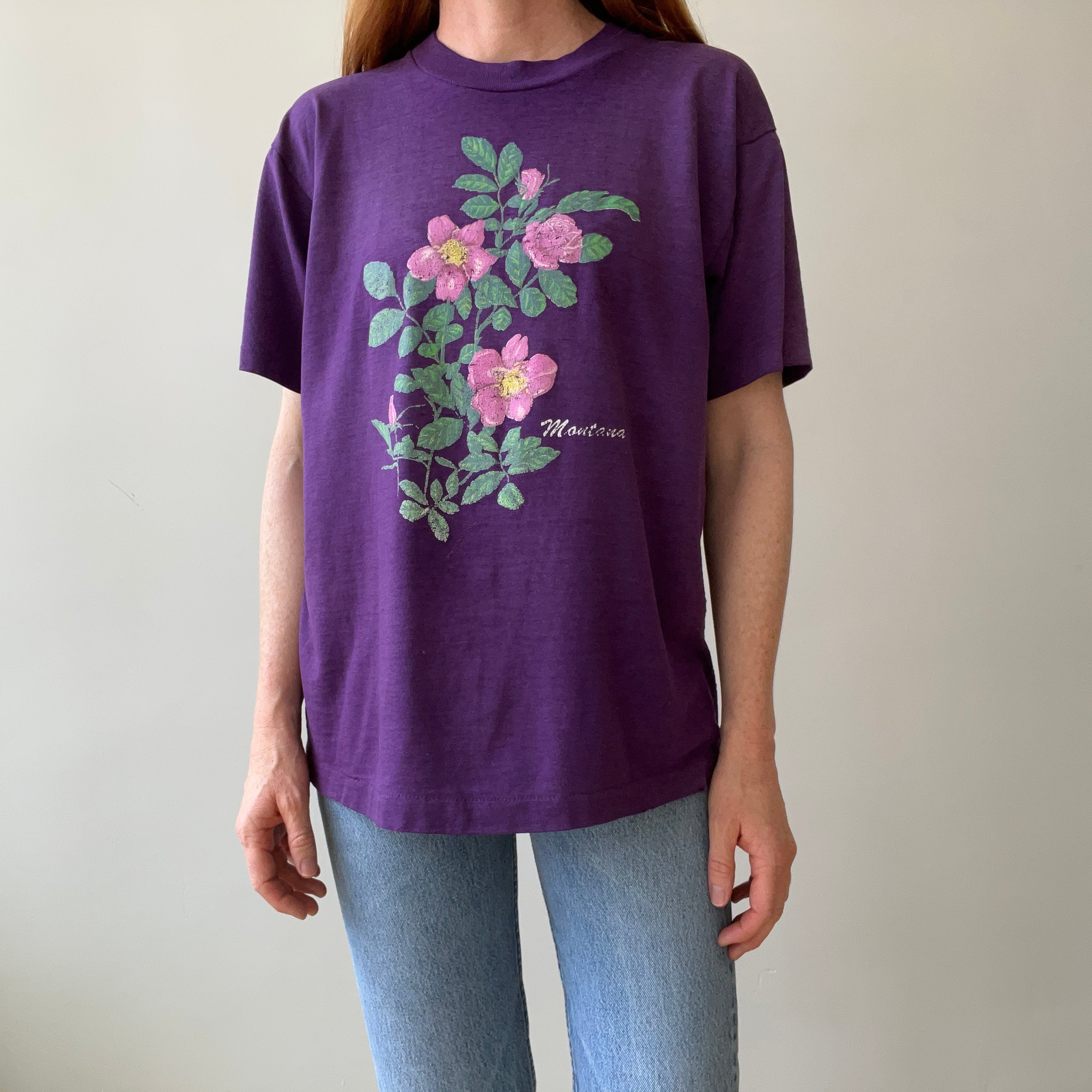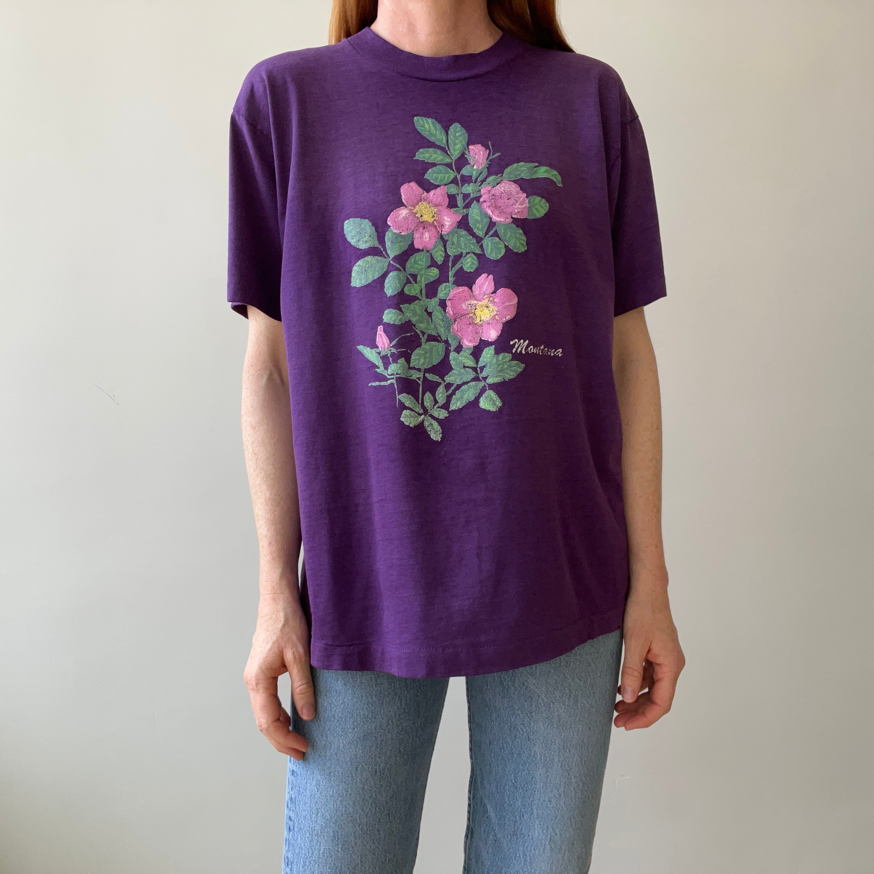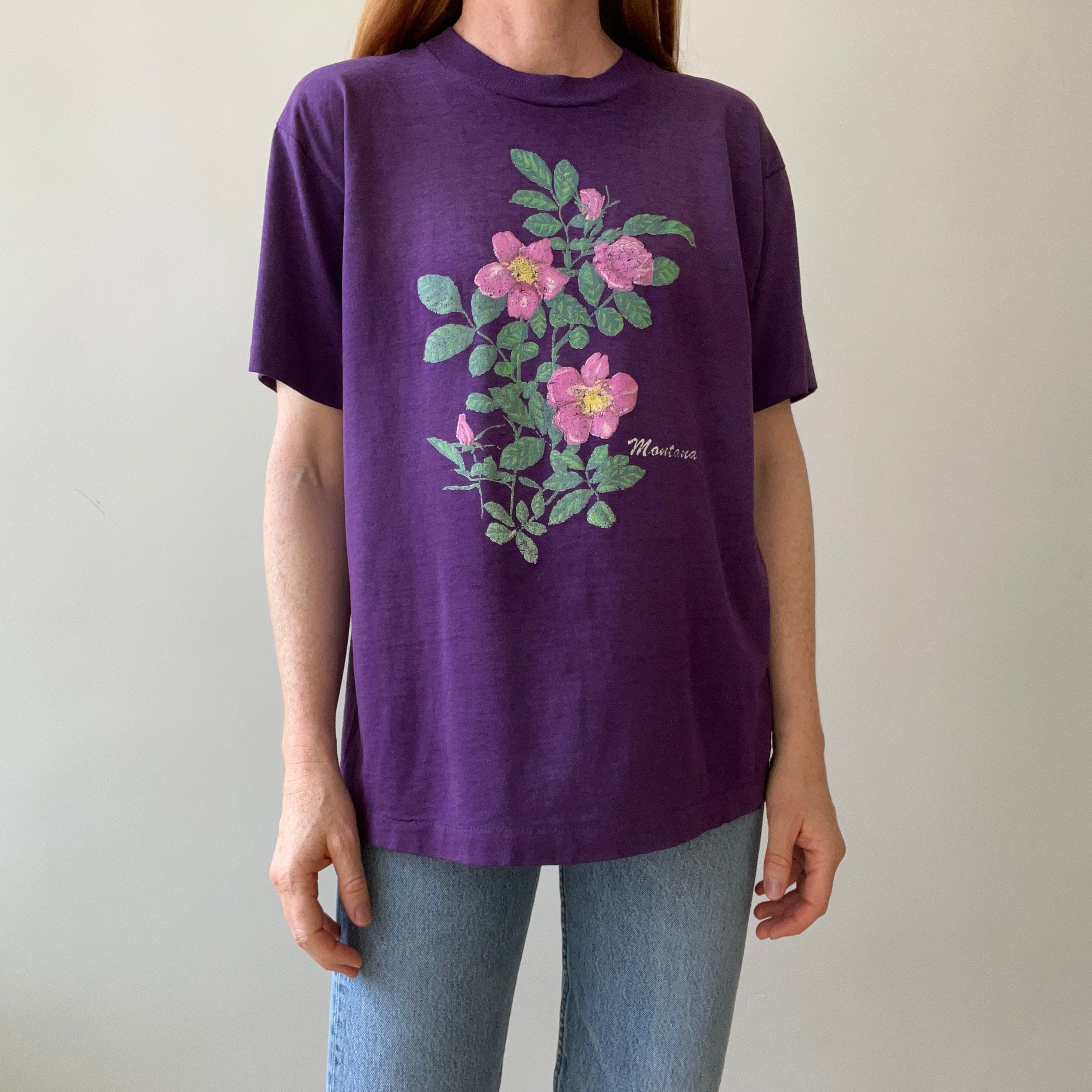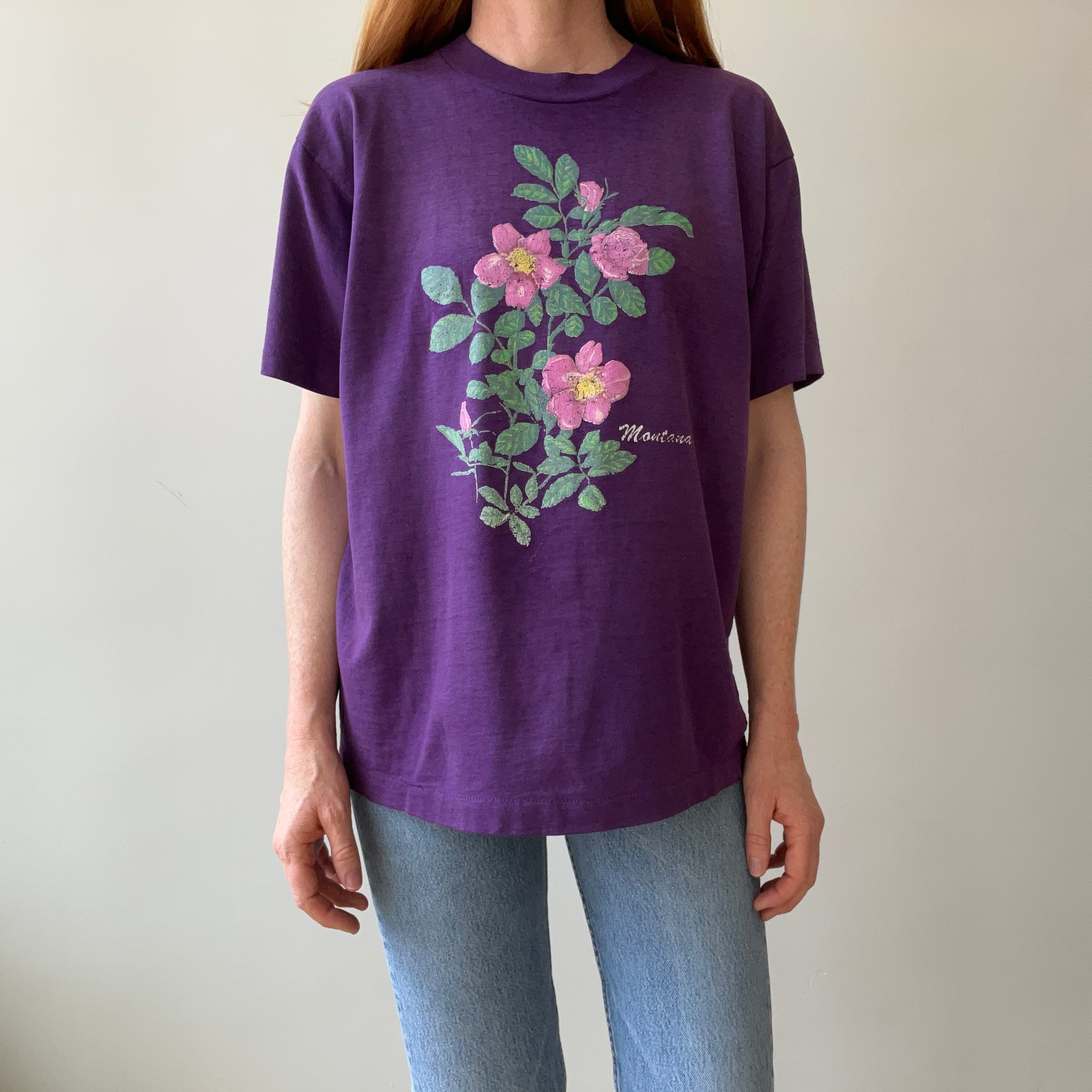 Notes: stains, wear on collar, ultra faded, paper thin, single stitch, made in usa - here, these flowers are for you :)