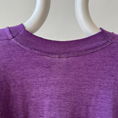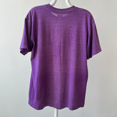A lot of t-shirts back in the day were made from 50% cotton and 50% polyester. After decades of wear and tear they start to soften and get that “vintage t-shirt look”. 100% cotton shirts are generally a thicker feel and can appear more structured.