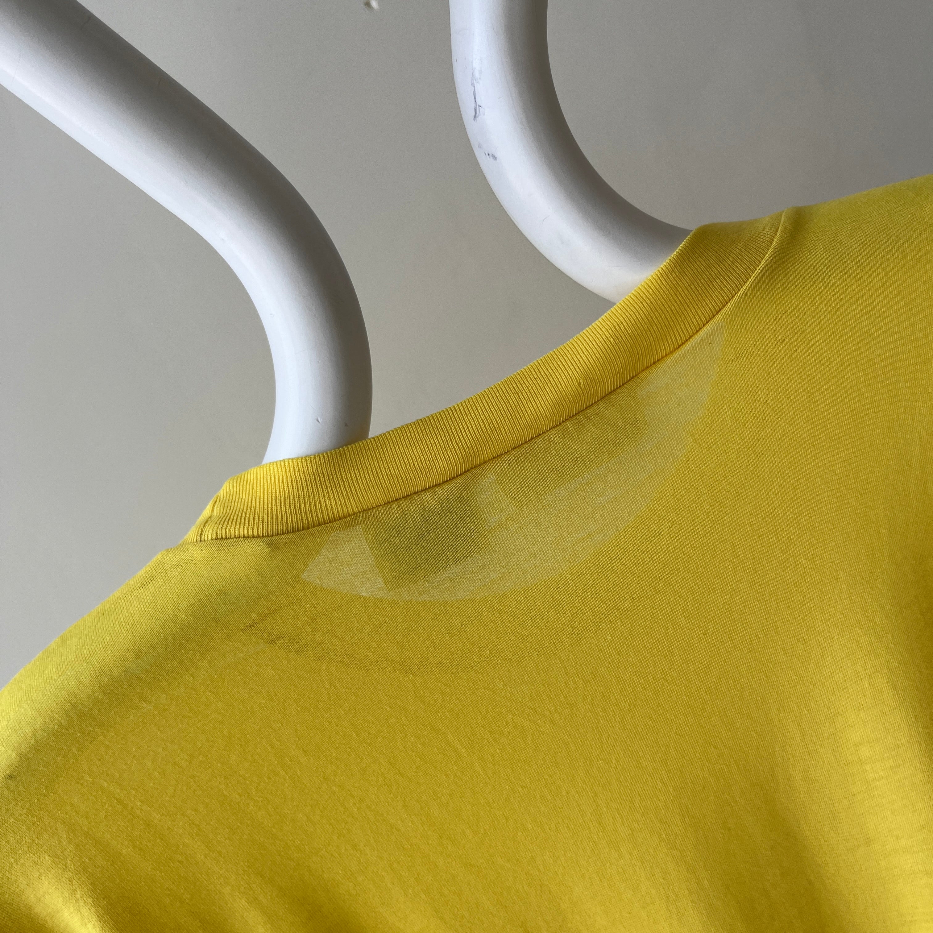 1980s Sunshine Yellow Cotton Knit Slouchy Pocket T-Shirt