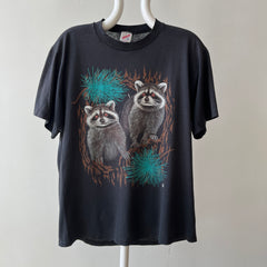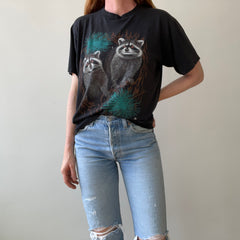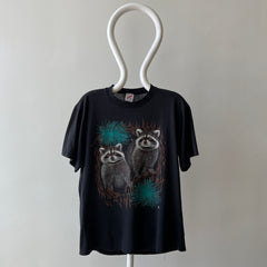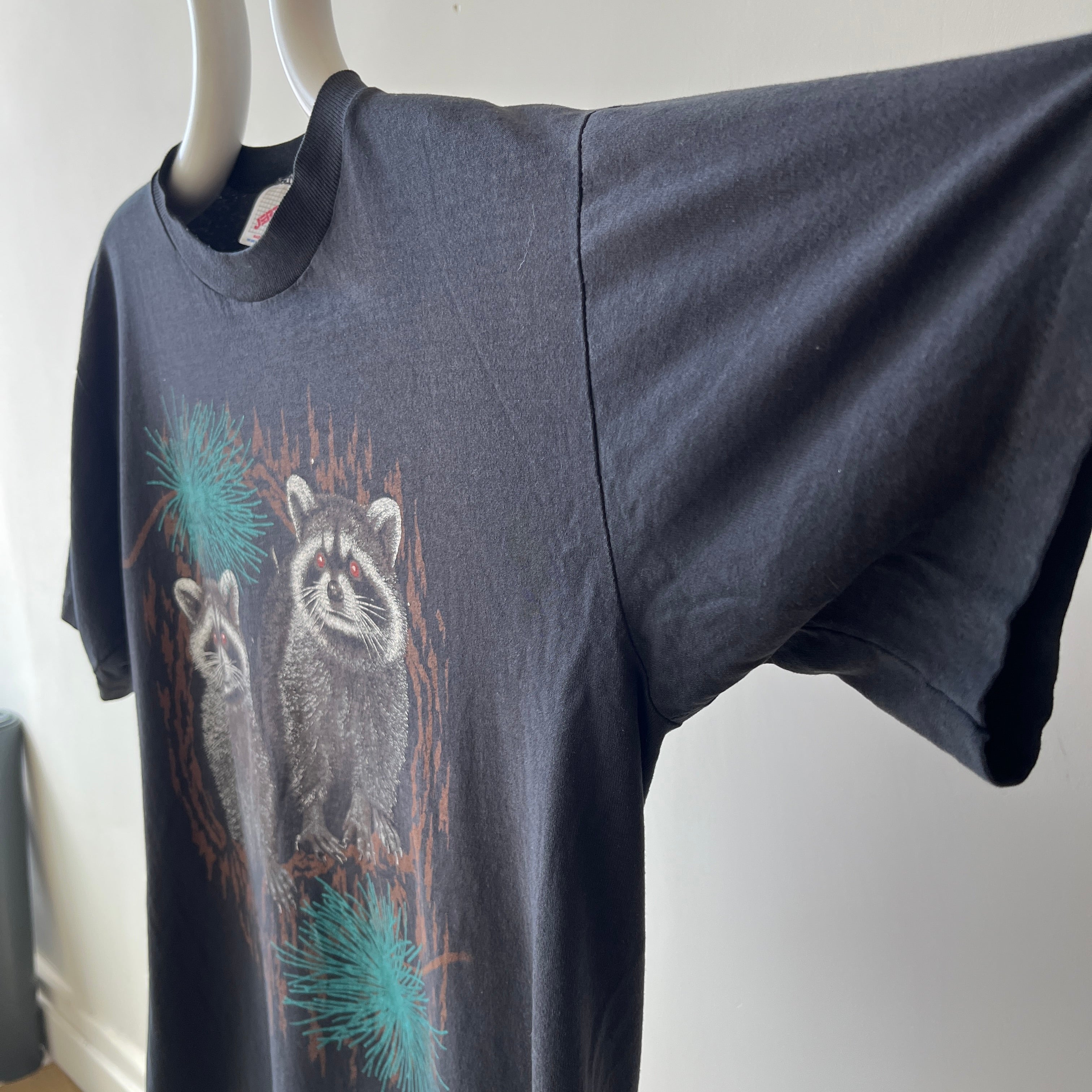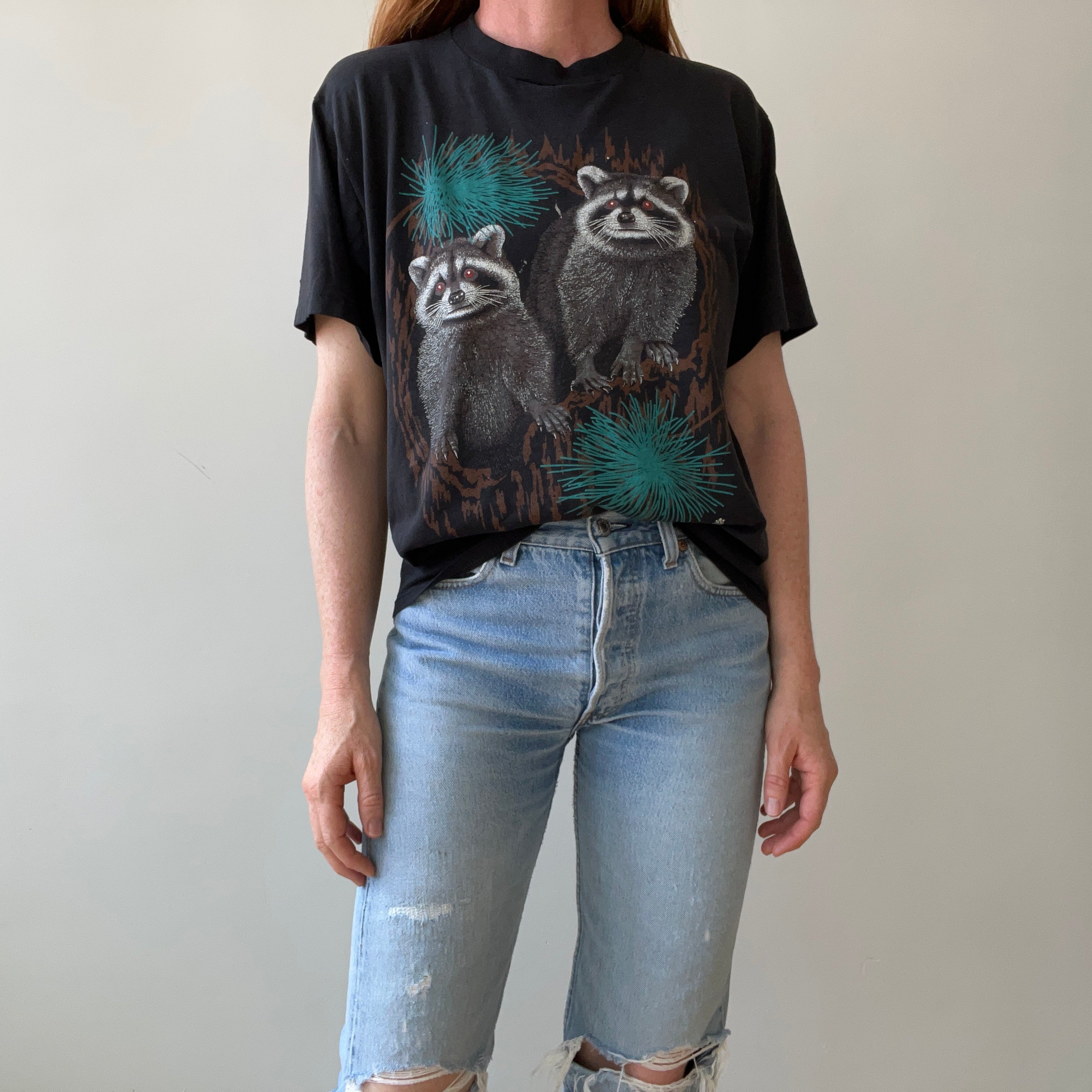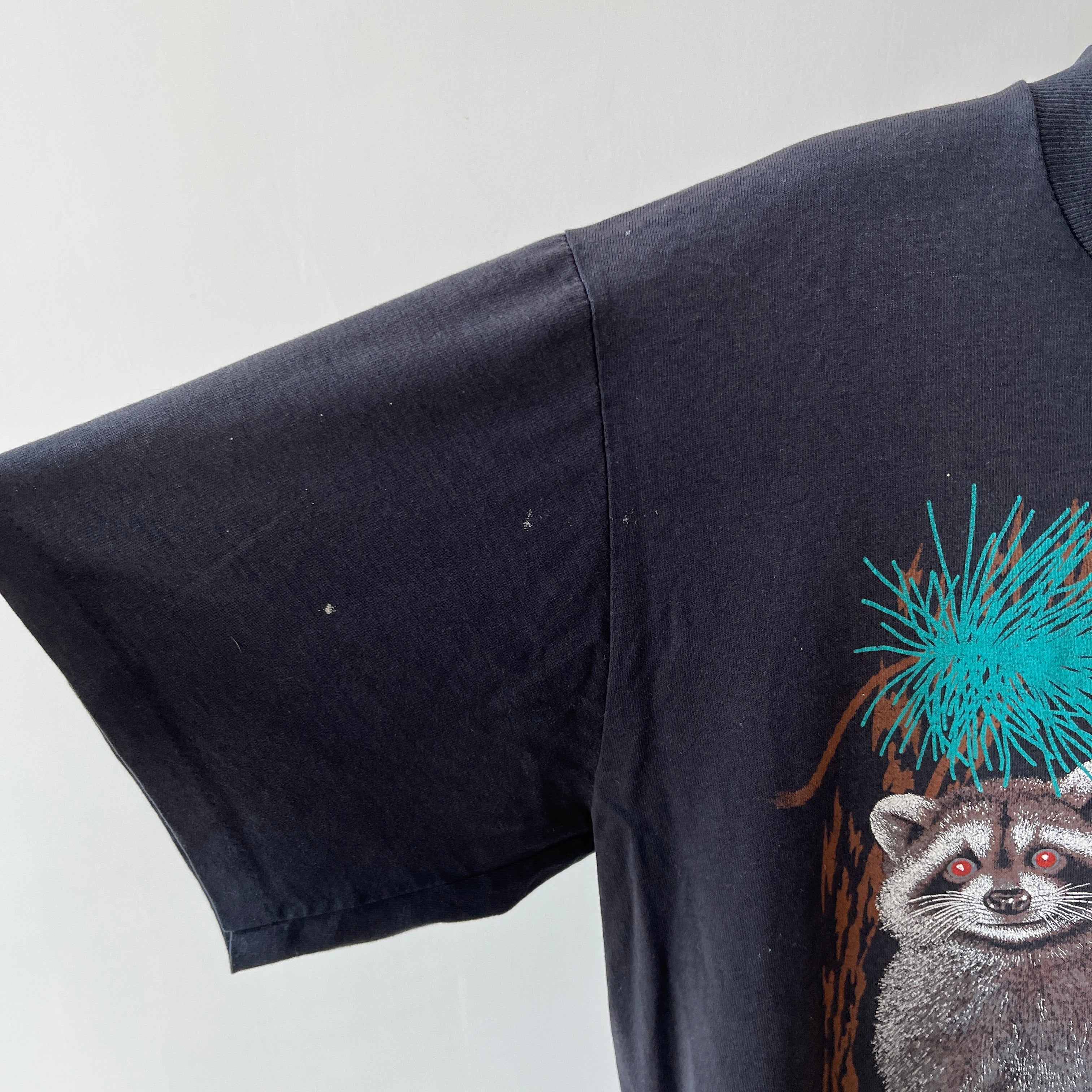Notes: small stains, small holes, thin cotton, single stitch, made in usa - slouchy ... nightmare-ish content for some, but i love a trash can panda (from afar)