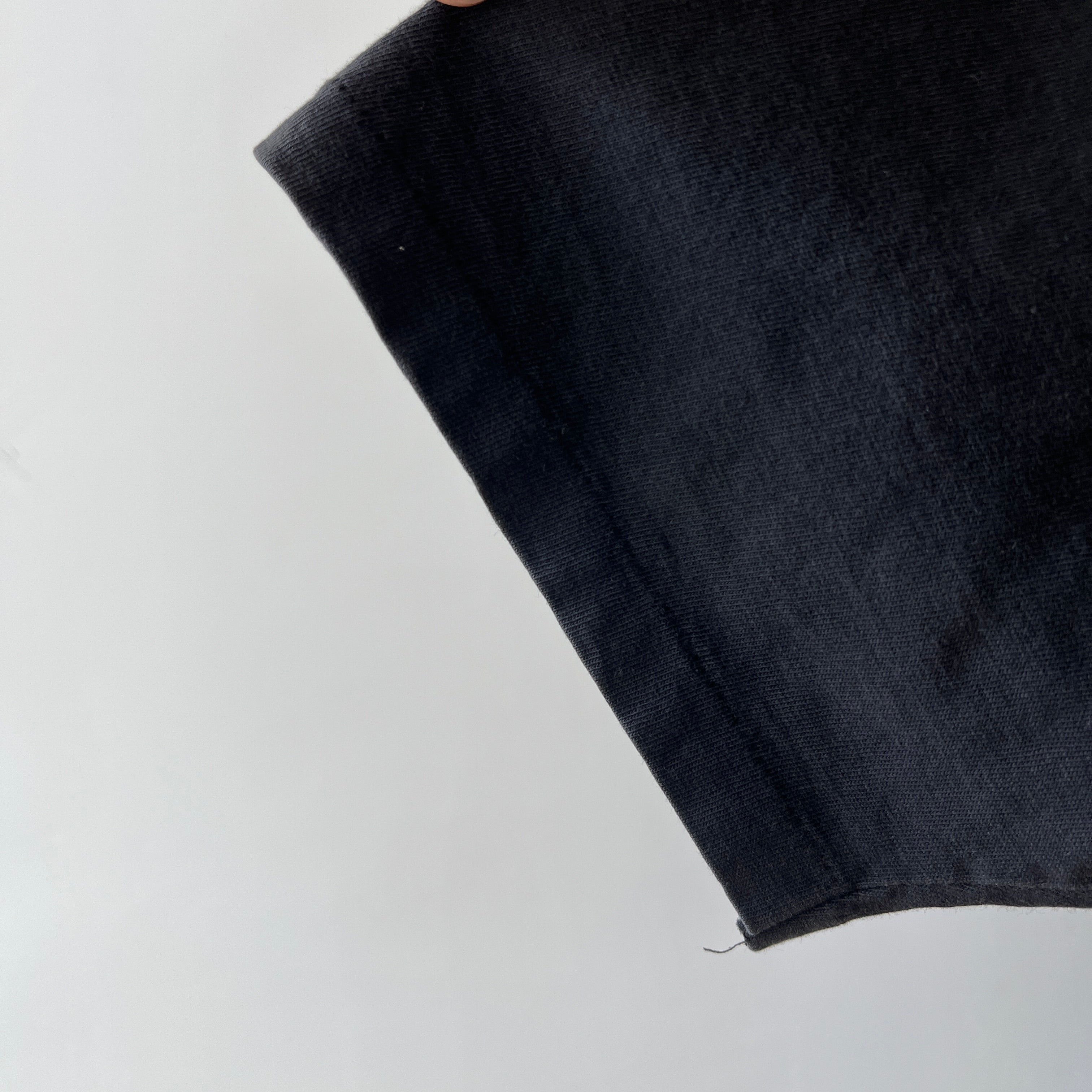 Stains are cool. But if I don’t have you convinced, that yellow jalopy hanging out on your new-old (now off) white tee could have been a mustard mishap from catching a fly ball at the World Series in ’83 with a hotdog in hand. Or from changing a flat tire on a college road trip to meet your future ex in-laws? Stains have stories even when they’re in the pits! Sweating in your favorite Hanes crewneck on your first middle school date can have a life long impact on a t-shirt.