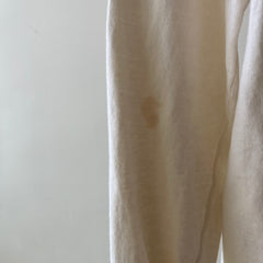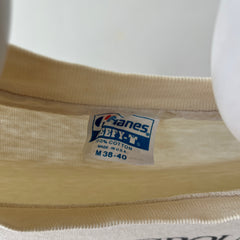 Stains are cool. But if I don’t have you convinced, that yellow jalopy hanging out on your new-old (now off) white tee could have been a mustard mishap from catching a fly ball at the World Series in ’83 with a hotdog in hand. Or from changing a flat tire on a college road trip to meet your future ex in-laws? Stains have stories even when they’re in the pits! Sweating in your favorite Hanes crewneck on your first middle school date can have a life long impact on a t-shirt.