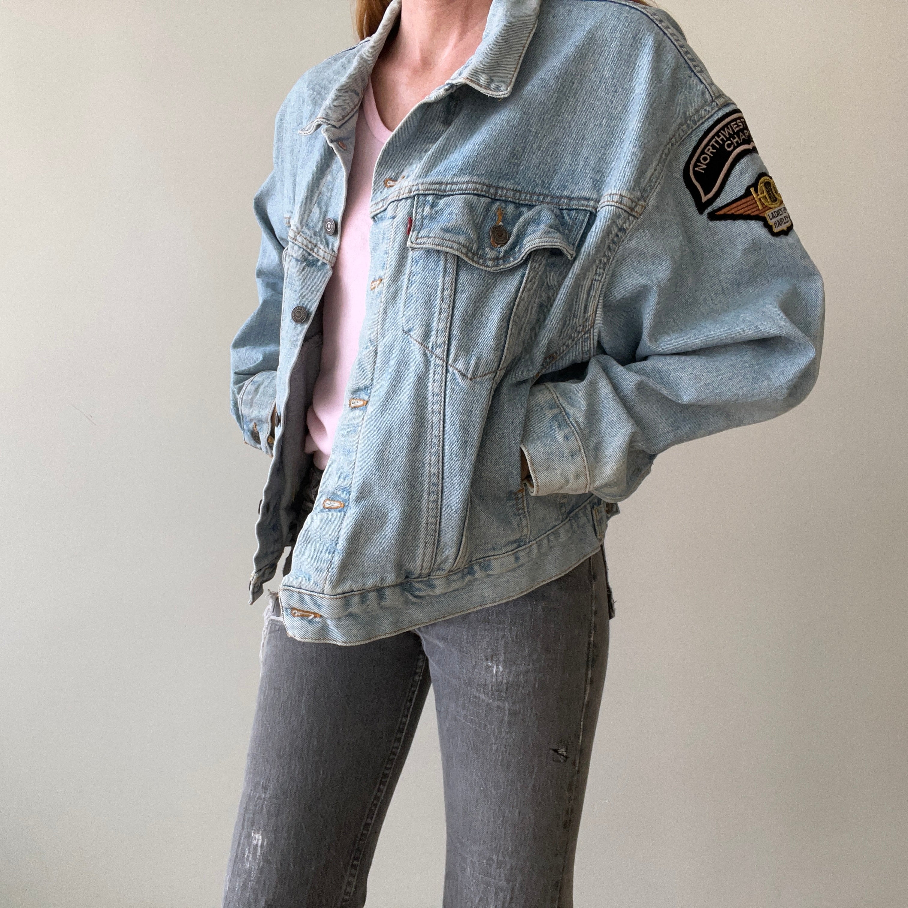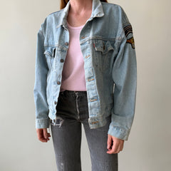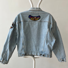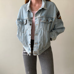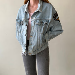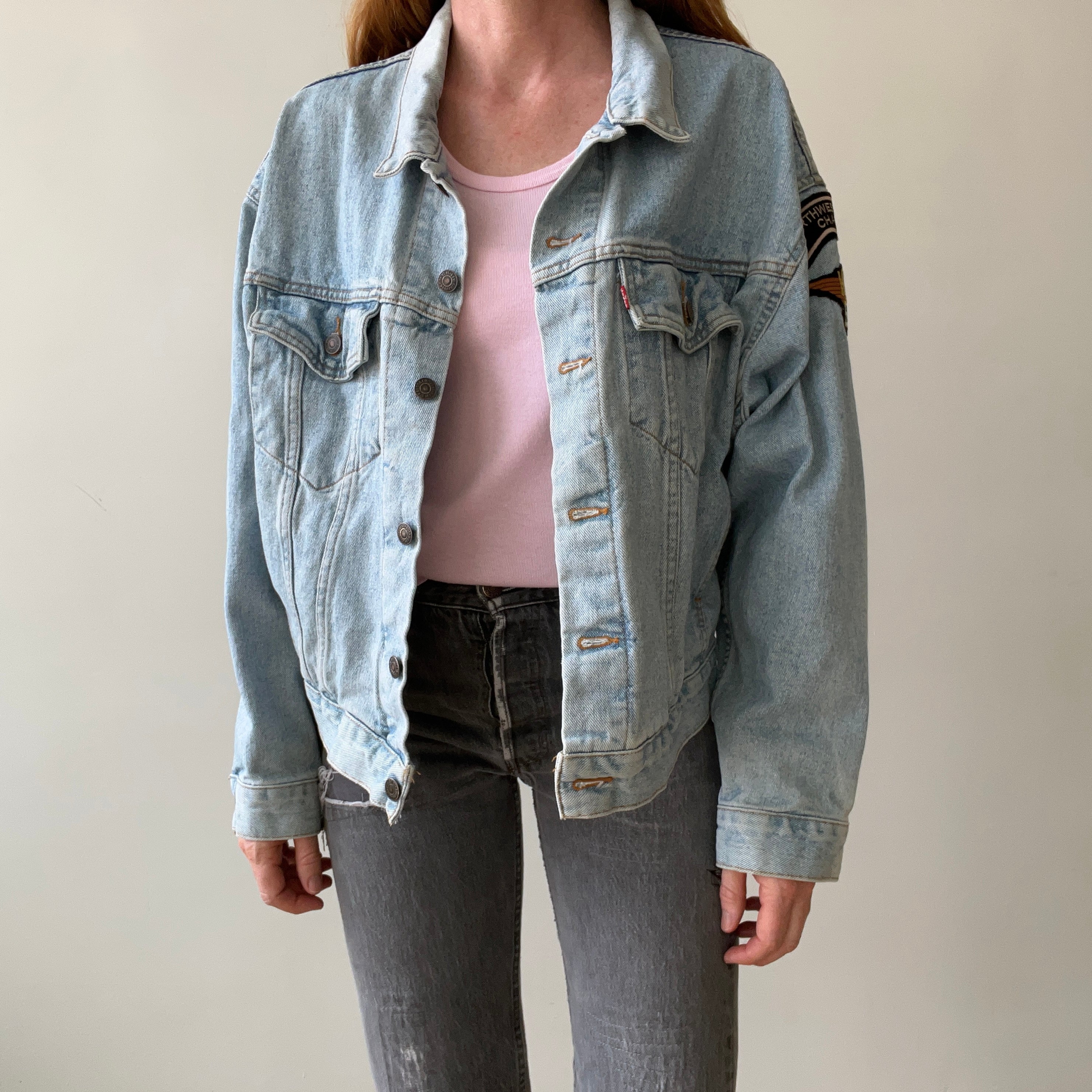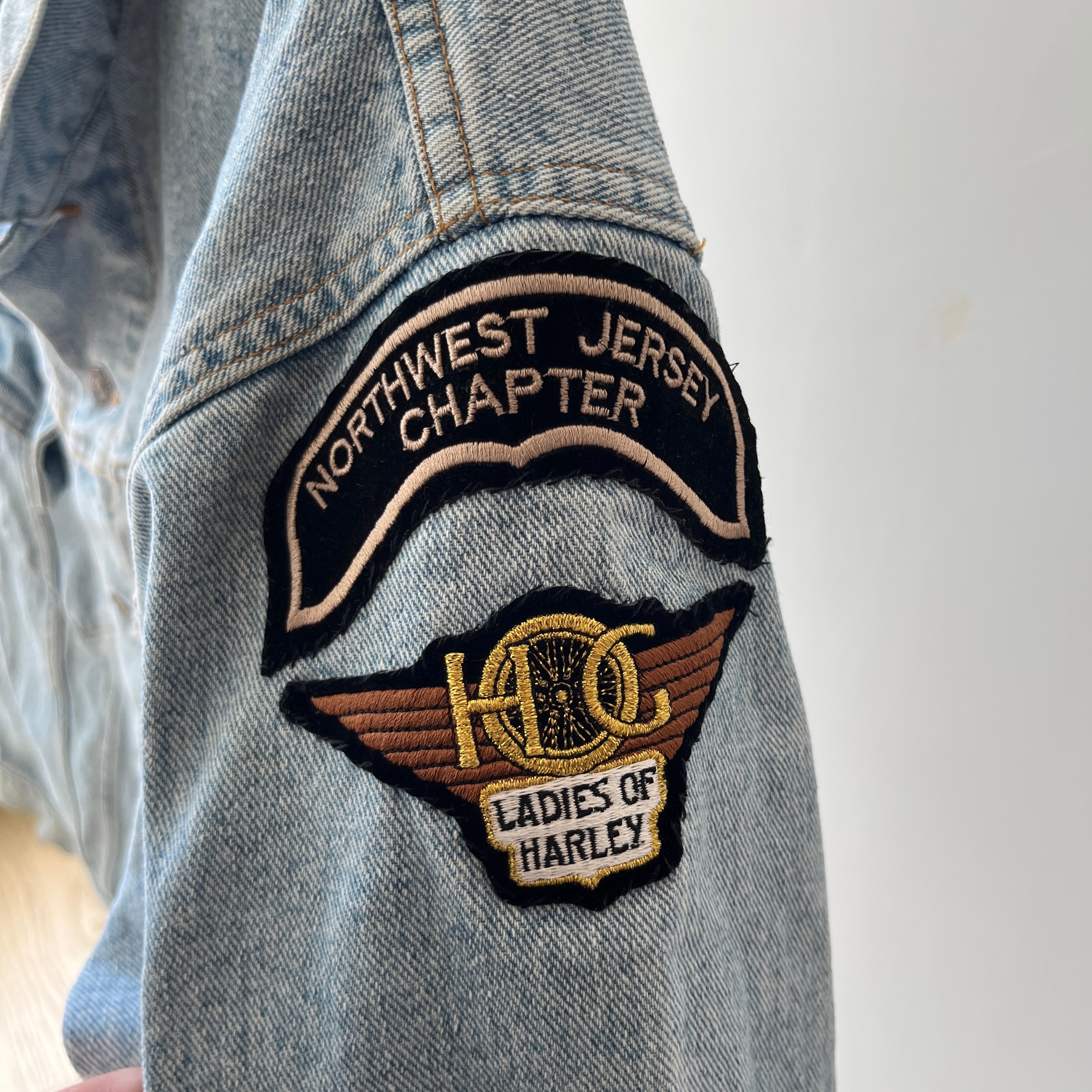 1990s Levis Denim Jacket with Harley Women's Patchwork on Sleeves and Back - RAD!