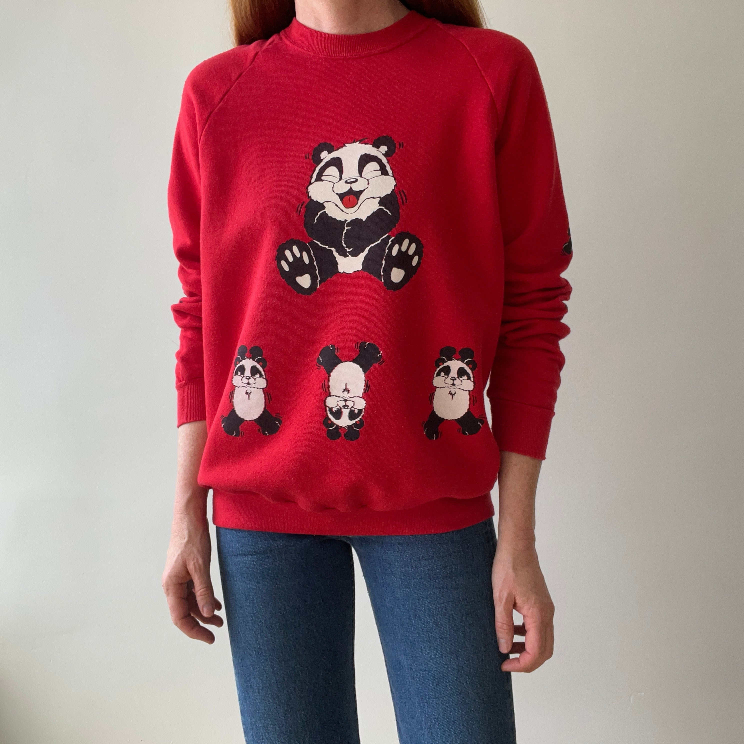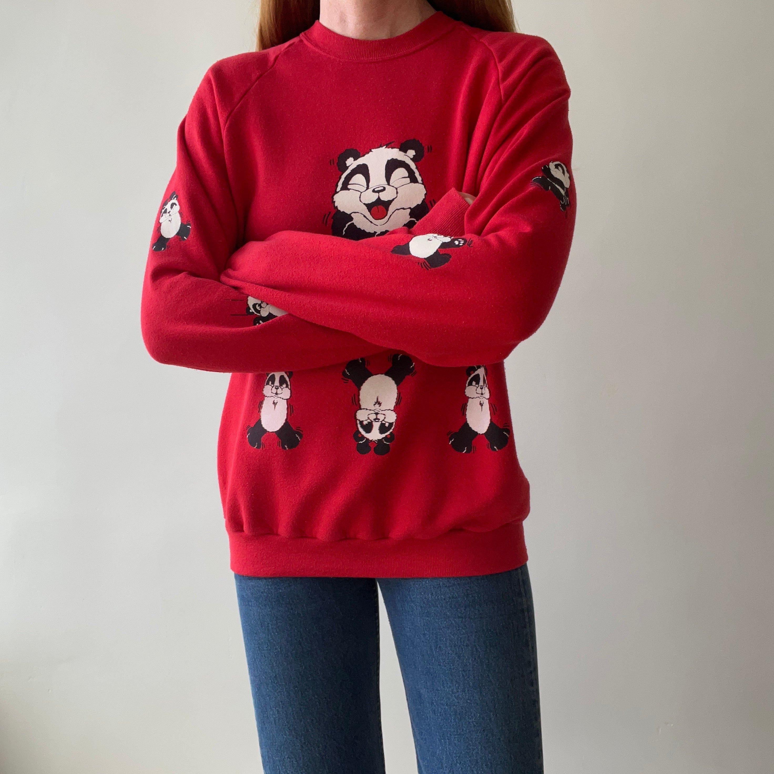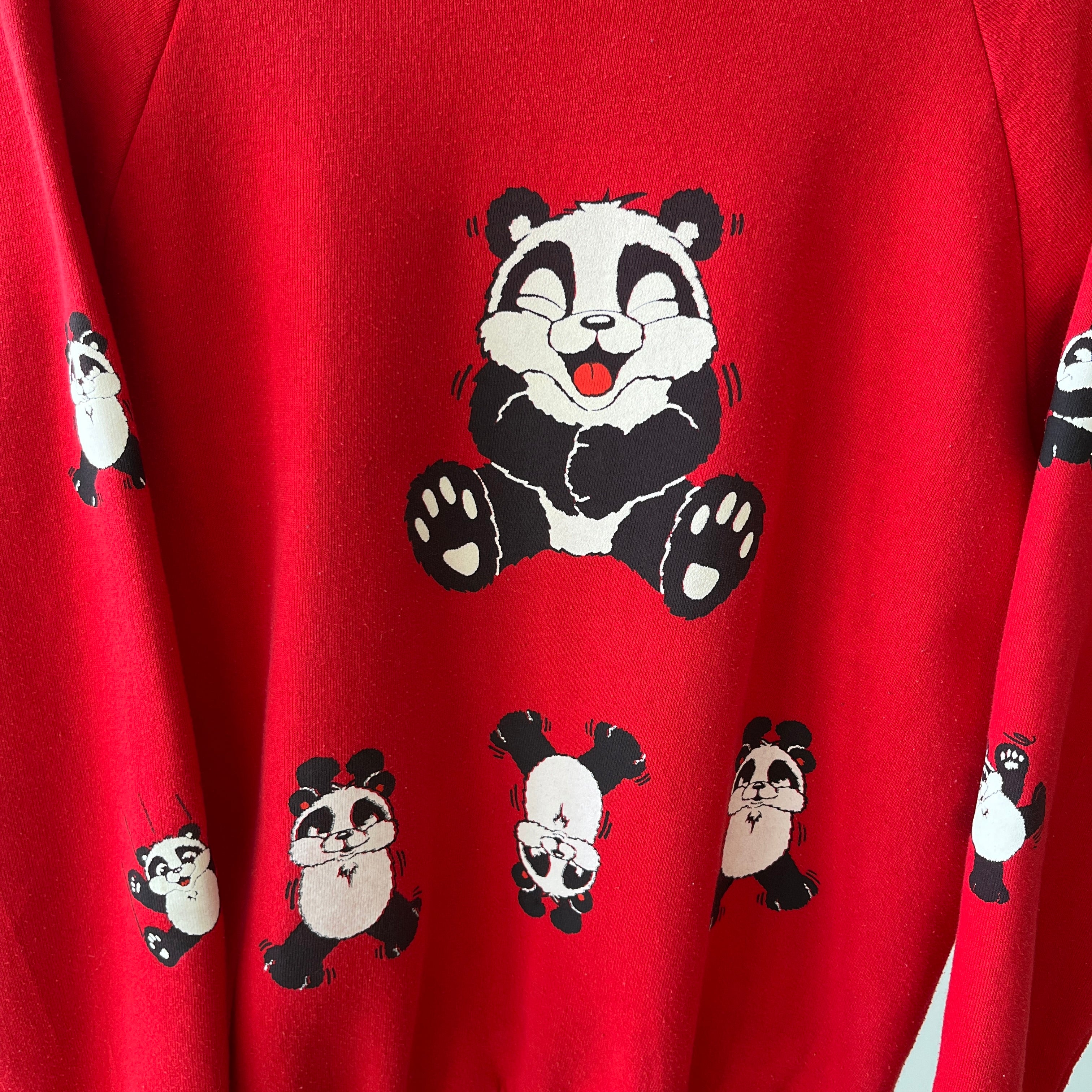 1990s Panda Sweatshirt - Front, Back and Sleeves! Pandas Everywhere!