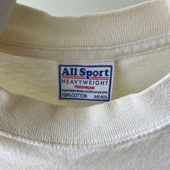 Stains are cool. But if I don’t have you convinced, that yellow jalopy hanging out on your new-old (now off) white tee could have been a mustard mishap from catching a fly ball at the World Series in ’83 with a hotdog in hand. Or from changing a flat tire on a college road trip to meet your future ex in-laws? Stains have stories even when they’re in the pits! Sweating in your favorite Hanes crewneck on your first middle school date can have a life long impact on a t-shirt.