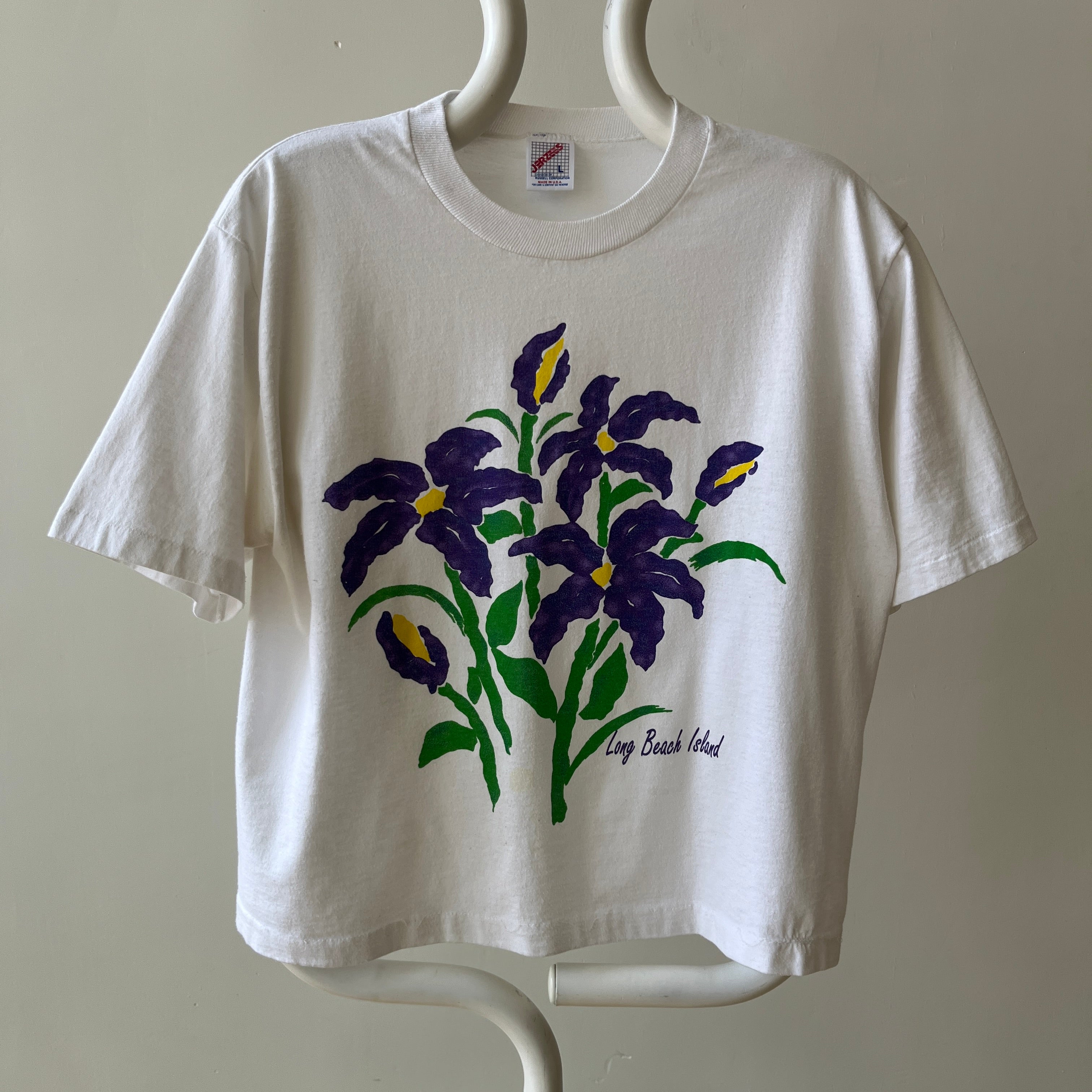 Notes: slight armpit and other stains, pilling, cropped length, boxy fit, single stitch, made in usa