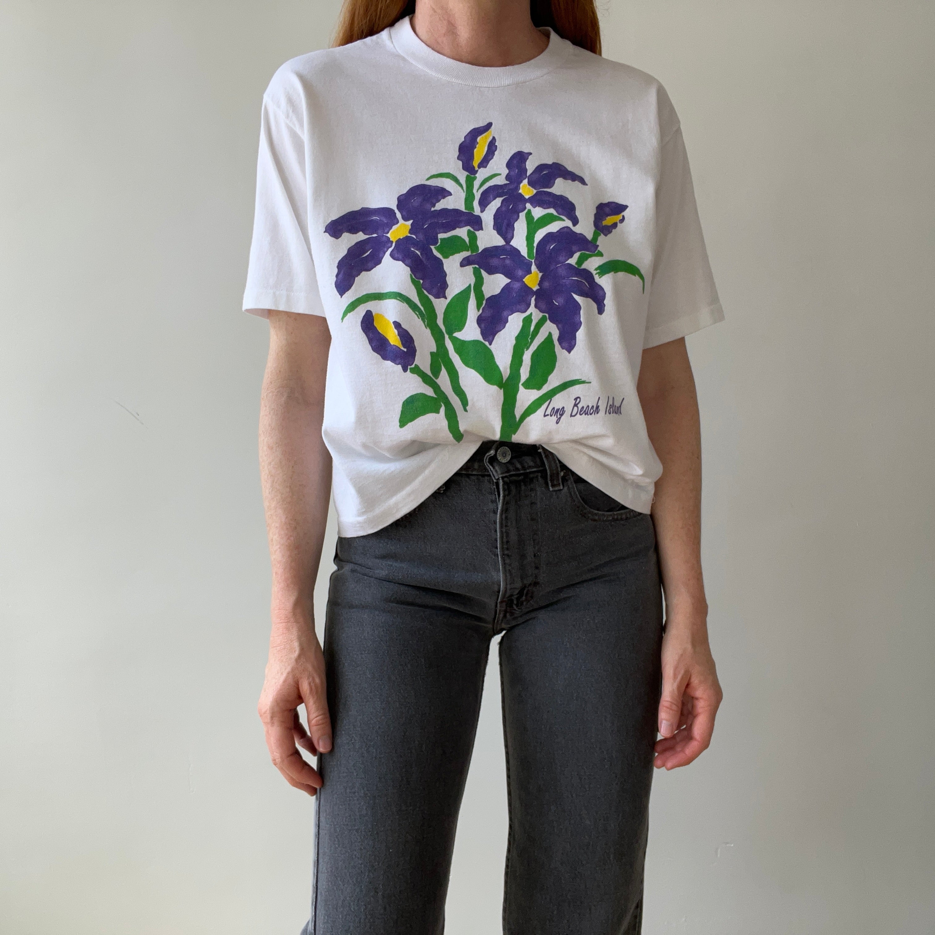 A lot of t-shirts back in the day were made from 50% cotton and 50% polyester. After decades of wear and tear they start to soften and get that “vintage t-shirt look”. 100% cotton shirts are generally a thicker feel and can appear more structured.