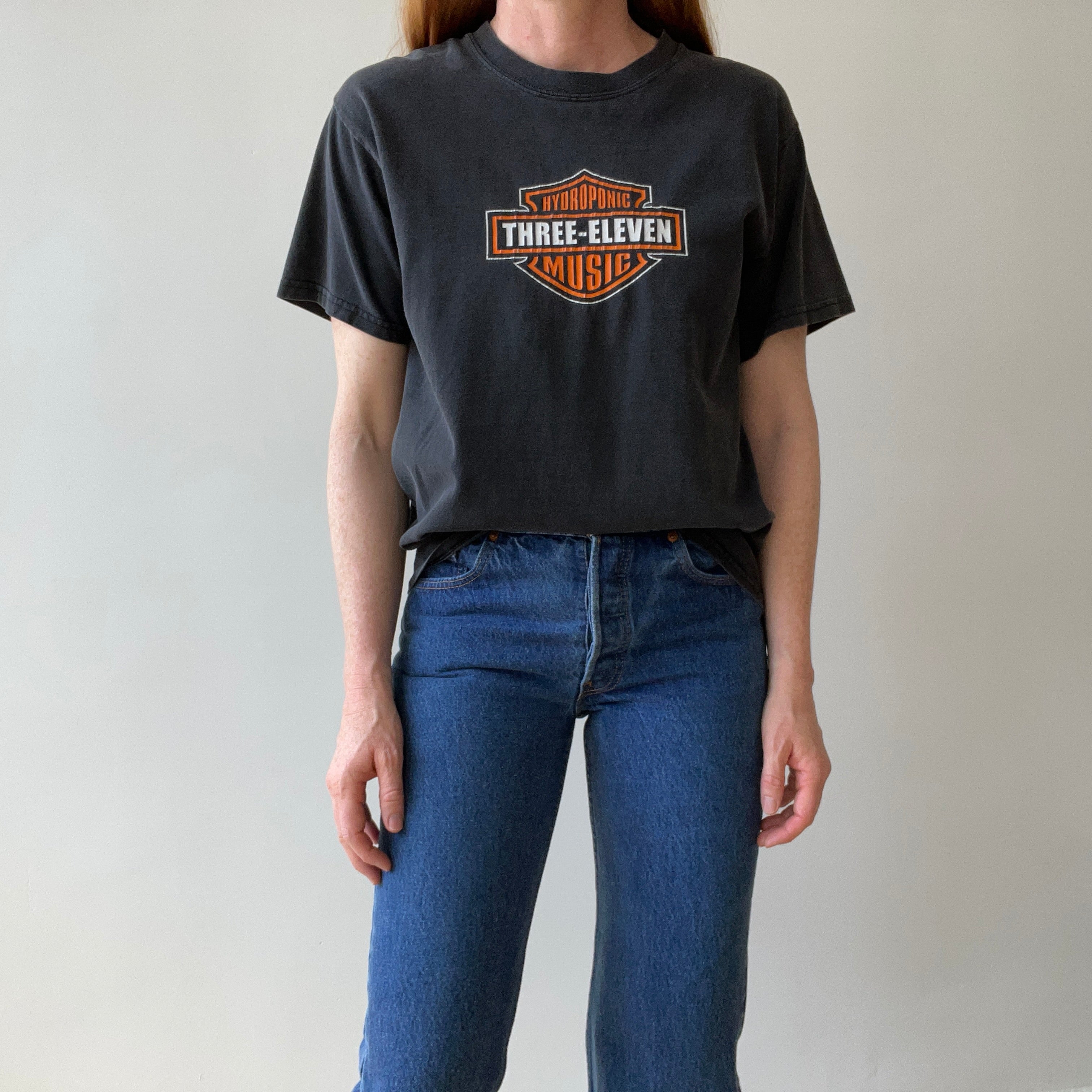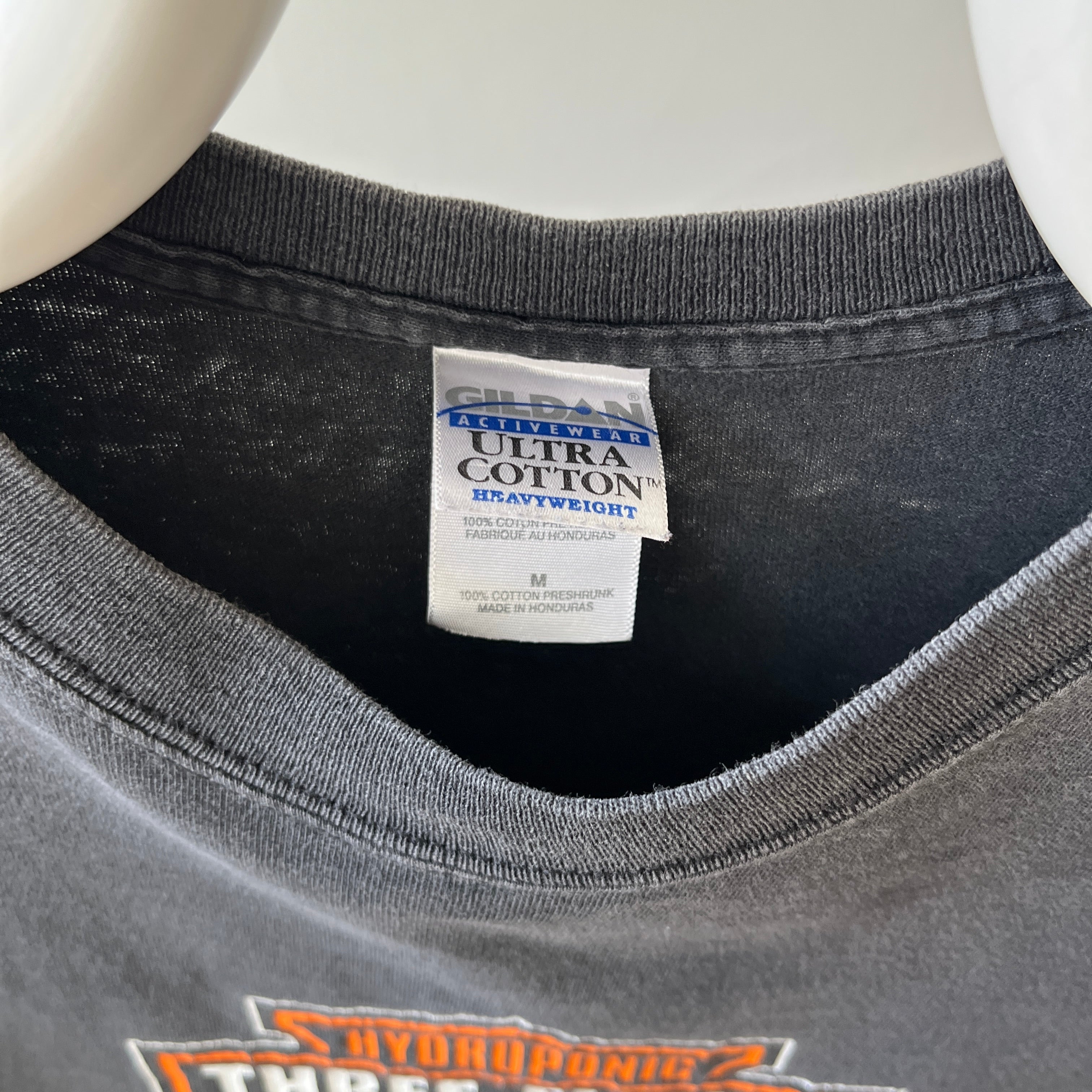 Notes: fades on back right shoulder, boxy fit, harley logo spinoff