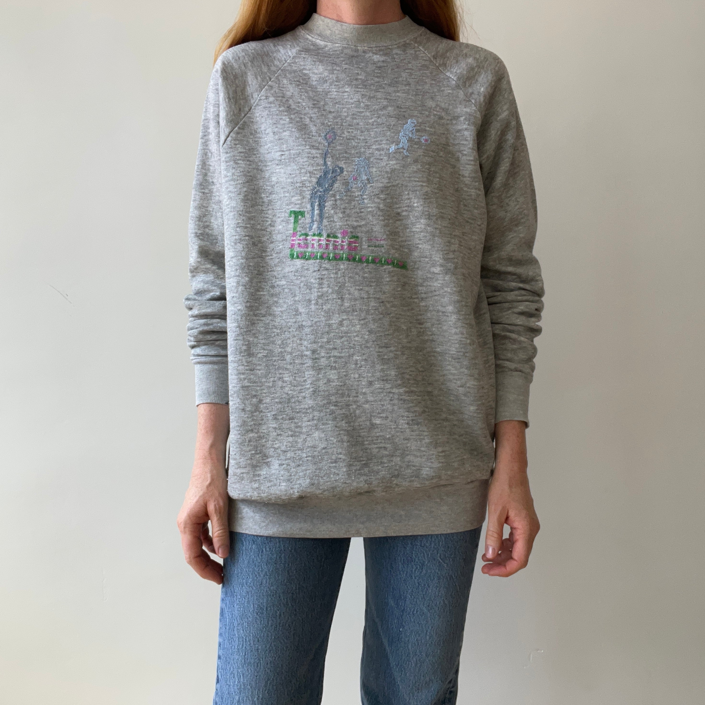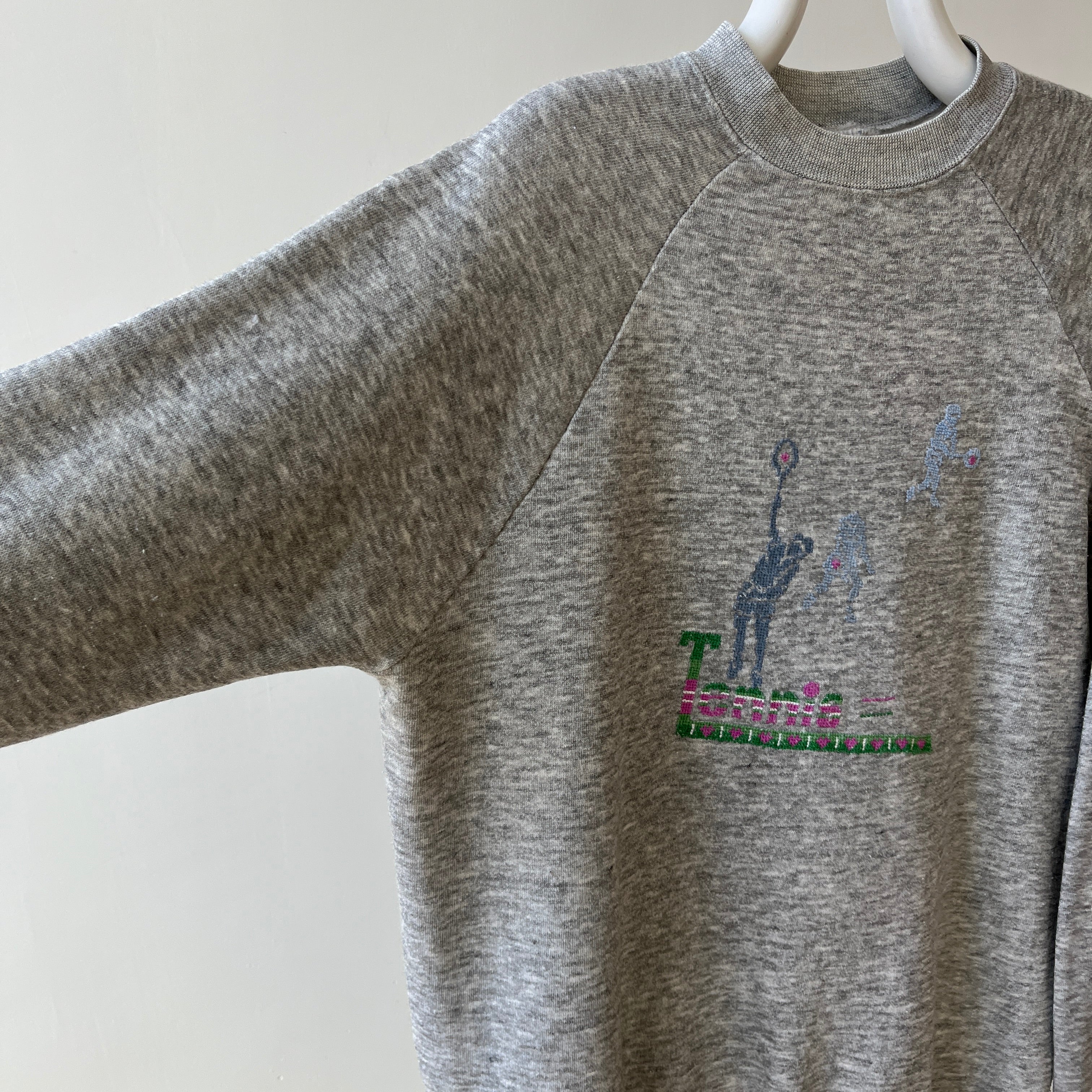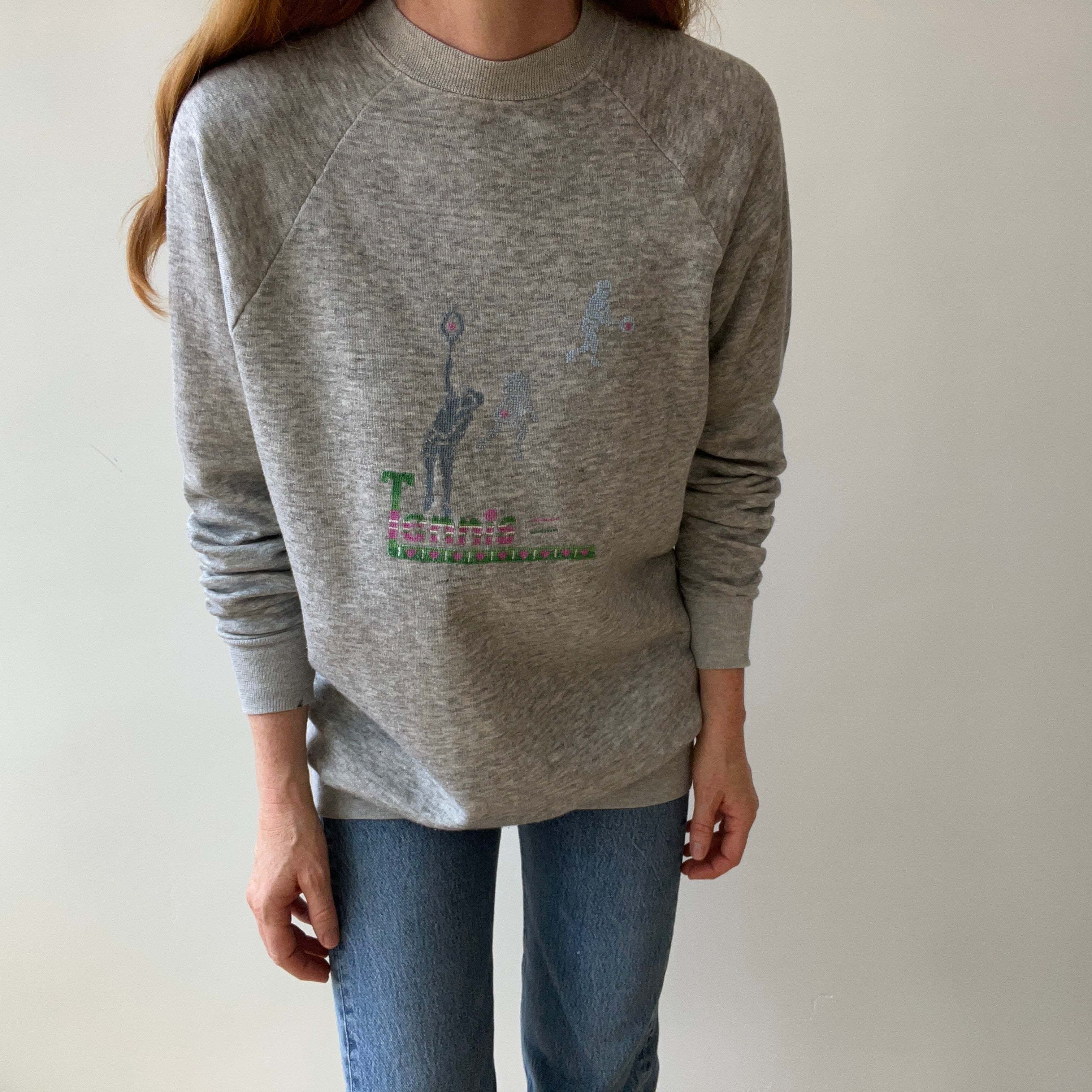Beaucoup de t-shirts à l'époque étaient fabriqués à partir de 50% coton et 50% polyester. Après des décennies d'usure, ils commencent à s'adoucir et à obtenir ce "look de t-shirt vintage". Les chemises 100 % coton sont généralement plus épaisses et peuvent paraître plus structurées.