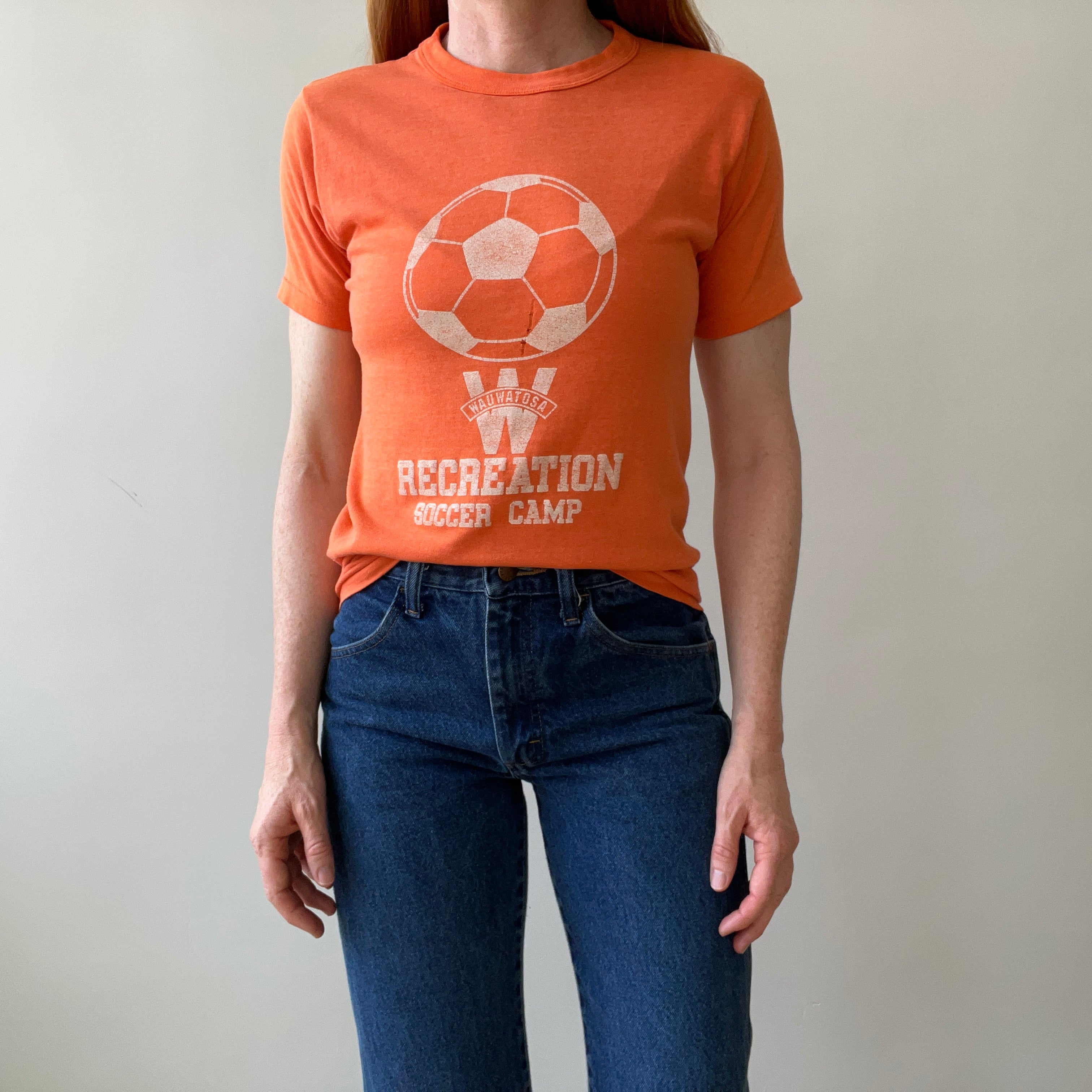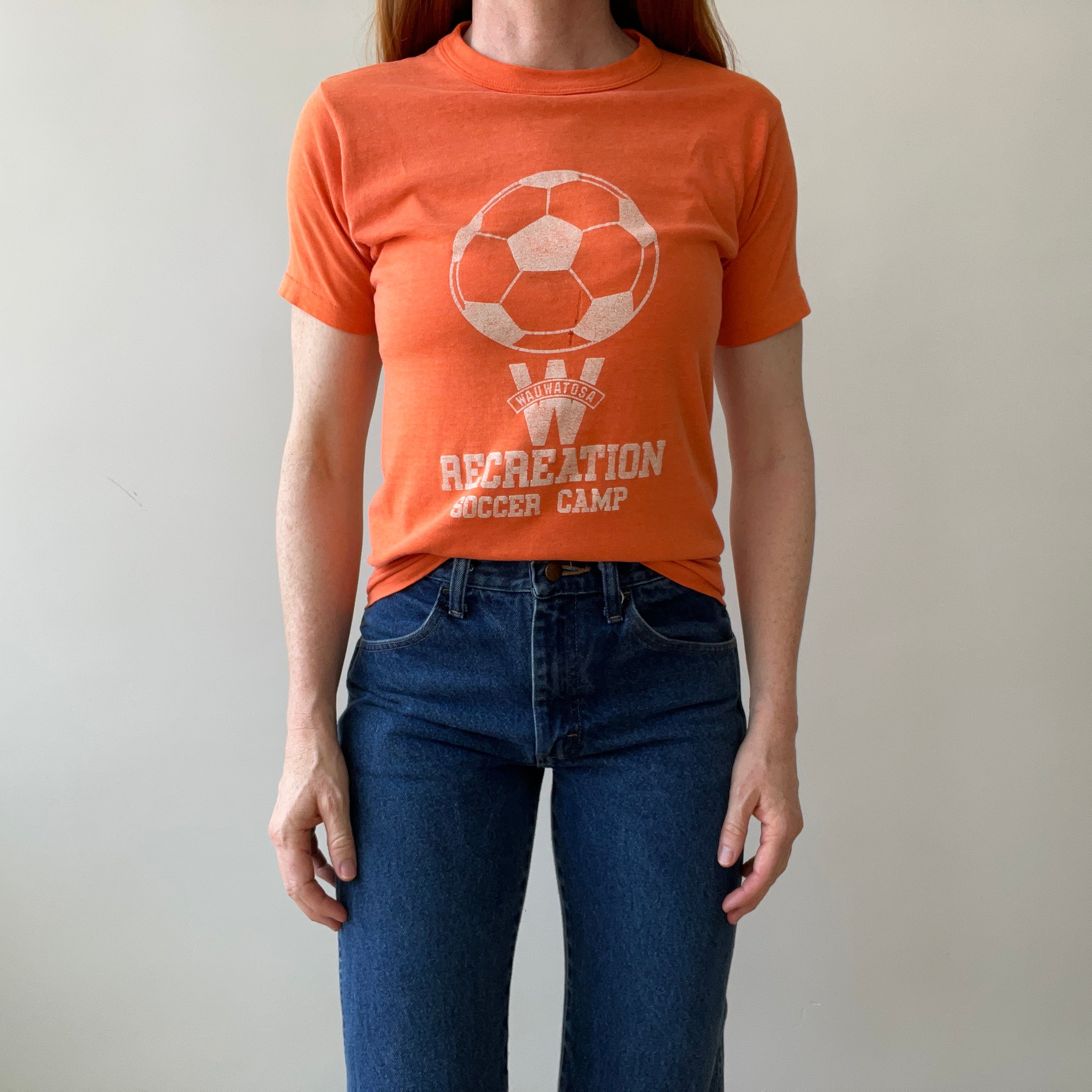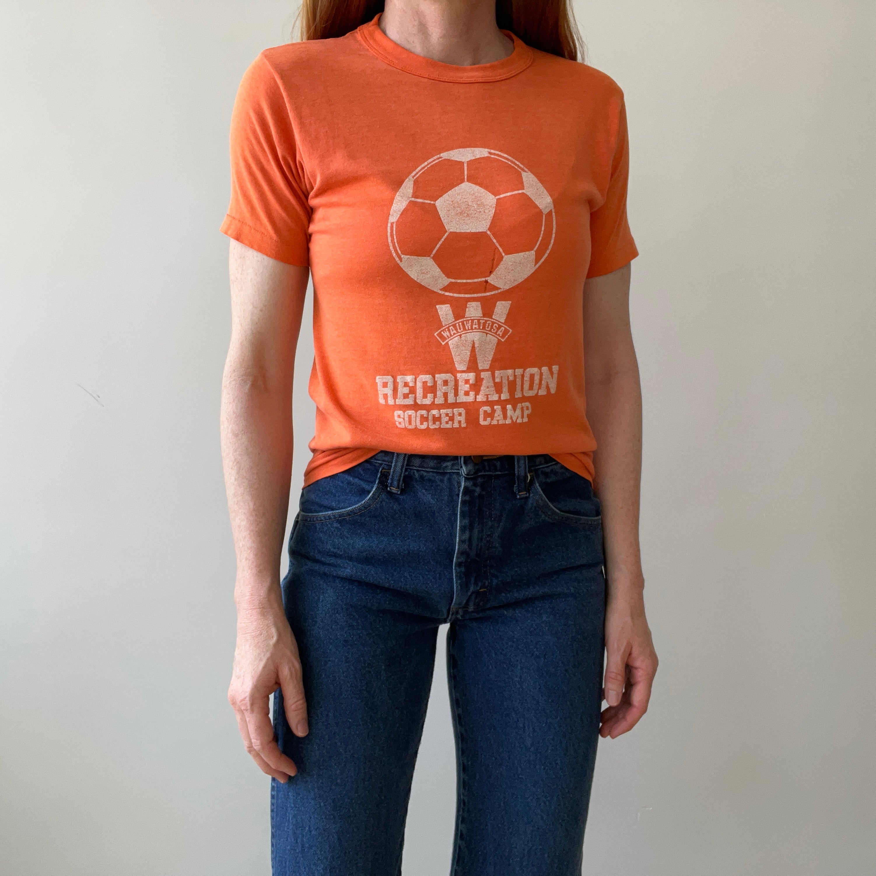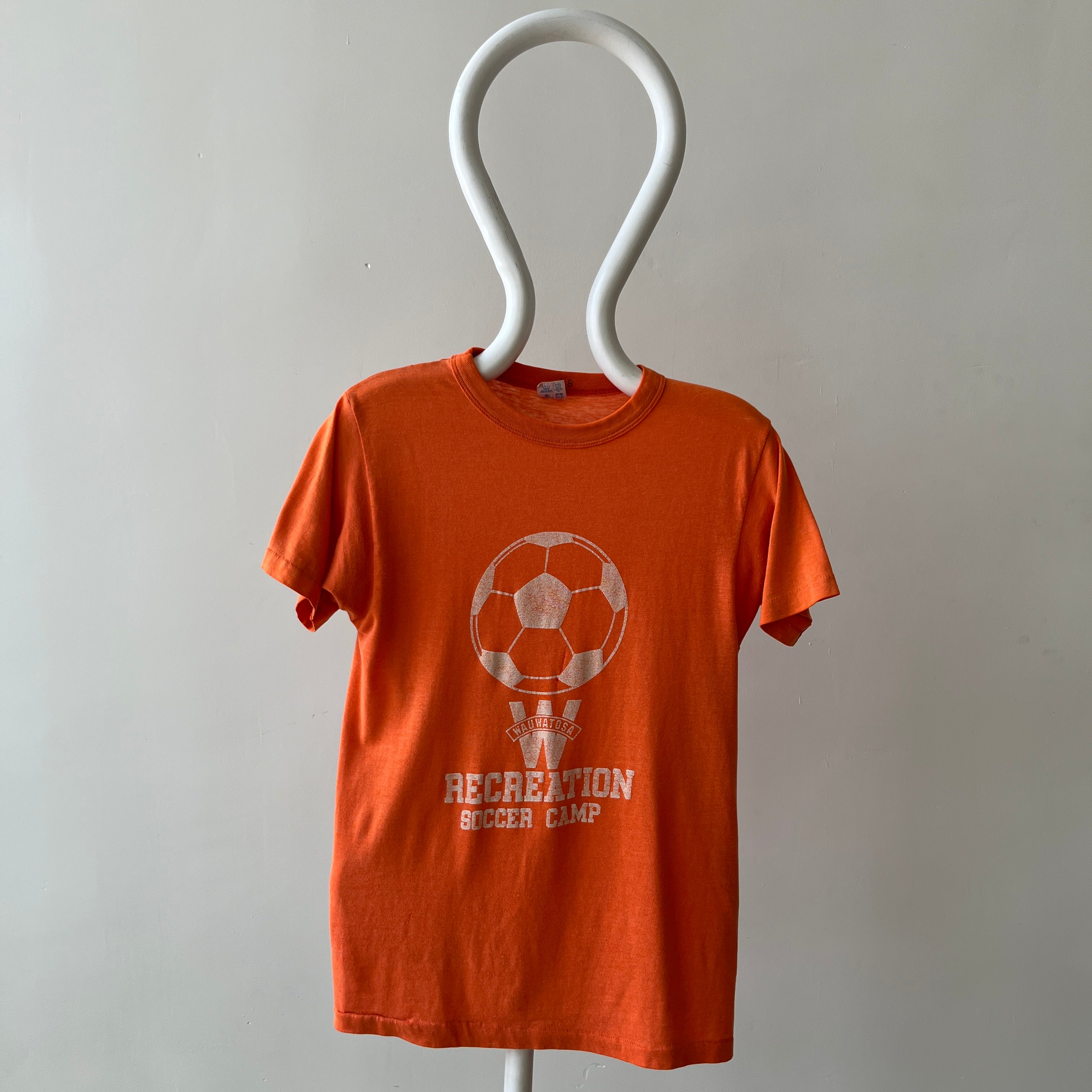1980s Soccer Camp T-Shirt - Perfect Thinned Out Smaller 50/50