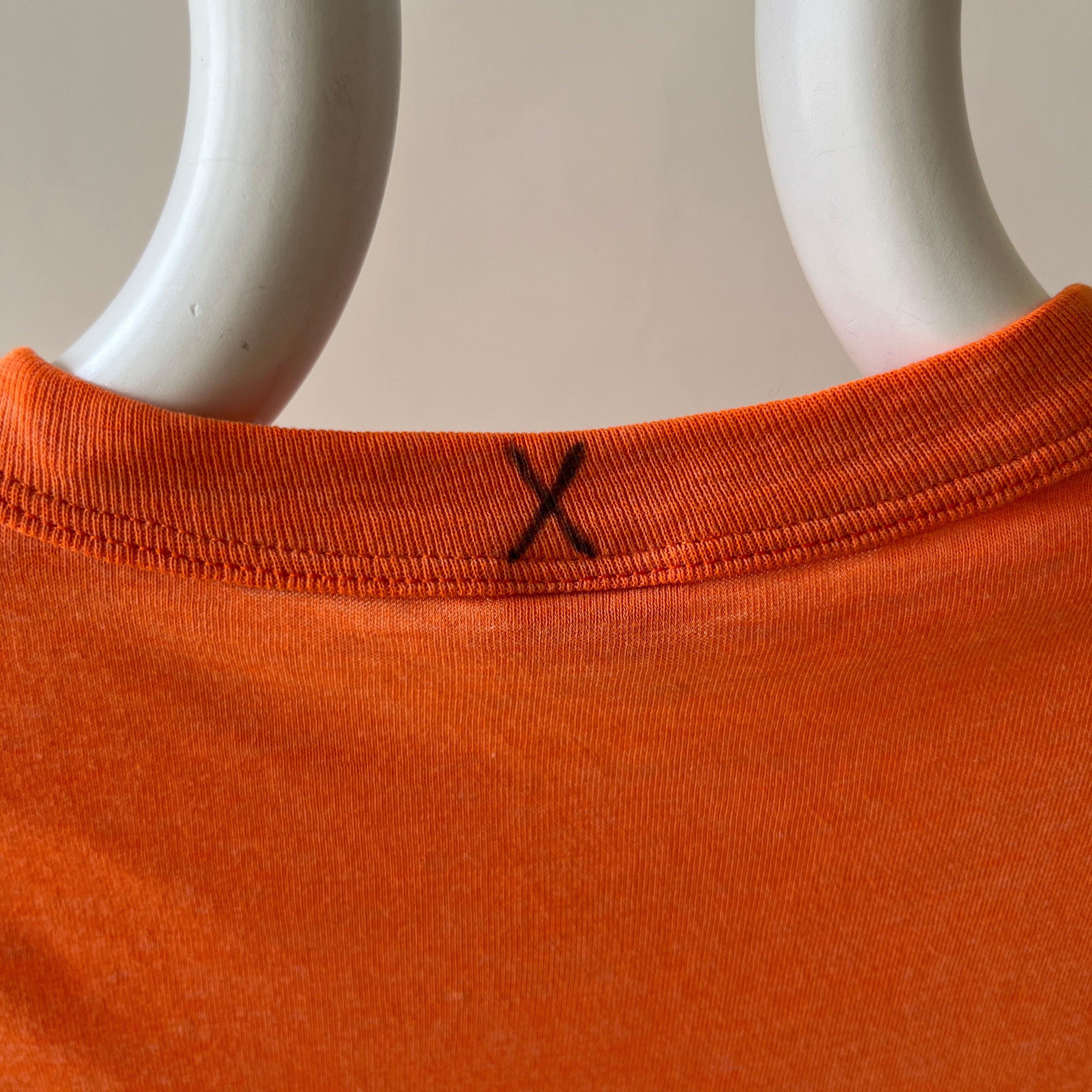 Beaucoup de t-shirts à l'époque étaient fabriqués à partir de 50% coton et 50% polyester. Après des décennies d'usure, ils commencent à s'adoucir et à obtenir ce "look de t-shirt vintage". Les chemises 100 % coton sont généralement plus épaisses et peuvent paraître plus structurées.